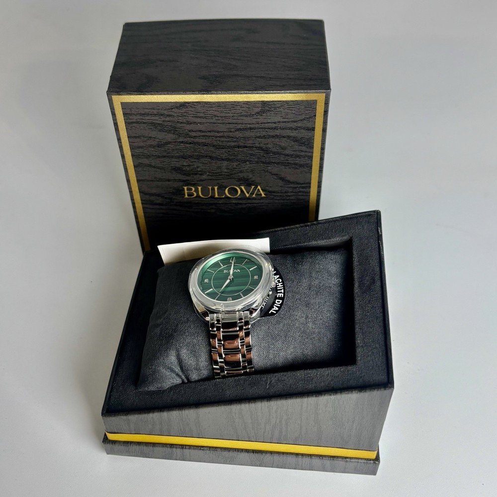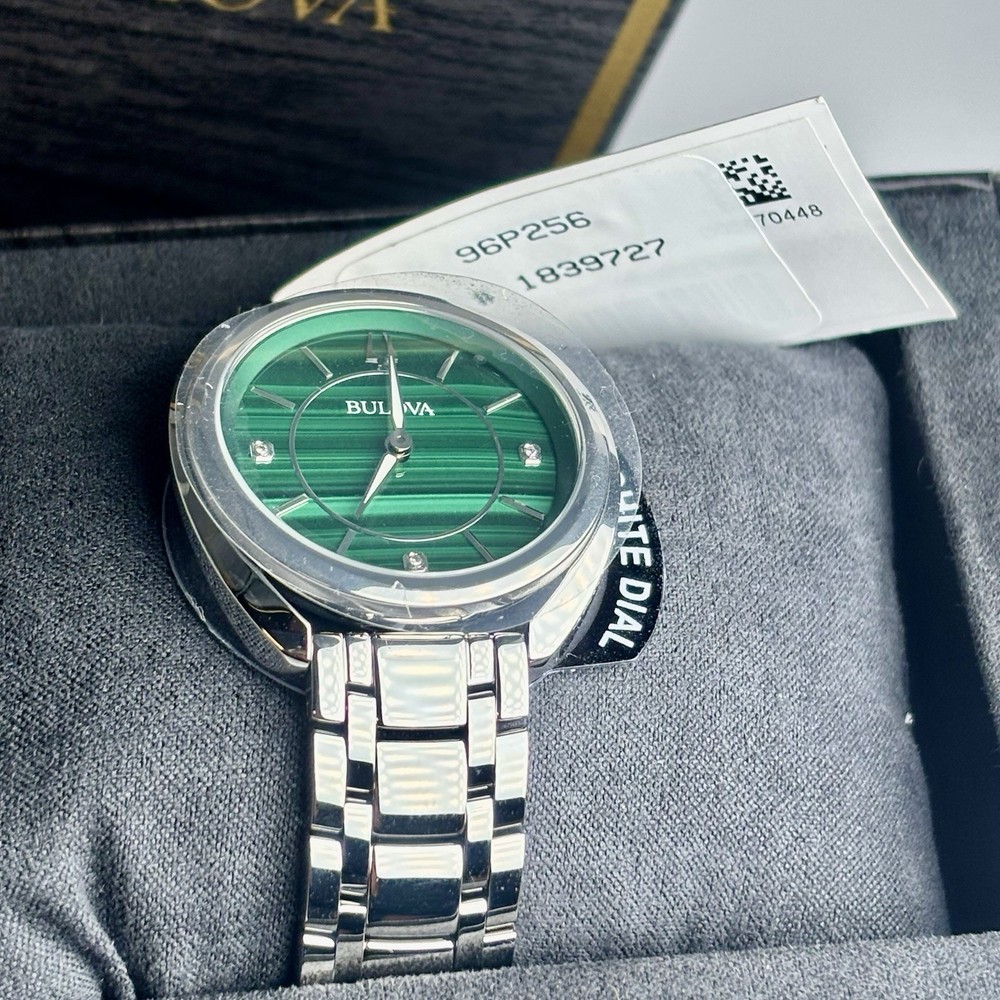 The Bulova Classic Diamond Malachite Stainless Steel Quartz Ladies Watch 96P256 is a stylish and elegant wristwatch designed for women. Featuring a classic design with a stainless steel case and adorned with sparkling diamonds on the dial, this watch exudes sophistication and timeless beauty. The quartz movement ensures accurate timekeeping, making it a practical yet luxurious accessory for any occasion. Ideal for those who appreciate quality craftsmanship and a blend of classic and contemporary style, this Bulova watch is a must-have for any watch collection.