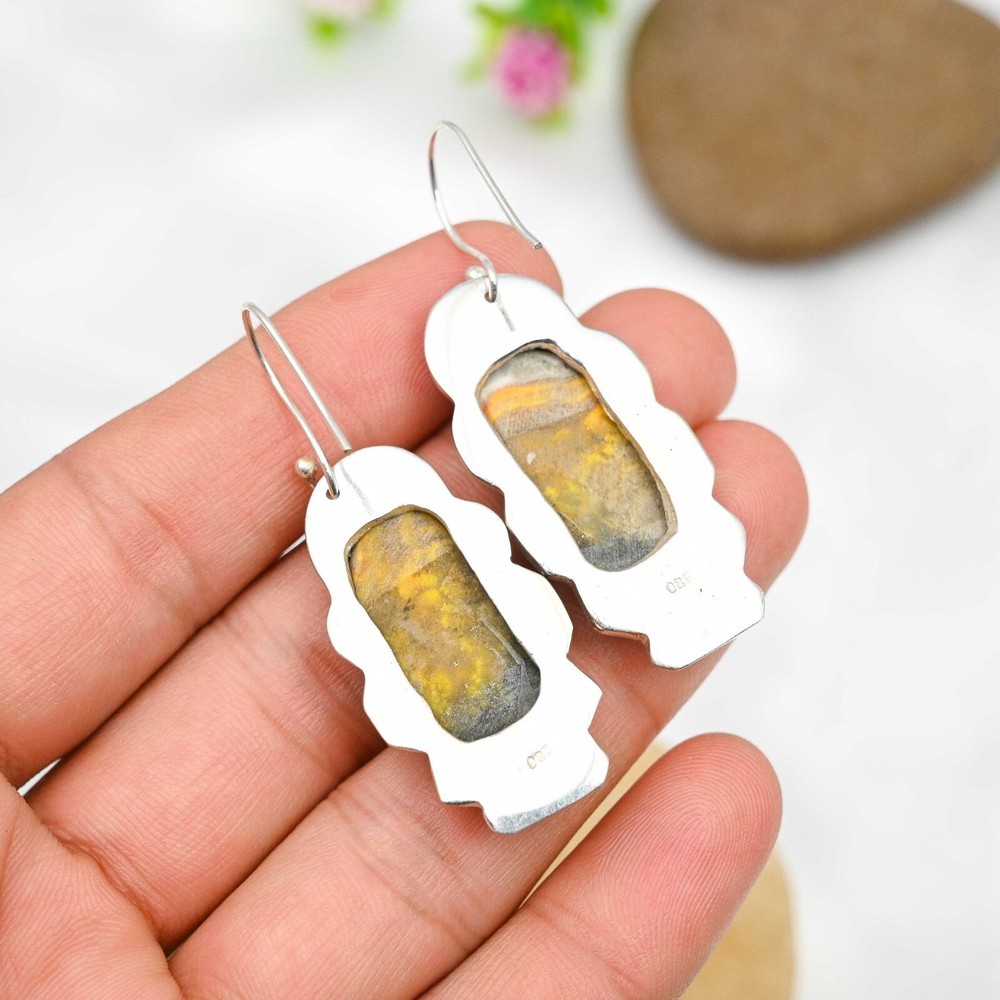 Color:SilverColored Diamond Intensity:N/ACut Grade:ExcellentClosure:HookOccasion:Anniversary, Birthday, Christmas, Engagement, Father's Day, Mother's Day, Valentine's Day, WeddingMain Stone Treatment:Not EnhancedNumber of Diamonds:N/ASecondary Stone:Bumble Bee JasperSeller Warranty:YesEar Area:LobeMain Stone Color:Same As PictureShape:Same As PictureStyle:Dangle/DropCountry/Region of Manufacture:IndiaSetting Style:BezelCountry of Origin:IndiaCollection:HandmadeMain Stone:Bumble Bee JasperMetal:Sterling SilverMetal Purity:925Main Stone Shape:Same As PictureBrand:HandmadeMaterial:Stone, GemstoneType:EarringsBase Metal:Sterling SilverNumber of Gemstones:2Item Length:2.16"Total Carat Weight:10 carat and aboveCertification:N/ADiamond Color Grade:N/AMain Stone Creation:NaturalTheme:Beauty, Bohemian, Ethnic, Halloween, LoveDiamond Clarity Grade:N/A