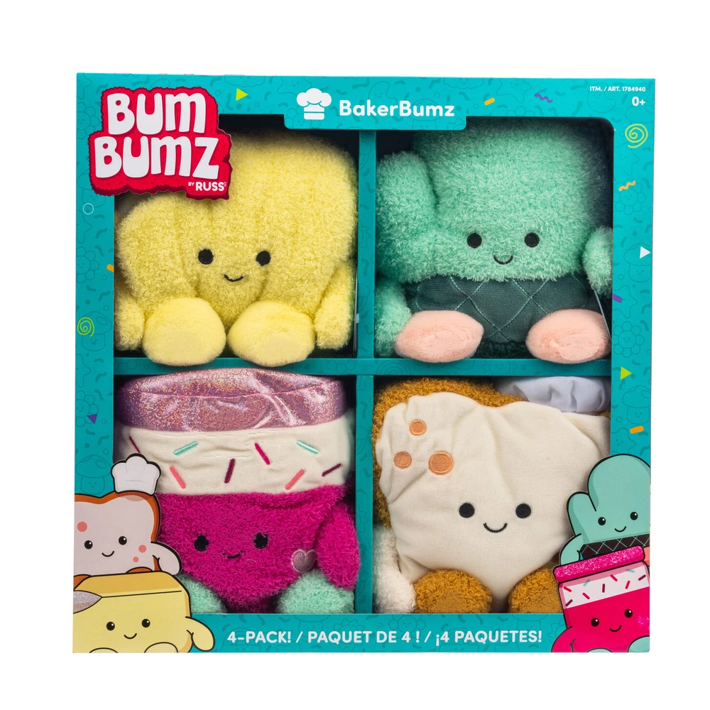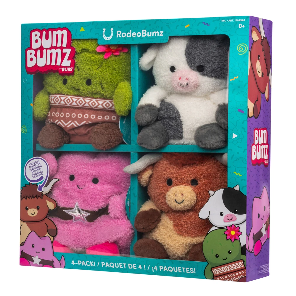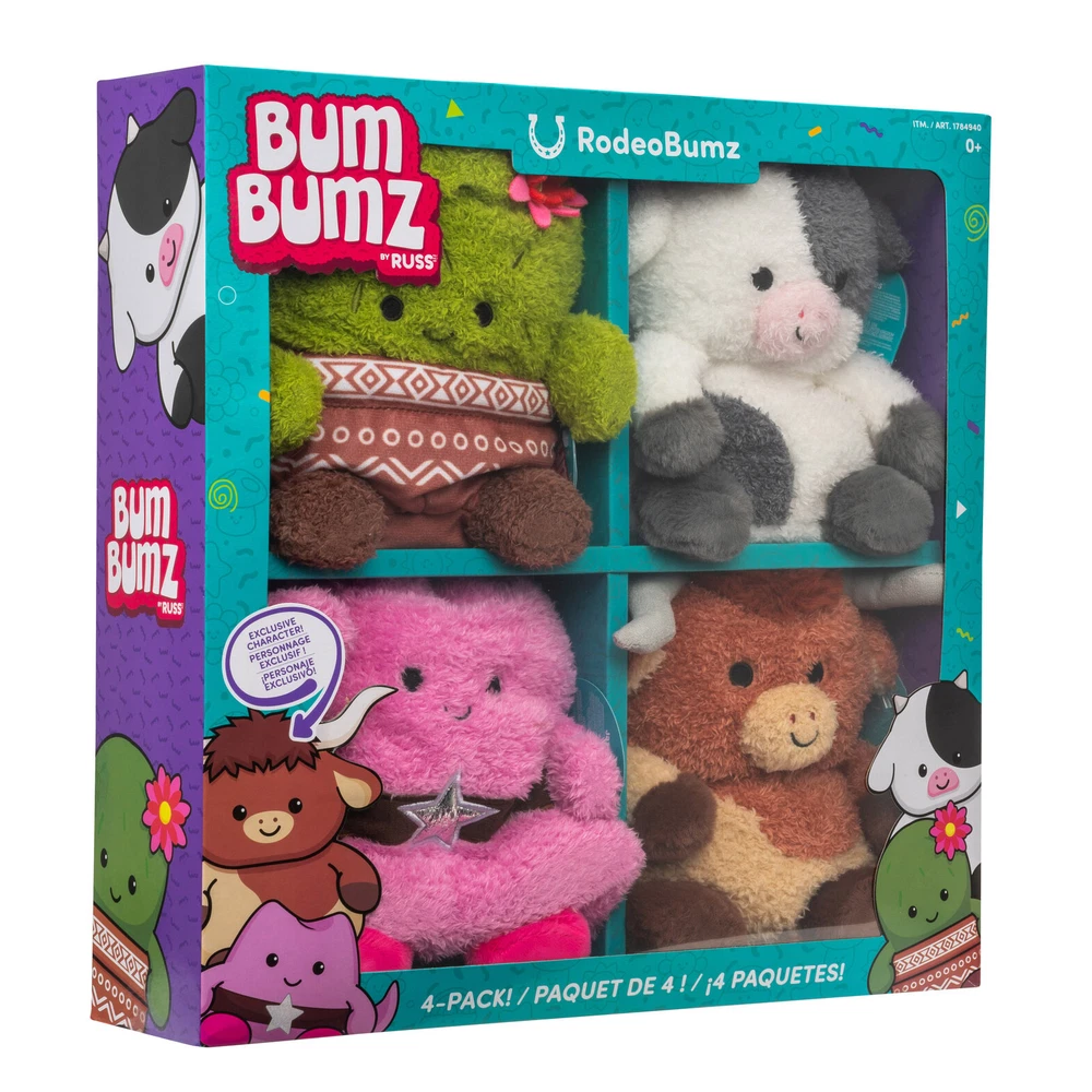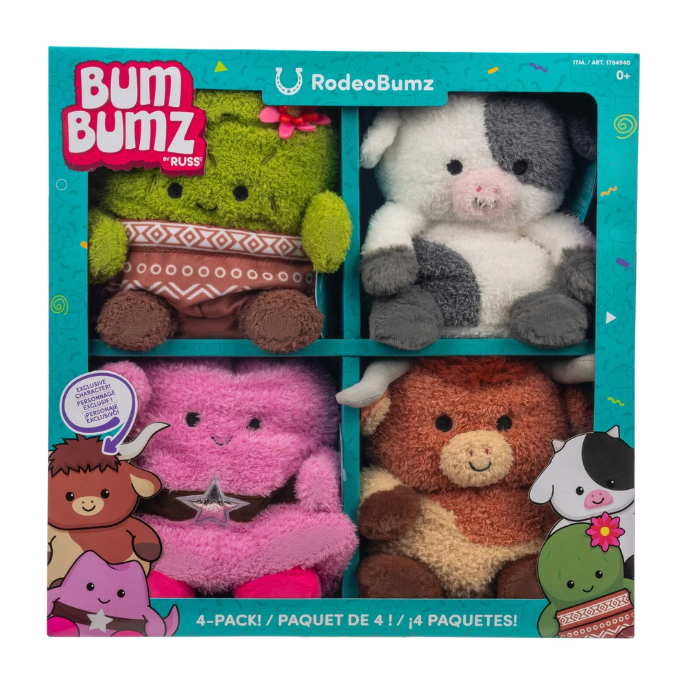 Bumbumz Assorted Plush Toys, Ultra Soft Sensory Play, Kids, Ages 0+ Yrs, 4-Pack WE CAN NOT SHIP THIS ITEM TO FREIGHT FORWARDERS OR STORAGE UNITS Made with Ultra-soft Materials Each Pack Includes: (4) 7.5-inch BumBumz, in Assorted Themes Great for Sensory Play Recommended Ages: 0+ Years Discover the world of BumBumz! Each BumBumz character has unique qualities. The 4-pack is perfect for collectors. They are made with soft fabric and are great for sensory play. Includes: RodeoBumz Assortment: (1) 7.5-inch Conrad cow plush (1) 7.5-inch Colleen cactus plush (1) 7.5-inch Heather cowgirl hat plush (1) 7.5-inch Lexie Texas longhorn plush BakerBumz Assortment: (1) 7.5-inch Omar oven mitt Plush (1) 7.5-inch Barb loaf of bread Plush (1) 7.5-inch Jamal jar of sprinkles Plush (1) 7.5-inch Bubba butter Plush RootBumz Assortment: (1) 7.5-inch Gail garlic plush (1) 7.5-inch Ronnie radish plush (1) 7.5-inch Bobby broccoli plush (1) 7.5-inch Colby corn plush Dimensions & Weight: 3.9” W x 15.5” L x 15.5” H; Weight: 3.1 lbs. Care Instructions: Hand wash, then air dry Brand BumBumz Recommended Age 0 Month and Up Shipping You will be notified via eBay messages as soon as your items ship Returns, Cancelations, and Payment Returned items must be in all of the original packagings and include all of the original accessories or items that came with it. The item and package should be in original condition. FeedBack Your feedback is very important to us, after you get your package and you are satisfied with our service please leave us positive feedback If you have any problem with your purchase please contact us. We will do everything we can to make certain that you are completely satisfied ! Customer satisfaction is our top priority For any questions, use eBay contact system Please visit our eBay store to check out other items for sale! Thank you for shopping at our store.