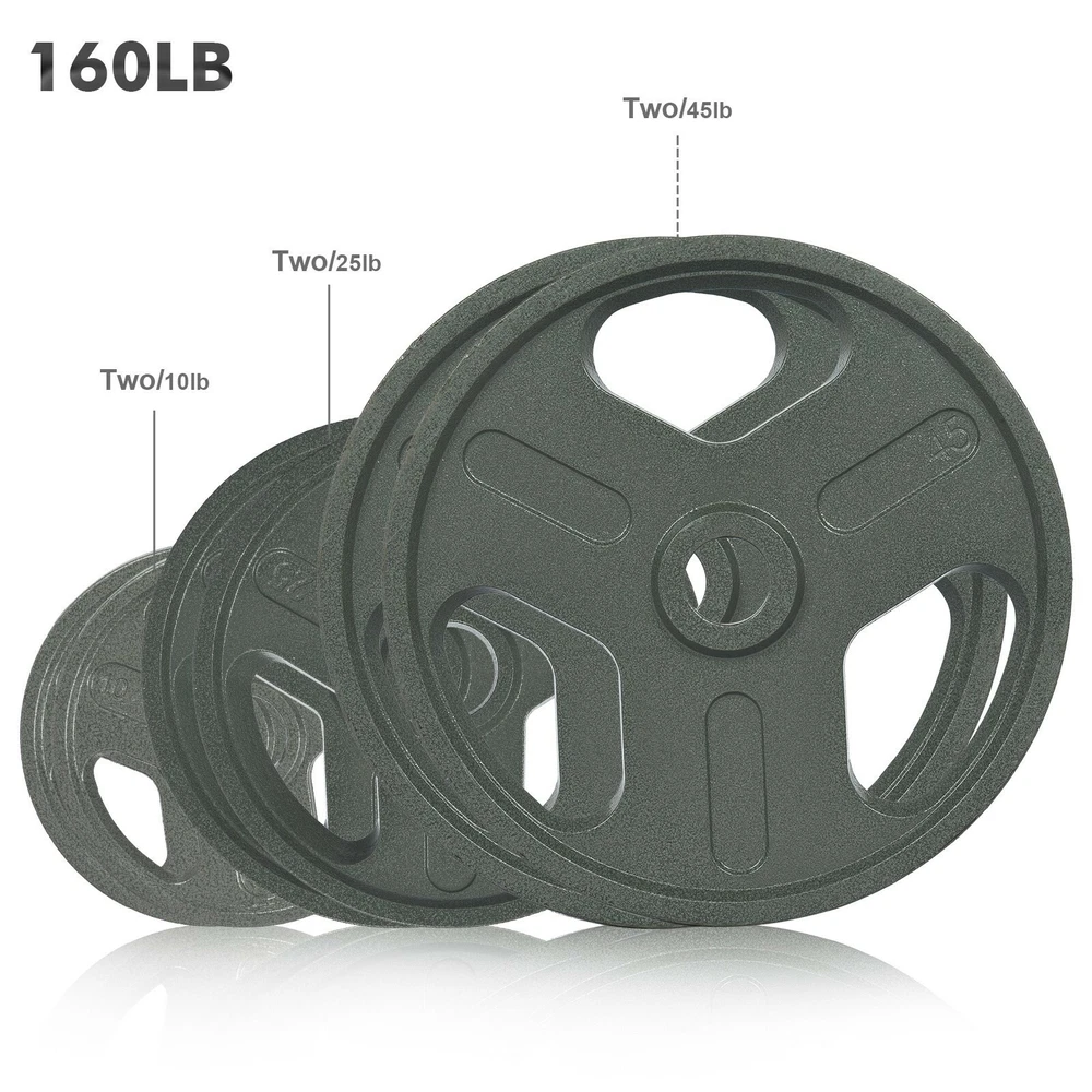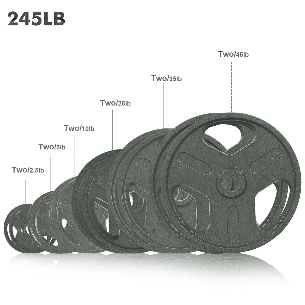 product description: 【Standard Bars】Suitable for all O lympic barbells with 2 inch sleeves. Each board has an IWF standard, and its diameter and thickness vary by weight (thinner width than most comparable boards on the market, allowing more weight to be L OADED on the rod.). 【Training Essentials】 A good bumper set is the core of modern training. Perform O lympic lifts, squats, and deadlifts safely and confidently with our hardcore technique. 【Natural Material】100% high density CA/ST iron material, durable, low elasticity, can withstand repeated drops. p rotect any type of floor and your bar. 【Rigid Design】Professionally designed stainless steel "hook" inserts stay firmly in place and balance. 【WEIGHT OPTIONAL】】The bumper plate has a variety of weights to choose from, suitable for strength training, weightlifting, etc. Product Details: Packing size: 19*19*4cm Gross weight: 2.5kg Product Quantity: 2 pieces Specification 2.5LB/1.1kg: Plate diameter 6.38in/16.2cm, thickness 0.43in/1.1cm, aperture 2in/5cm; Products include: dumbbell plates (note that the product does not include dumbbell bars) The specifications of this series of dumbbell boards are as follows: 【Single piece size】 【Specification 35LB/15.8kg】: Plate diameter 14.5in/36.8cm, thickness 1.3in/3.3cm, aperture 2in/5cm; 【Specification 25LB/11.3kg】: Plate diameter 10.6in/27cm, thickness 1.22in/3.0cm, aperture 2in/5cm; 【Specification 10LB/4.5kg】: Plate diameter 9.6in/24.3cm, thickness 0.83in/2.1cm, aperture 2in/5cm; 【Specification 5LB/2.2kg】: Plate diameter 7.8in/20cm, thickness 0.75in/1.9cm, aperture 2in/5cm; 【Specification 2.5LB/1.1kg】: Plate diameter 6.38in/16.2cm, thickness 0.43in/1.1cm, aperture 2in/5cm; Note: This is manual measurement, there may be errors, please understand! !