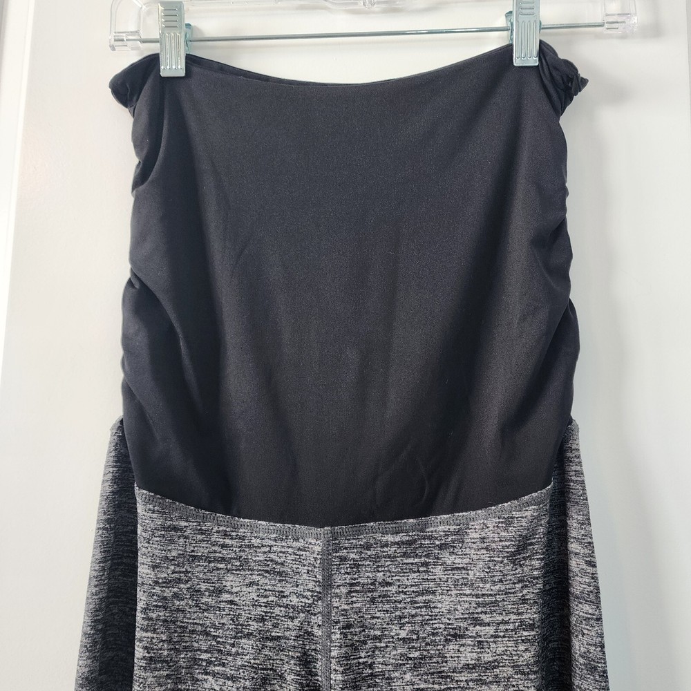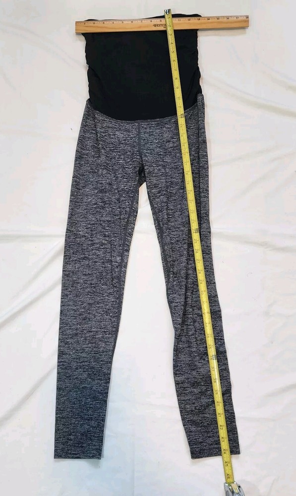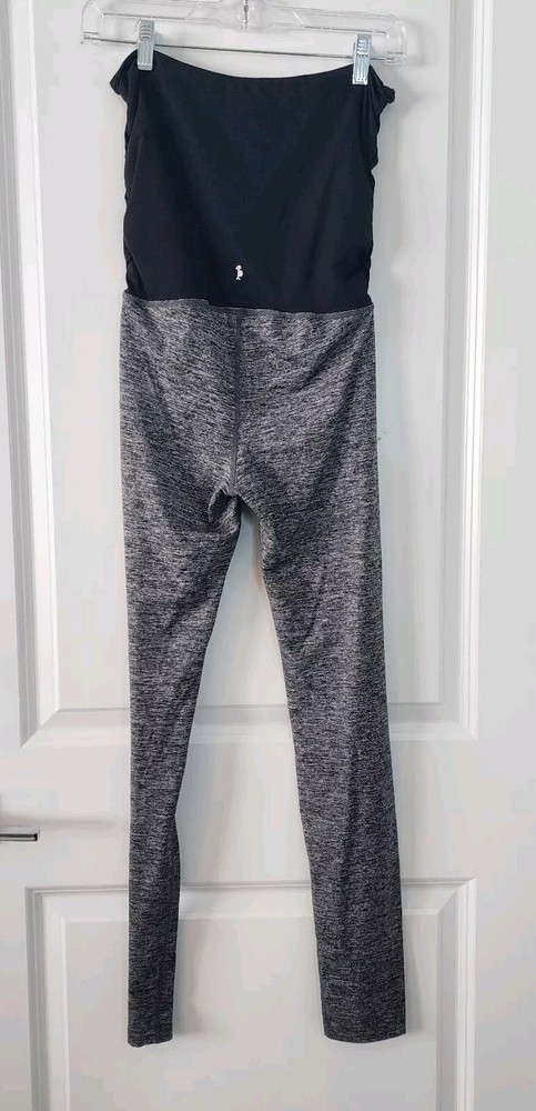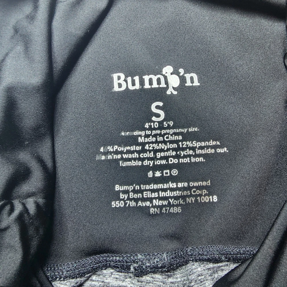 The "Bump'n Maternity Leggings" are designed by the brand Bump'n for expectant mothers, featuring a stretchy material tailored for maternity wear. These leggings are in a size small, with a comfortable black waistline for added support. The color of the leggings is a stylish gray, and they are lined for extra coverage and warmth. Perfect for women looking for both comfort and style during their pregnancy, these leggings provide a practical and trendy option for everyday wear.