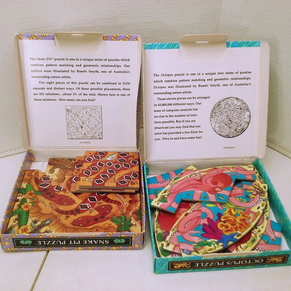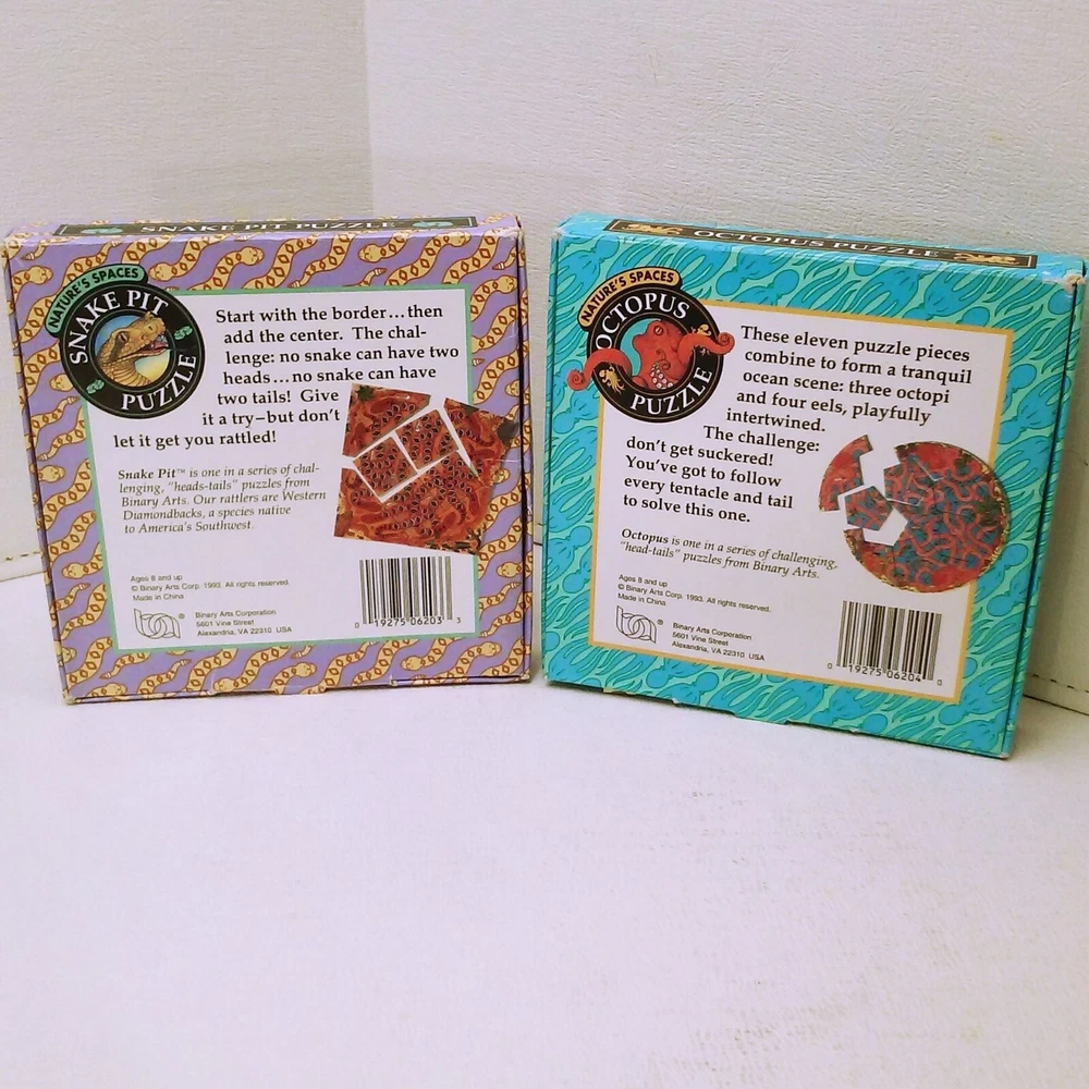 Bundle Lot-2 Nature's Spaces Snake Pit + Octopus Puzzle Binary Arts Symth 1993