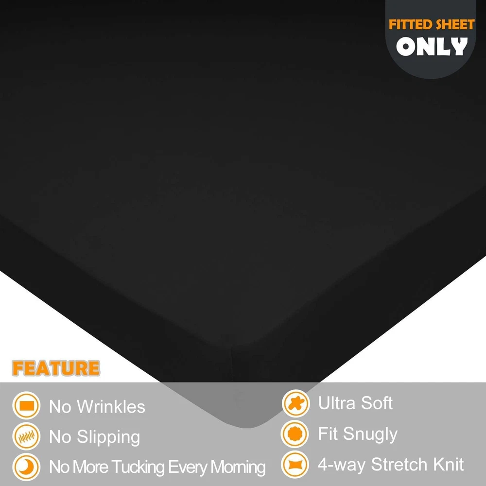 Bundle Set of Stretch Fitted Sheet and Pillow Cases - Black, Queen