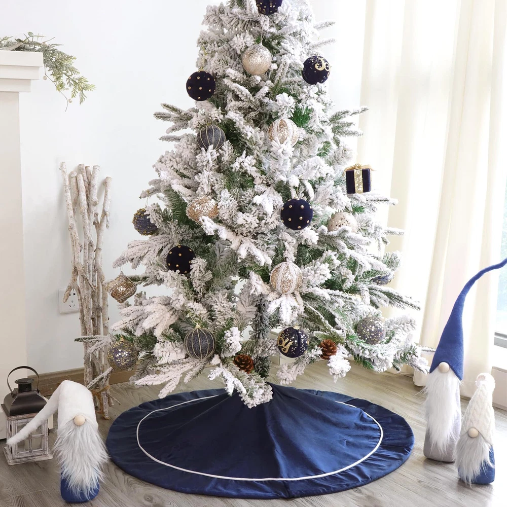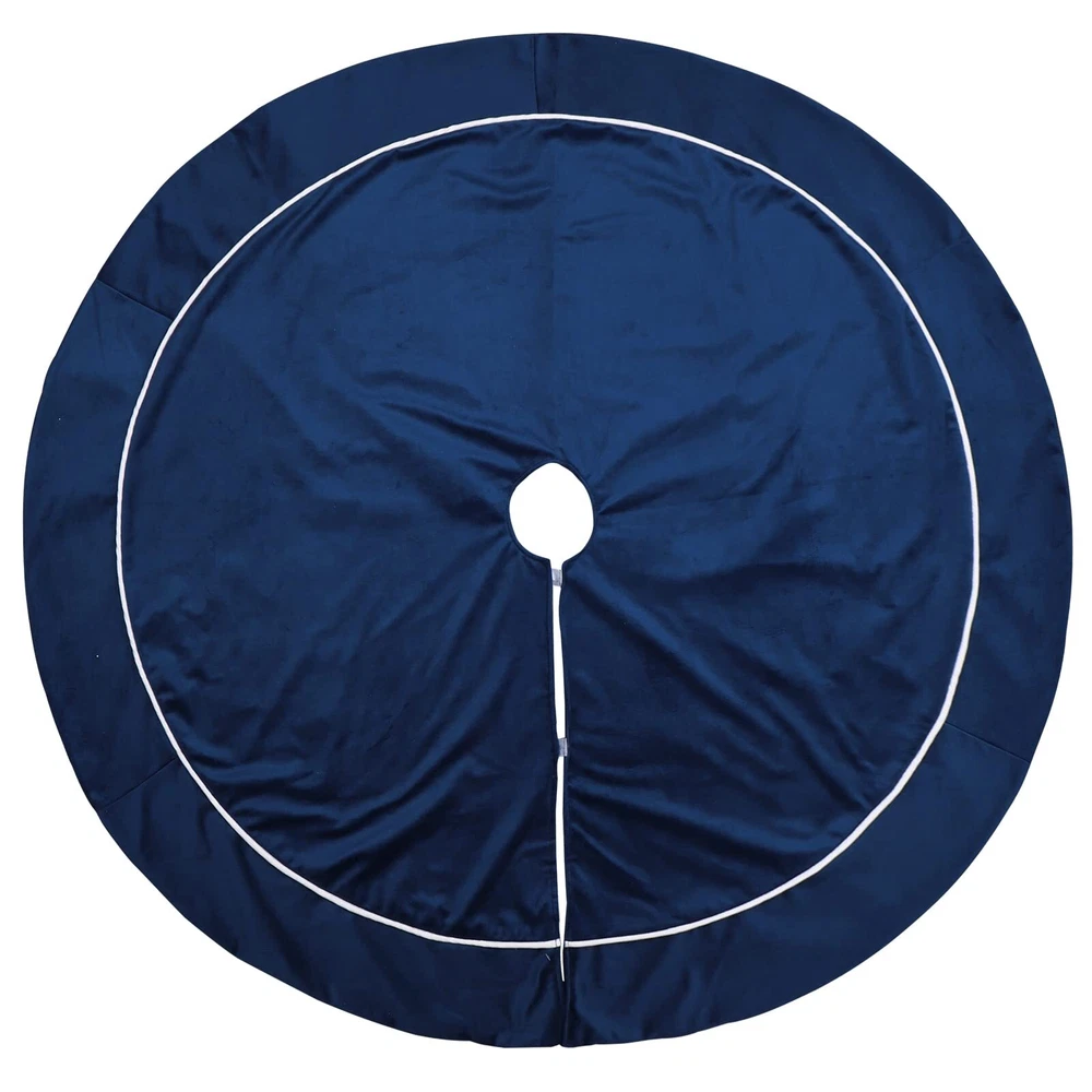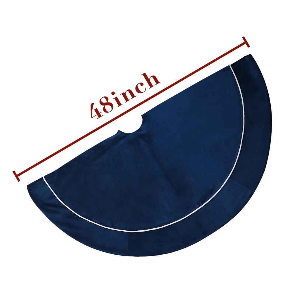 Features: ❖ Made of plush velvet fabric, soft comfortable and durable. ❖ Classic traditional bule color matching. ❖ Tie at opening to secure tree skirt in place around Christmas tree. Specifications: ❖ Material: Polyester ❖Weight: 1.1 lb ❖ Size: 121cm / 48 inch full size ❖Style: Rustic. Traditional.Vintage. Recommended Usage: ❖ Perfect for any size tree from 5' small to 8' large trees. ❖ Go with traditionally decorated and whimsical artificial Christmas trees. ❖ DIY the tree skirt with Bunny Chorus Christmas DIY kit.(Please search ""Bunny Chorus Christmas DIY kit"") Package Includes: ❖ 1 x Bule Plush Christmas Tree Skirt 【Perfect Size】The diameter of this Christmas tree skirt is 48 inches, it fits all Christmas tree sizes. Perfect for hiding tree stands, and you can put Christmas gifts on the tree skirt to add more festive vibes. 【Function】The 48 inch large tree skirt is one of the best tree decorations to hide the unsightly 'legs’ of the tree stand and any wires used to supply current to the tree lights. 【Vintage Design】The blue tree skirt comes in an elegant and classic color, it looks rustic, simple and noble. Easily complement your Christmas tree decorations with this traditional tree skirt. 【Premium Fabric】 The xmas tree skirt is made of high-quality velvet fabric, which is soft and smooth to the touch. Under the lights of the Christmas tree, there will be a soft sheen. 【Application scene】: Holiday family Christmas tree party decoration, can be placed in the living room, bedroom, lobby, garden and other places. Can be reused many times.