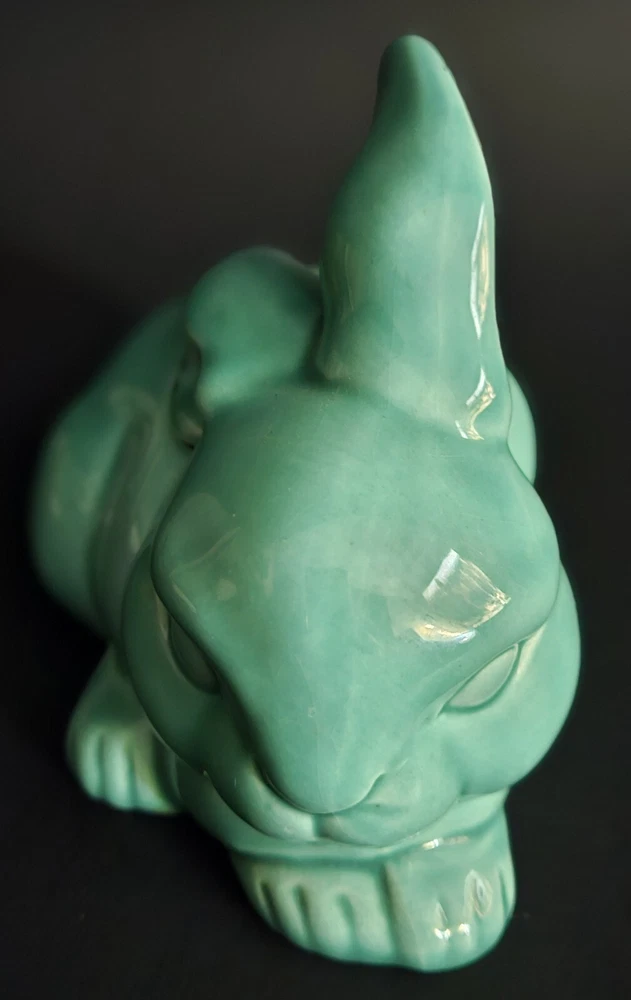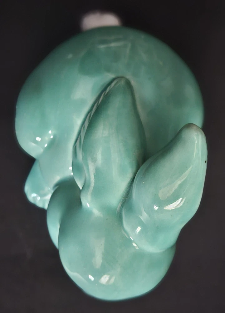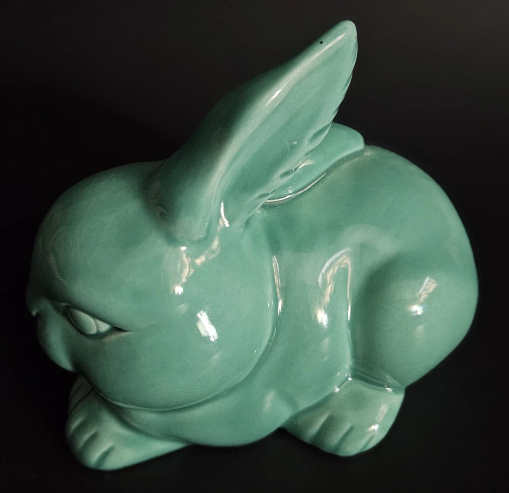 Vintage glazed ceramic bunny rabbit cotton ball dispensor. 4.25"T x 5"L. No chips, cracks or damage. Excellent condition.