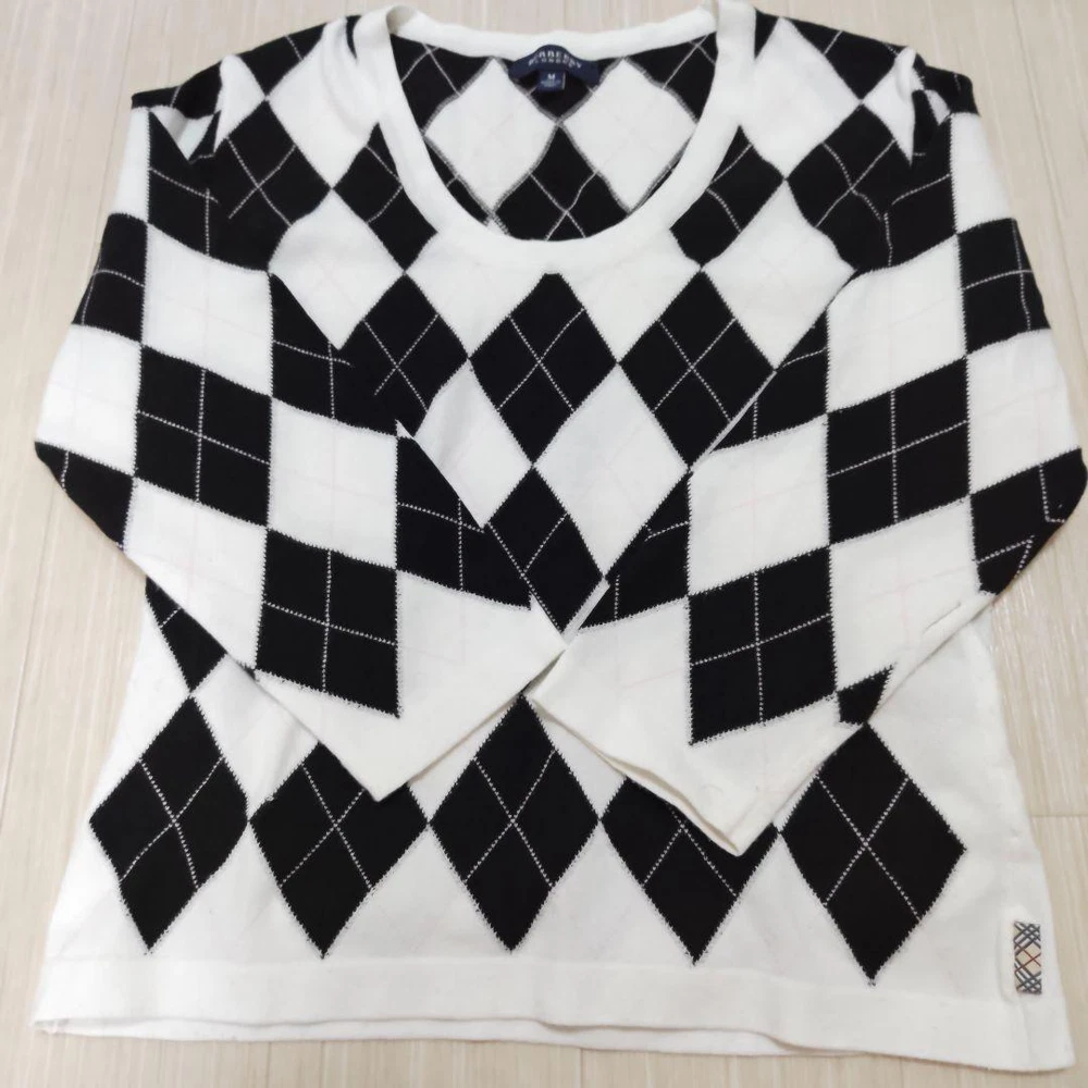 Burberry Argyle Knit Sweater White Black Pattern Size M New Key Features **BURBERRY Argyle Knit Sweater - Size M** - **Brand:** BURBERRY - **Product Type:** Knit Sweater - **Design:** Argyle pattern for a unique yet simple look - **Color:** White and Black contrast, versatile for any outfit - **Size:** M (UK size), equivalent to S in Japan - **Fit:** Feminine silhouette with three-quarter sleeves, suitable for all seasons - **Condition:** Used, with very small pilling that is barely noticeable; well cared for and still in great wearable condition - **Neckline:** Crew neck - **Season:** Ideal for autumn and winter Elevate your wardrobe with this luxurious BURBERRY knit sweater, perfect for stylish layering! Specifications Brand Burberry London Country Japan Product Description Item Title Burberry Argyle Pattern Knit M Payment Supports managed payments Please pay within 5 days after auction is finished. About Us We are located in Japan. It's our pleasure to make you happy by proposing our recommend item. If you have any questions or request about items, please feel free to ask us. International Buyers - Please Note: -Import duties, taxes, and charges are not included in the item price or shipping charges. These charges are the buyer's responsibility. -Please check with your country's customs office to determine what these additional costs will be prior to bidding/buying. -These charges are normally collected by the delivering freight (shipping) company or when you pick the item up - do not confuse them for additional shipping charges. -We do not mark merchandise values below value or mark items as - gifts - The US and International government regulations prohibit such behavior. Thank you for your understanding.