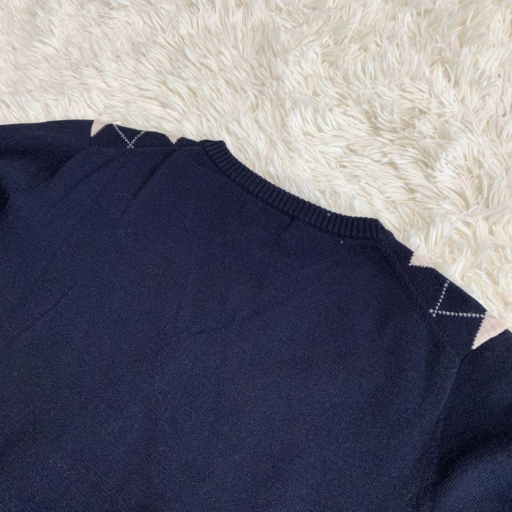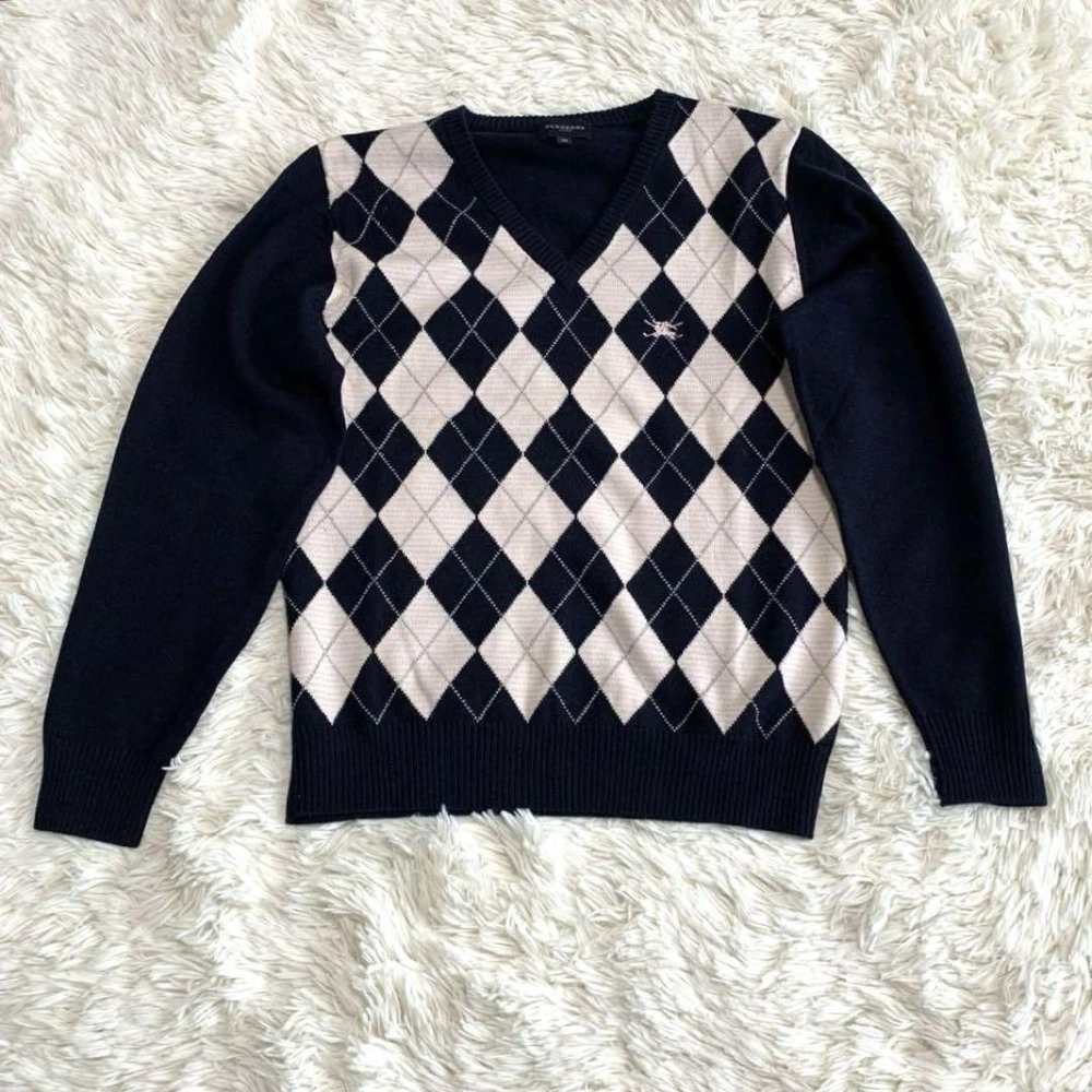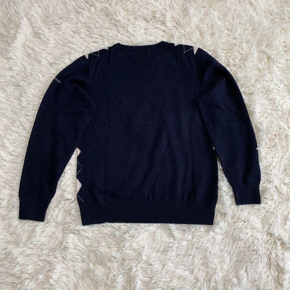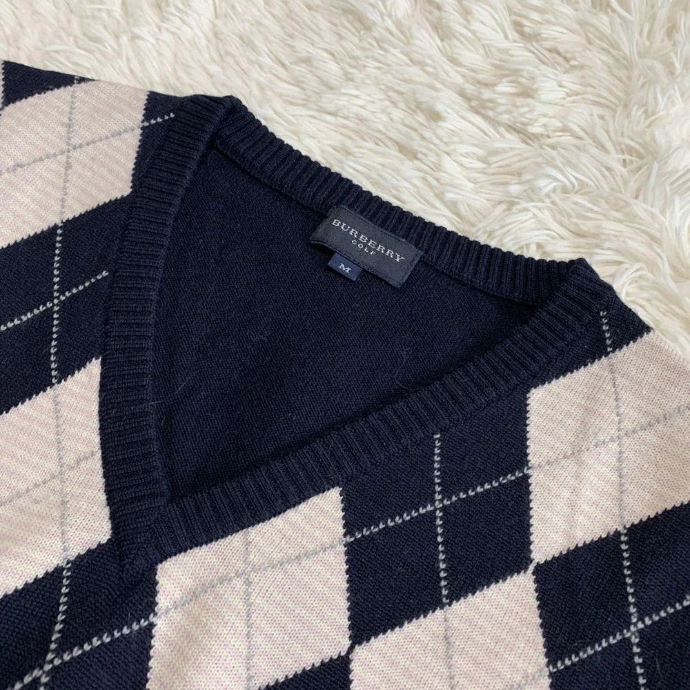 Burberry Argyle Knit Sweater Wool 100 Navy Pink Size M - Excellent Condition Key Features **Burberry Argyle Knit Sweater** - **Brand:** Burberry - **Product Type:** Knit Sweater - **Color:** Navy and Pink - **Material:** 100% Wool - **Size:** - Shoulder Width: 38 cm - Chest Width: 45 cm - Sleeve Length: 55.5 cm - Length: 58 cm - **Condition:** Excellent condition with no noticeable scratches or stains. - **Authenticity:** Guaranteed authentic, certified by a reputable brand reuse store. Refund available if counterfeit. Feel free to reach out with any questions! Specifications Brand Burberry Golf Country Japan Product Description Item Title Burberry Knit Argyle Wool 100 M Payment Supports managed payments Please pay within 5 days after auction is finished. About Us We are located in Japan. It's our pleasure to make you happy by proposing our recommend item. If you have any questions or request about items, please feel free to ask us. International Buyers - Please Note: -Import duties, taxes, and charges are not included in the item price or shipping charges. These charges are the buyer's responsibility. -Please check with your country's customs office to determine what these additional costs will be prior to bidding/buying. -These charges are normally collected by the delivering freight (shipping) company or when you pick the item up - do not confuse them for additional shipping charges. -We do not mark merchandise values below value or mark items as - gifts - The US and International government regulations prohibit such behavior. Thank you for your understanding.