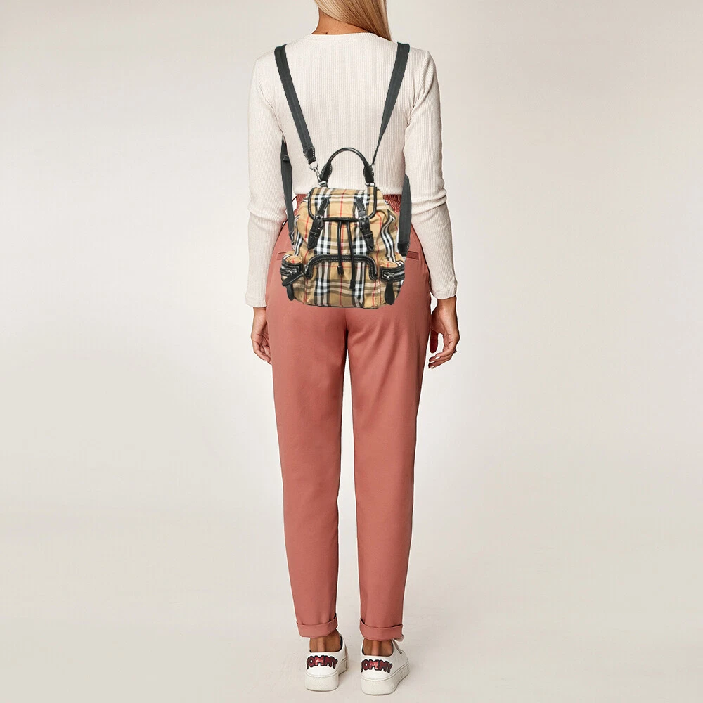 This practical and fashionable backpack will come in handy for daily use or as a style statement. It is smartly designed with a spacious interior for your belongings. Two shoulder straps make it ready to be yours.Certified by The Luxury Closet - This item has gone through a detailed authentication process overseen by our experts. We offer a lifetime guarantee of authenticity on all our items. Import duties, taxes and charges are not included in the item price. These charges are the buyers responsibility. Please check with your country’s customs office to determine what these additional cost will be prior to buying. Our eBay Store About Us Contact Us Add to Favorite Sellers Burberry Beige/Black Leather House Check Nylon and Leather Rucksack Backpack $1299.1 This practical and fashionable backpack will come in handy for daily use or as a style statement. It is smartly designed with a spacious interior for your belongings. Two shoulder straps make it ready to be yours. Product Details Brand Color Beige Dimensions Height: 28 cm, Width: 12 cm, Length: 25 cm Material Leather, Nylon Size Outsole Width Outsole Length Heel Height Includes The Luxury Closet Packaging Certified by The Luxury Closet This item has gone through a detailed authentication process overseen by our experts. We offer a lifetime guarantee of authenticity on all our items. How We Check The in-house team of experts at The Luxury Closet is highly trained to verify the authenticity and the condition of the luxury products. They ensure that only 100% authentic items are put on sale.The evaluation process is unique with its own mix of assessment criteria and differs according to the category. Each item is evaluated based on the following combination of hallmarks, hardware, stitching, symmetry, material, craftsmanship, stamping, codes, hologram stickers, and packaging. Our authenticators also check if the items have been modified or amended (e.g., aftermarket diamonds, replaced batteries, repaired bags, etc.) International Buyers Import duties, taxes and charges are not included in the item price. These charges are the buyers responsibility. Please check with your country’s customs office to determine what these additional cost will be prior to buying.