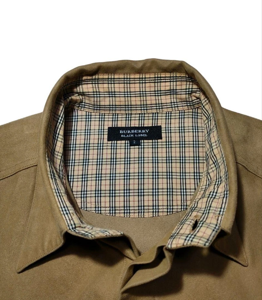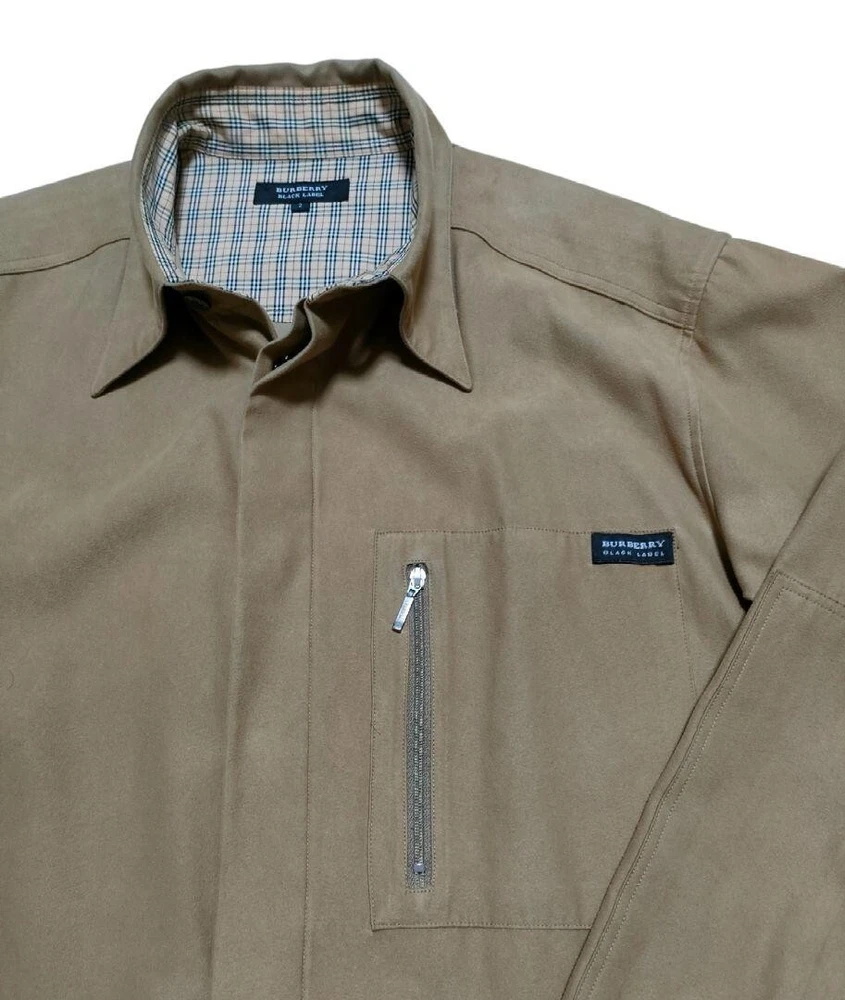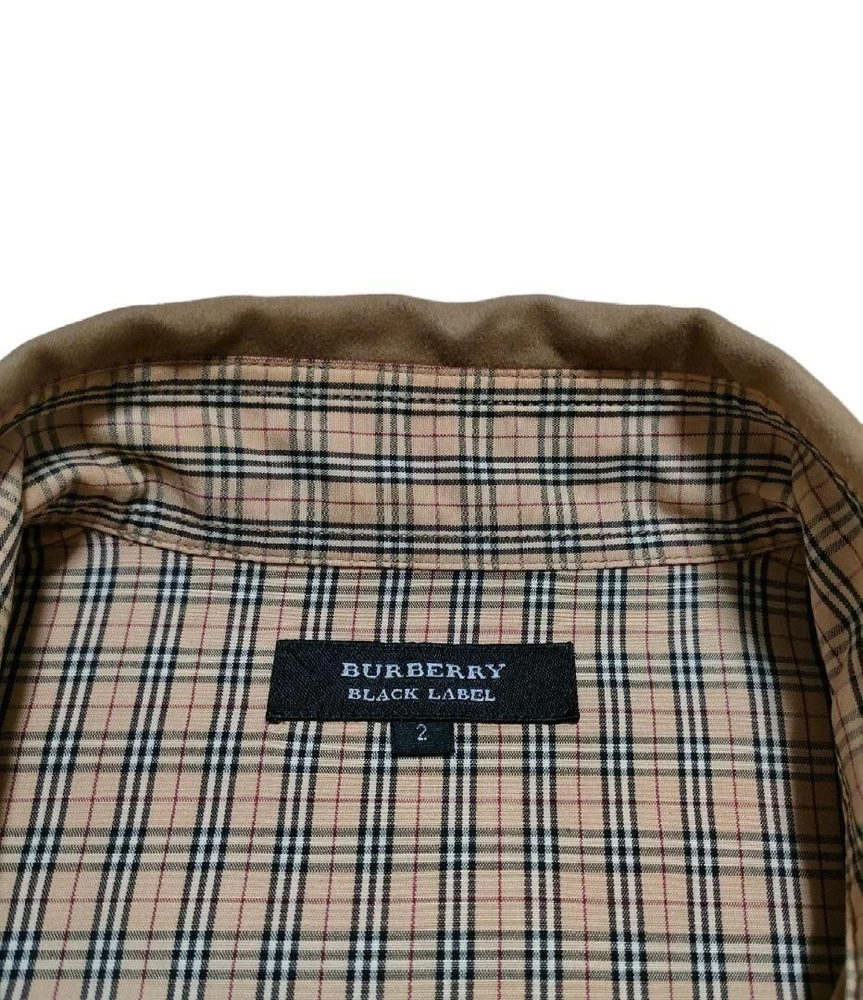 Burberry Black Label Shirt Velor Nova Check Beige Polyester Men Size 2/S-M Used
