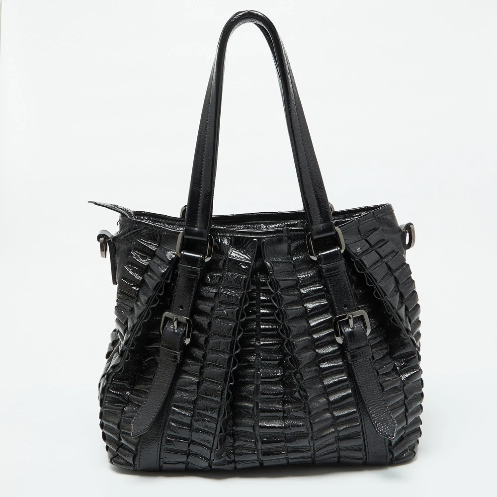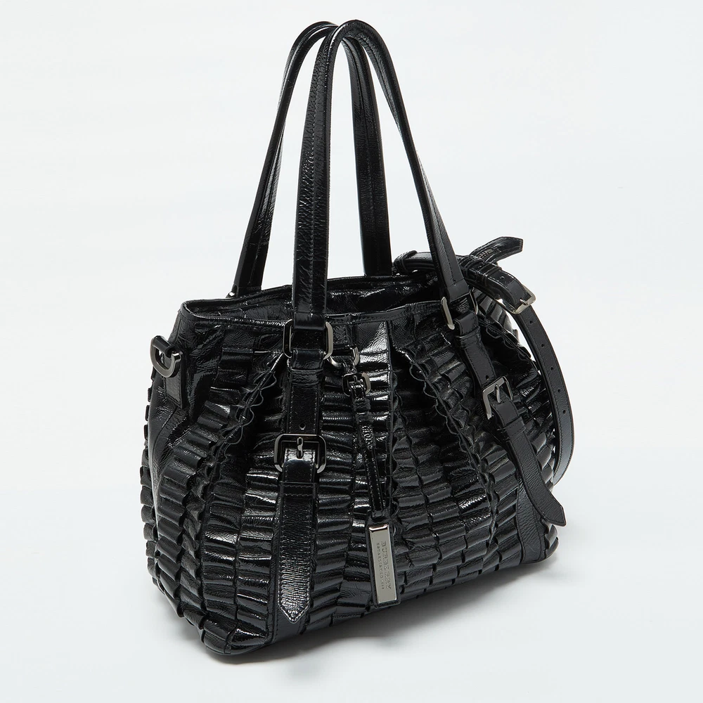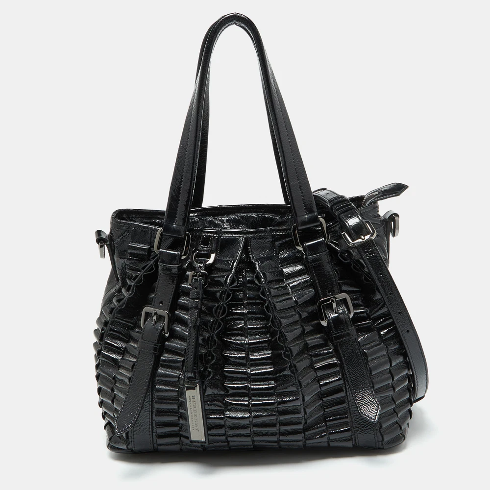 Created from high quality materials, this tote is enriched with functional and classic elements. It can be carried around conveniently, and its interior is perfectly sized to keep your belongings with ease.Certified by The Luxury Closet - This item has gone through a detailed authentication process overseen by our experts. We offer a lifetime guarantee of authenticity on all our items. Import duties, taxes and charges are not included in the item price. These charges are the buyers responsibility. Please check with your country’s customs office to determine what these additional cost will be prior to buying. Our eBay Store About Us Contact Us Add to Favorite Sellers Burberry Black Patent Leather Cartridge Pleat Tote $690.8 Created from high quality materials, this tote is enriched with functional and classic elements. It can be carried around conveniently, and its interior is perfectly sized to keep your belongings with ease. Product Details Brand Color Black Dimensions Height: 30 cm, Width: 19 cm, Length: 36 cm Material Patent Leather Size Outsole Width Outsole Length Heel Height Includes Original Dustbag, Detachable Strap Certified by The Luxury Closet This item has gone through a detailed authentication process overseen by our experts. We offer a lifetime guarantee of authenticity on all our items. How We Check The in-house team of experts at The Luxury Closet is highly trained to verify the authenticity and the condition of the luxury products. They ensure that only 100% authentic items are put on sale.The evaluation process is unique with its own mix of assessment criteria and differs according to the category. Each item is evaluated based on the following combination of hallmarks, hardware, stitching, symmetry, material, craftsmanship, stamping, codes, hologram stickers, and packaging. Our authenticators also check if the items have been modified or amended (e.g., aftermarket diamonds, replaced batteries, repaired bags, etc.) International Buyers Import duties, taxes and charges are not included in the item price. These charges are the buyers responsibility. Please check with your country’s customs office to determine what these additional cost will be prior to buying.