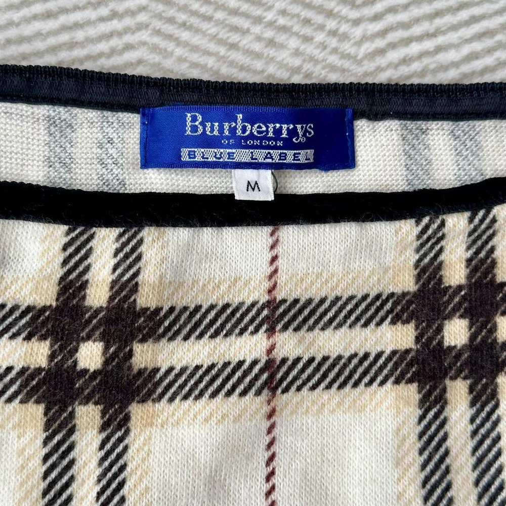 Burberry Blue Label Beige Long Sleeve Sweater with Cuff Drawcord, Size M Key Features **BURBERRY BLUE LABEL Long Sleeve Sweater** - **Brand:** Burberry Blue Label - **Product Type:** Long Sleeve Sweater - **Model:** Nova Check Pattern Sweater - **Color:** Beige - **Material:** 90% Acrylic, 10% Wool - **Size:** M - Total Length: Approximately 47 cm - Width: Approximately 39 cm - Shoulder Width: Approximately 38 cm - Sleeve Length: Approximately 42 cm - **Features:** - Iconic Nova Check pattern - Stretchable fabric for comfort - Suitable for wearing alone - Recommended for the upcoming season - **Condition:** - No stains or fraying - Very clean and well-maintained Elevate your wardrobe with this stylish and versatile Burberry Blue Label sweater, perfect for all seasons! Specifications Brand Burberry Blue Label Country Japan Product Description Item Title Burberry Blue Label Cuff Drawcord/Sweater Long Sleeve Beige M Payment Supports managed payments Please pay within 5 days after auction is finished. About Us We are located in Japan. It's our pleasure to make you happy by proposing our recommend item. If you have any questions or request about items, please feel free to ask us. International Buyers - Please Note: -Import duties, taxes, and charges are not included in the item price or shipping charges. These charges are the buyer's responsibility. -Please check with your country's customs office to determine what these additional costs will be prior to bidding/buying. -These charges are normally collected by the delivering freight (shipping) company or when you pick the item up - do not confuse them for additional shipping charges. -We do not mark merchandise values below value or mark items as - gifts - The US and International government regulations prohibit such behavior. Thank you for your understanding.