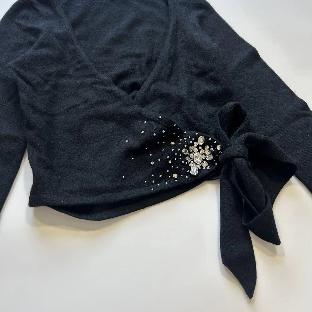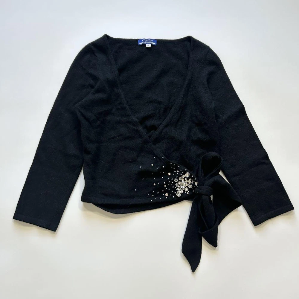 Burberry Blue Label Bijou Ribbon Cashmere Angora Cardigan - Authenticated New Key Features **Burberry BLUE LABEL Knit Cardigan Sweater** - **Brand:** Burberry BLUE LABEL - **Product Type:** Knit Cardigan Sweater - **Model:** Not specified - **Size:** 38 (M) - **Measurements:** - Length: Approximately 46 cm - Width: Approximately 45 cm - Shoulder Width: Approximately 33 cm - Sleeve Length: Approximately 46 cm - Note: Measurements are taken flat and may have slight variations. - **Color:** Black - **Material:** Cashmere - **Condition:** - Gently used with no noticeable scratches or stains. - Please note that this is a vintage item, and minor imperfections may be present. This stylish black cashmere cardigan from Burberry BLUE LABEL is perfect for the autumn and winter seasons. Enjoy the luxury of authentic fashion with confidence! Specifications Brand Burberry Blue Label Country Japan Product Description Item Title Burberry Blue Label Bijou Ribbon Cardigan Cashmere Angora Payment Supports managed payments Please pay within 5 days after auction is finished. About Us We are located in Japan. It's our pleasure to make you happy by proposing our recommend item. If you have any questions or request about items, please feel free to ask us. International Buyers - Please Note: -Import duties, taxes, and charges are not included in the item price or shipping charges. These charges are the buyer's responsibility. -Please check with your country's customs office to determine what these additional costs will be prior to bidding/buying. -These charges are normally collected by the delivering freight (shipping) company or when you pick the item up - do not confuse them for additional shipping charges. -We do not mark merchandise values below value or mark items as - gifts - The US and International government regulations prohibit such behavior. Thank you for your understanding.