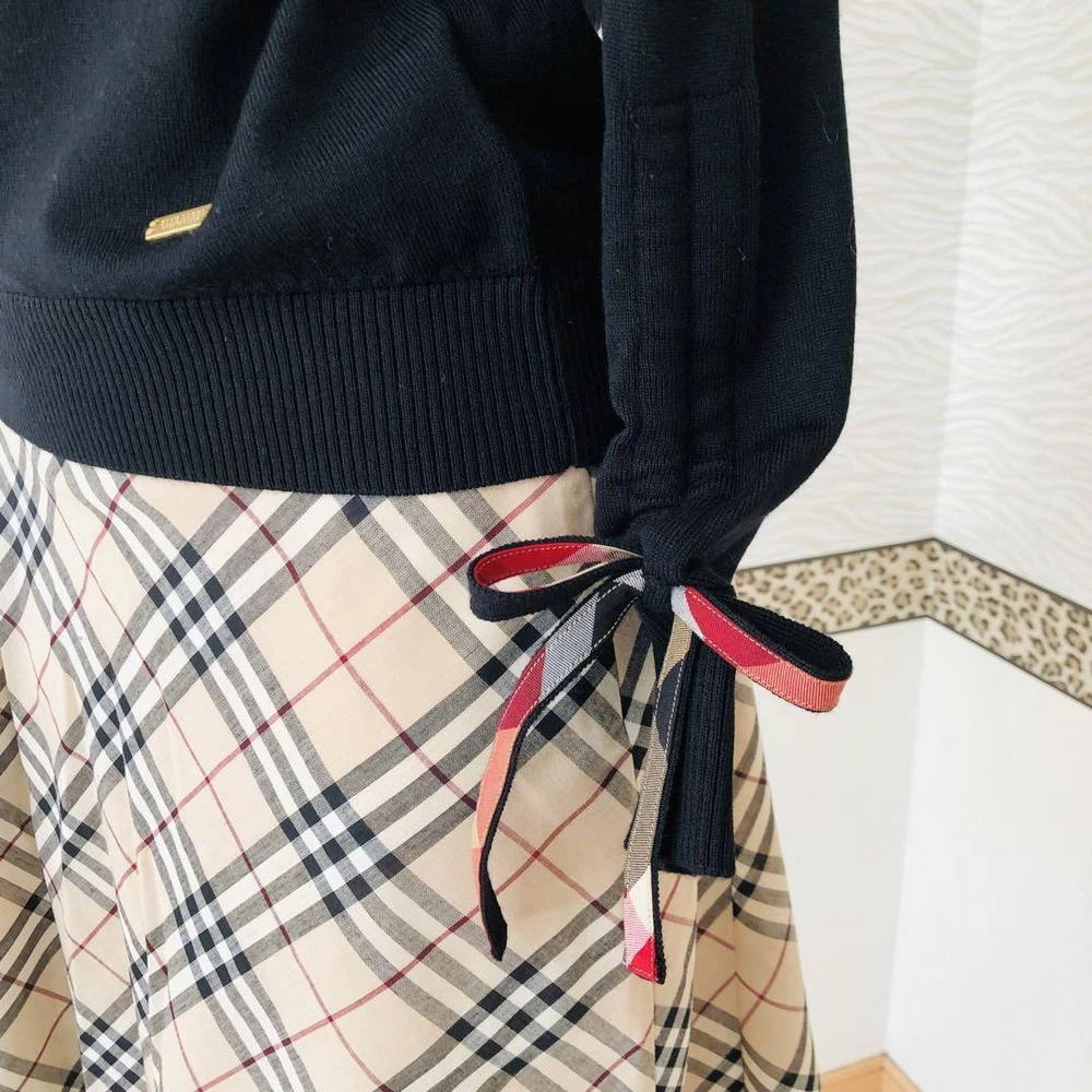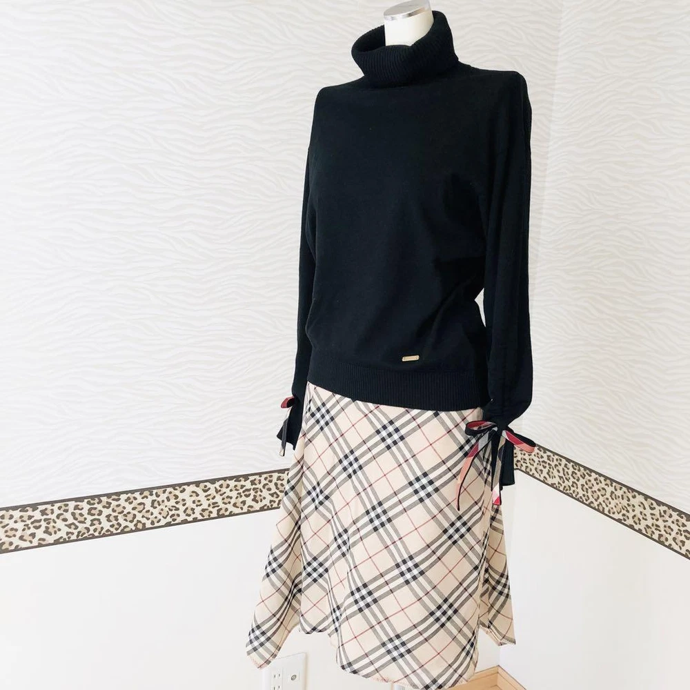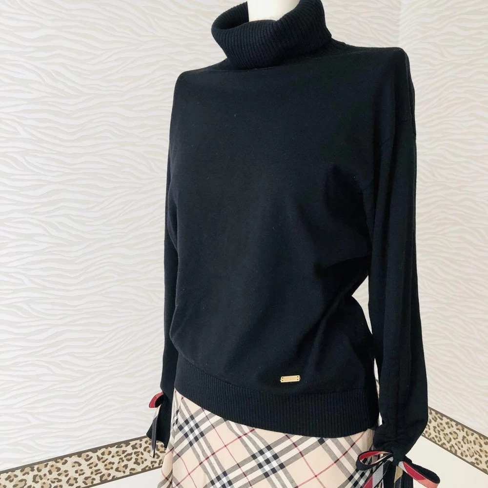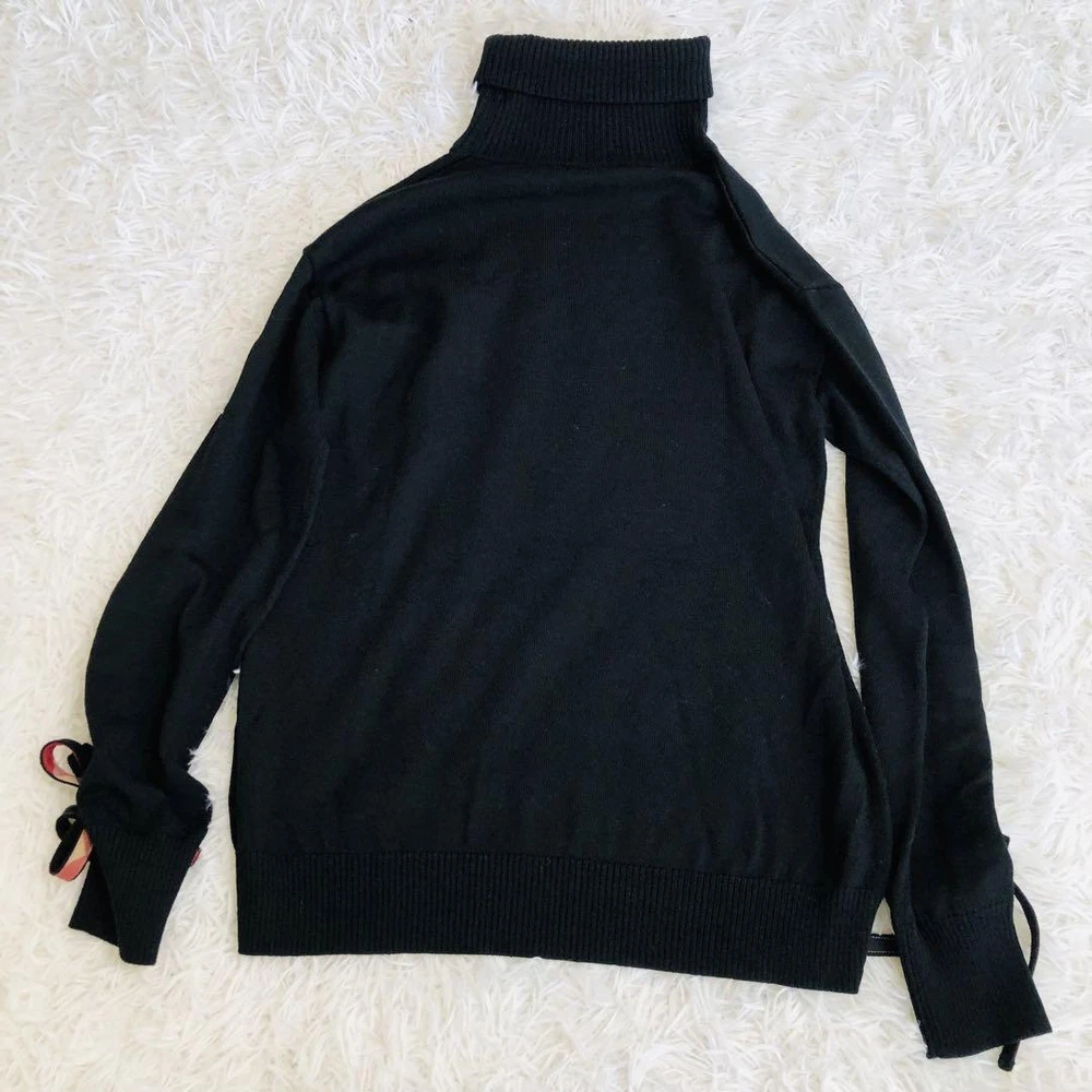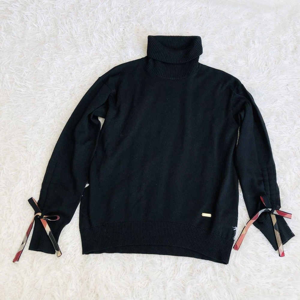 Burberry Blue Label Black Turtle Knit w/ Crest Bridge Ribbon, Used Key Features **Burberry Knit Sweater with Crest Bridge Check Ribbon** - **Brand:** Burberry - **Product Type:** Knit Sweater - **Model:** Not specified **Features:** - **Color:** Black - **Material:** Wool - **Size:** - Length: 58 cm - Shoulder Width: 46 cm - Chest Width: 45 cm - Sleeve Length: 52 cm - **Design:** Features a cute Crest Bridge check ribbon on the sleeves. **Condition:** - Gently used with slight signs of wear. - Minor stains and small scratches may be present. - Pilling is noticeable; please consider this before purchasing. - No major damages or noticeable stains. - Please note that the Nova check skirt shown in the images is not included. **Additional Information:** - This is a pre-owned item; please only purchase if you are comfortable with used clothing. - Color may vary slightly due to lighting conditions. Specifications Brand Blue Label Crestbridge Country Japan Product Description Item Title Blue Label Crest Bridge Turtle Knit Sleeve Ribbon Wool Black Payment Supports managed payments Please pay within 5 days after auction is finished. About Us We are located in Japan. It's our pleasure to make you happy by proposing our recommend item. If you have any questions or request about items, please feel free to ask us. International Buyers - Please Note: -Import duties, taxes, and charges are not included in the item price or shipping charges. These charges are the buyer's responsibility. -Please check with your country's customs office to determine what these additional costs will be prior to bidding/buying. -These charges are normally collected by the delivering freight (shipping) company or when you pick the item up - do not confuse them for additional shipping charges. -We do not mark merchandise values below value or mark items as - gifts - The US and International government regulations prohibit such behavior. Thank you for your understanding.