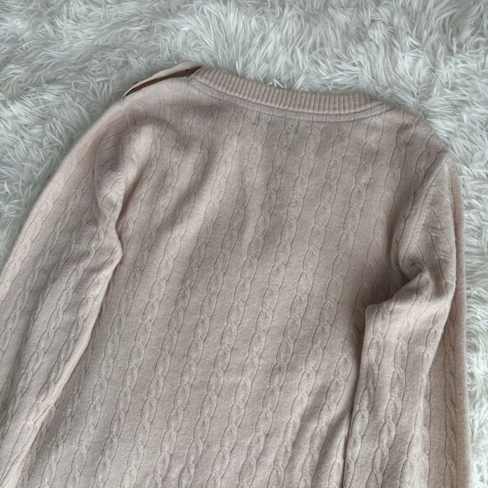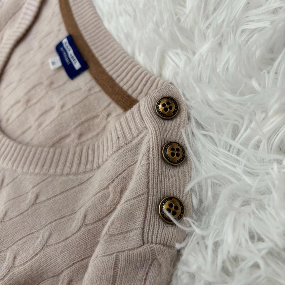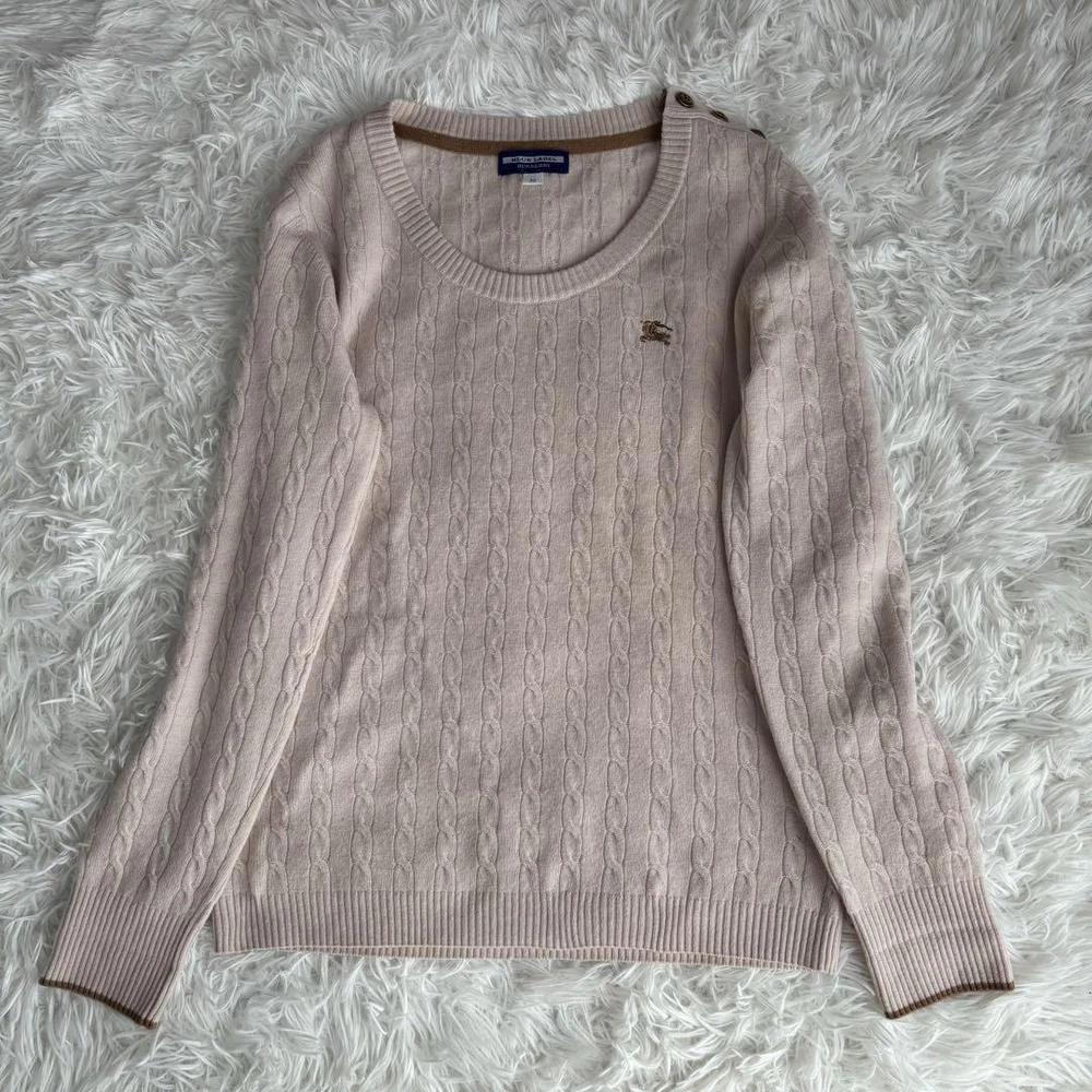 Burberry Blue Label Cashmere Blend Cable Knit Long Sleeve Sweater M Key Features **Burberry Blue Label Cashmere Blend Sweater** - **Brand:** Burberry Blue Label - **Product Type:** Sweater - **Model:** Horse Logo with Gold Buttons - **Color:** Light Pink - **Material:** Cashmere and Wool - **Size:** 38 - Shoulder Width: 40 cm - Chest Width: 43 cm - Sleeve Length: 57 cm - Total Length: 58.5 cm - **Condition:** - Overall used condition with noticeable signs of wear. - No prominent scratches or stains; still plenty of life left. - **Notes:** - This item was purchased from a reputable apparel recycling shop and has been authenticated. - Please note that the actual color may slightly differ from photos, especially for colored items. - Minor folding wrinkles may occur due to compact packaging. Hangers and accessories are not included. Specifications Brand Burberry Blue Label Country Japan Product Description Item Title Cashmere Blend Burberry Blue Label Cable Knit Long Sleeve Logo M Payment Supports managed payments Please pay within 5 days after auction is finished. About Us We are located in Japan. It's our pleasure to make you happy by proposing our recommend item. If you have any questions or request about items, please feel free to ask us. International Buyers - Please Note: -Import duties, taxes, and charges are not included in the item price or shipping charges. These charges are the buyer's responsibility. -Please check with your country's customs office to determine what these additional costs will be prior to bidding/buying. -These charges are normally collected by the delivering freight (shipping) company or when you pick the item up - do not confuse them for additional shipping charges. -We do not mark merchandise values below value or mark items as - gifts - The US and International government regulations prohibit such behavior. Thank you for your understanding.
