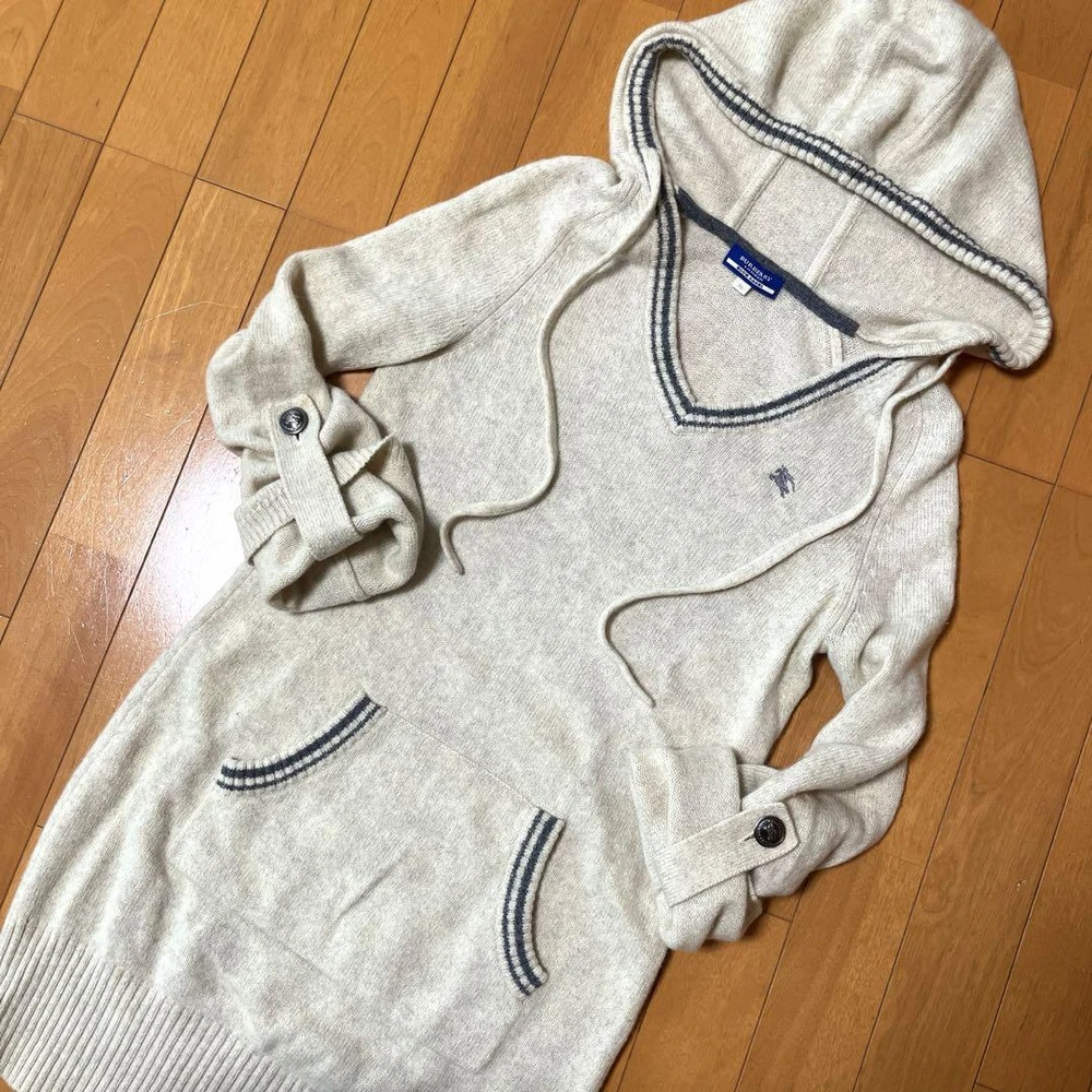 Burberry Blue Label Hoodie One-Piece Dress Tunic Embroidered Logo New Key Features **BURBERRY BLUE LABEL Parka Dress** - **Brand:** BURBERRY BLUE LABEL - **Product Type:** Parka Dress / Knit Tunic - **Model:** N/A **Features:** - **Color:** White / White Beige - **Size:** 38 - **Length:** Approximately 77 cm - **Shoulder Width:** Approximately 35 cm - **Chest Width:** Approximately 41 cm - **Sleeve Length:** Approximately 60 cm - **Adjustable Sleeve Length:** Can be adjusted according to temperature and outfit mood - **Design:** Features logo hardware and horse logo embroidery **Condition:** - Purchased from a major reuse shop - Shows minor signs of use but no noticeable stains or damage - Still in great condition for continued use - Please review photos for details; suitable for those who understand pre-owned items *Note: Item will be folded compactly, so please expect some creasing Specifications Brand Burberry Blue Label Country Japan Product Description Item Title Burberry Blue Label Hoodie Knit One Piece Logo Embroidery Payment Supports managed payments Please pay within 5 days after auction is finished. About Us We are located in Japan. It's our pleasure to make you happy by proposing our recommend item. If you have any questions or request about items, please feel free to ask us. International Buyers - Please Note: -Import duties, taxes, and charges are not included in the item price or shipping charges. These charges are the buyer's responsibility. -Please check with your country's customs office to determine what these additional costs will be prior to bidding/buying. -These charges are normally collected by the delivering freight (shipping) company or when you pick the item up - do not confuse them for additional shipping charges. -We do not mark merchandise values below value or mark items as - gifts - The US and International government regulations prohibit such behavior. Thank you for your understanding.