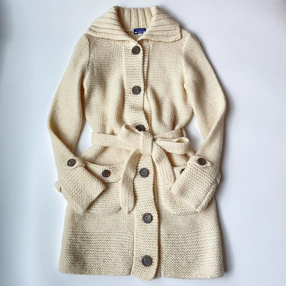 Burberry Blue Label Knit Long Cardigan Coat with Belt, Size M, New Key Features **BURBERRY BLUE LABEL Knit Coat** - **Brand**: BURBERRY BLUE LABEL - **Product Type**: Knit Coat/Cardigan - **Model**: Hand-knit Style with Large Buttons - **Color**: Ivory - **Material**: 100% Wool - **Size**: - Length: Approximately 80 cm - Shoulder Width: Approximately 35 cm - Chest Width: Approximately 43 cm - Sleeve Length: Approximately 62 cm - **Features**: - Collared design - Pocketed - **Condition**: - Pre-owned item - Cleaned and in good condition, but may have minor fraying (photos available upon request) Please review all details and photos before purchasing. Priority will be given to the first buyer. Specifications Brand Burberry Blue Label Country Japan Product Description Item Title Burberry Blue Label Knit Long Cardigan With Belt Coat M Payment Supports managed payments Please pay within 5 days after auction is finished. About Us We are located in Japan. It's our pleasure to make you happy by proposing our recommend item. If you have any questions or request about items, please feel free to ask us. International Buyers - Please Note: -Import duties, taxes, and charges are not included in the item price or shipping charges. These charges are the buyer's responsibility. -Please check with your country's customs office to determine what these additional costs will be prior to bidding/buying. -These charges are normally collected by the delivering freight (shipping) company or when you pick the item up - do not confuse them for additional shipping charges. -We do not mark merchandise values below value or mark items as - gifts - The US and International government regulations prohibit such behavior. Thank you for your understanding.