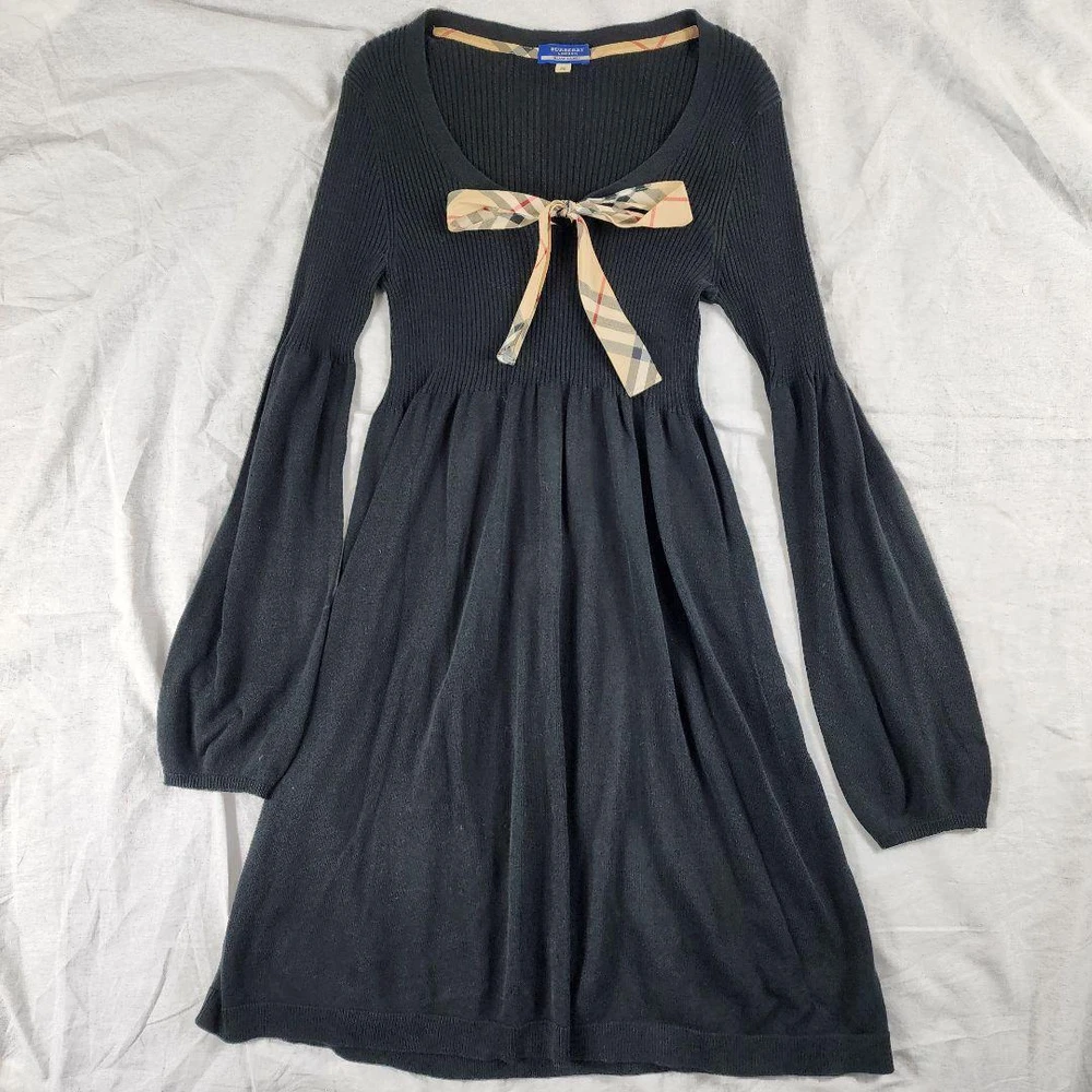 Burberry Blue Label Knit One Piece Dress Nova Check Pattern - Authentic, New Key Features **BURBERRY BLUE LABEL Knit Dress** - **Brand**: Burberry Blue Label - **Product Type**: Knit Dress - **Model**: Nova Check Bow Tie Neck Dress - **Color**: Black - **Size**: M (38) **Detailed Features**: - Knee-length design with waist gathering - Balloon sleeves with puffed detail - Bow tie neck for a stylish touch - Measurements (approx.): - Shoulder Width: 38 cm - Sleeve Length (shoulder to cuff): 67 cm - Sleeve Length (underarm to cuff): 53 cm - Bust Width: 35 cm - Dress Length: 85 cm (from collar to hem) **Condition**: - Minor pilling noted; please refer to images for details. - Purchased from a reputable second-hand market. Feel confident in your purchase as we offer only authentic products. Check out our store for more apparel options! Specifications Brand Burberry Blue Label Country Japan Product Description Item Title Good Design Burberry Blue Label Knit One Piece Nova Check Payment Supports managed payments Please pay within 5 days after auction is finished. About Us We are located in Japan. It's our pleasure to make you happy by proposing our recommend item. If you have any questions or request about items, please feel free to ask us. International Buyers - Please Note: -Import duties, taxes, and charges are not included in the item price or shipping charges. These charges are the buyer's responsibility. -Please check with your country's customs office to determine what these additional costs will be prior to bidding/buying. -These charges are normally collected by the delivering freight (shipping) company or when you pick the item up - do not confuse them for additional shipping charges. -We do not mark merchandise values below value or mark items as - gifts - The US and International government regulations prohibit such behavior. Thank you for your understanding.