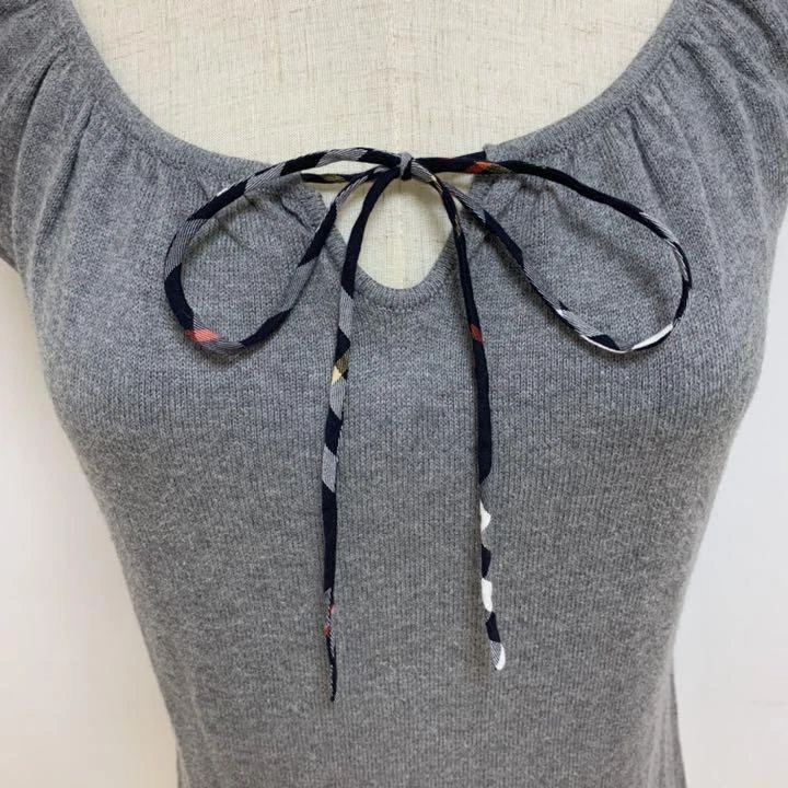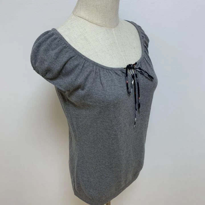 Burberry Blue Label Knit Shirt Gray Ribbon Size 38 Cotton New Key Features **BURBERRY BLUE LABEL Ribbon Knit Shirt** - **Brand:** BURBERRY BLUE LABEL - **Product Type:** Knit Shirt - **Material:** 100% Cotton - **Color:** Gray - **Size:** 38 - **Shoulder Length:** 28 cm - **Width:** 40 cm - **Length:** 51 cm - **Features:** Lightweight and comfortable fabric, perfect for the upcoming season. This stylish knit shirt features a charming ribbon detail, making it a versatile addition to your wardrobe. Ideal for casual outings or layering, it combines elegance with comfort. Specifications Brand Burberry Blue Label Country Japan Product Description Item Title Burberry Blue Label Knit Shirt With Ribbon Payment Supports managed payments Please pay within 5 days after auction is finished. About Us We are located in Japan. It's our pleasure to make you happy by proposing our recommend item. If you have any questions or request about items, please feel free to ask us. International Buyers - Please Note: -Import duties, taxes, and charges are not included in the item price or shipping charges. These charges are the buyer's responsibility. -Please check with your country's customs office to determine what these additional costs will be prior to bidding/buying. -These charges are normally collected by the delivering freight (shipping) company or when you pick the item up - do not confuse them for additional shipping charges. -We do not mark merchandise values below value or mark items as - gifts - The US and International government regulations prohibit such behavior. Thank you for your understanding.