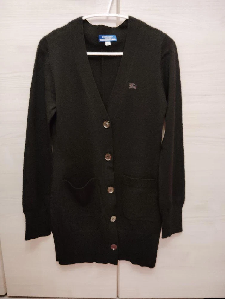 Burberry Blue Label Long Black Cardigan with Metal Buttons, New Key Features **BURBERRY LONDON BLUE LABEL Long Sleeve Cardigan** - **Brand:** BURBERRY LONDON BLUE LABEL - **Product Type:** Long Sleeve Cardigan - **Size:** 38 - **Color:** Black **Detailed Features:** - **Design:** Elegant and sophisticated, suitable for various occasions. Features long sleeves and front pockets. - **Material:** Made from soft fabric for comfort, perfect for all-day wear. - **Versatility:** Ideal for layering, transitions well from casual to formal settings. - **Buttons:** Metal buttons add a touch of refinement. - **Belt Loops:** Includes discreet belt loops; belt not included. **Condition:** - Gently used, washed after trying on, and stored carefully in a dark place. Please read the profile for further details. Specifications Brand No Brand Country Japan Product Description Item Title Burberry Blue Label Long Black Cardigan Metal Button Payment Supports managed payments Please pay within 5 days after auction is finished. About Us We are located in Japan. It's our pleasure to make you happy by proposing our recommend item. If you have any questions or request about items, please feel free to ask us. International Buyers - Please Note: -Import duties, taxes, and charges are not included in the item price or shipping charges. These charges are the buyer's responsibility. -Please check with your country's customs office to determine what these additional costs will be prior to bidding/buying. -These charges are normally collected by the delivering freight (shipping) company or when you pick the item up - do not confuse them for additional shipping charges. -We do not mark merchandise values below value or mark items as - gifts - The US and International government regulations prohibit such behavior. Thank you for your understanding.