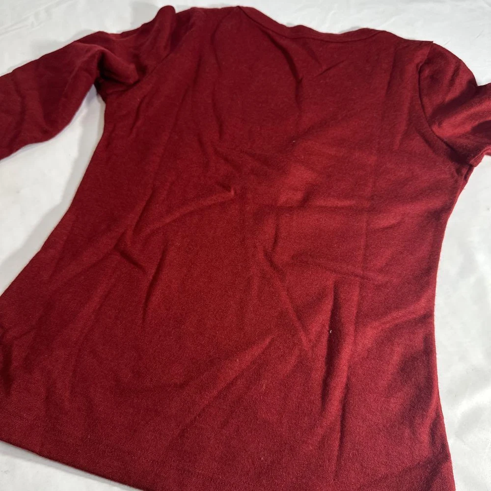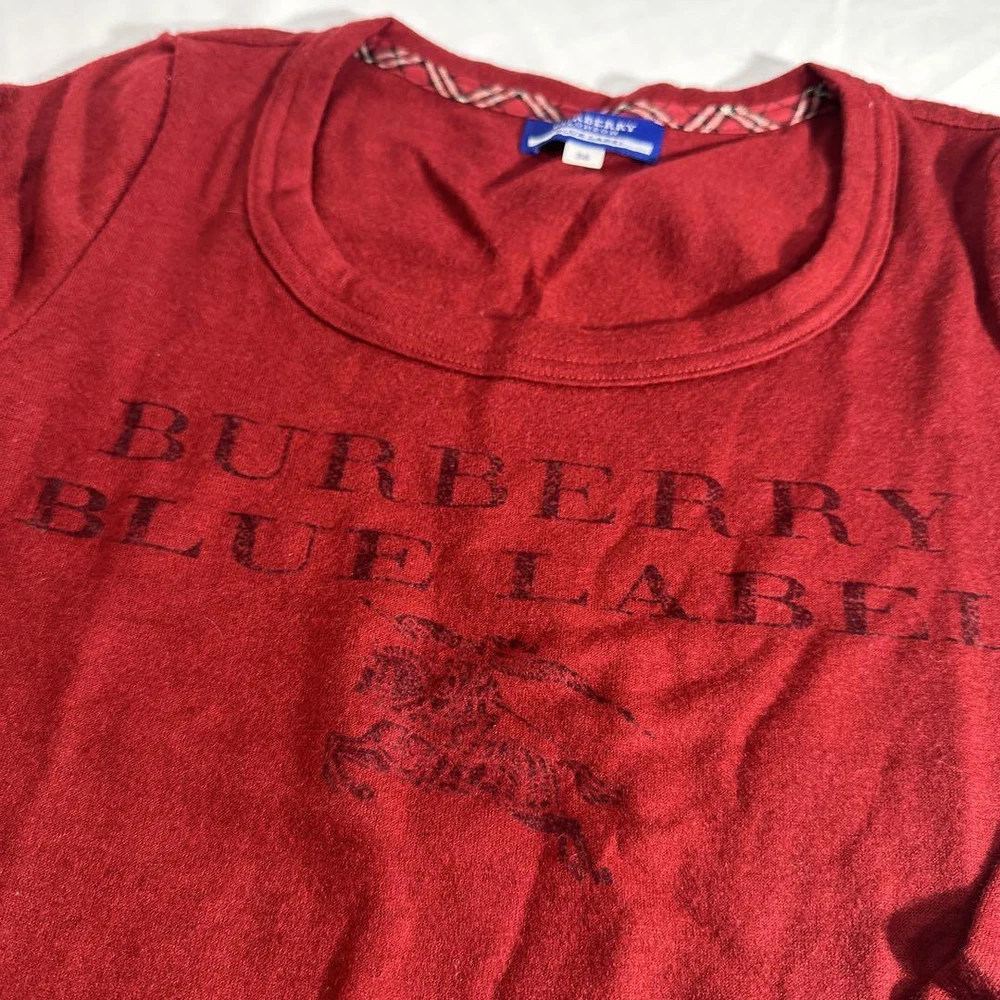 Burberry Blue Label Long Sleeve Wool Sweater T-Shirt Size 38 Excellent Condition Key Features **Burberry Blue Label Sweater** - **Brand Name:** Burberry Blue Label - **Product Type:** Long Sleeve Sweater - **Model:** Not specified - **Material:** 100% Wool - **Color:** Burgundy - **Size:** 38 - **Width:** Approximately 42 cm - **Length:** Approximately 56 cm - **Condition:** Gently used, stored in a closet for a while. Worn only a few times with no tears or pilling, in excellent condition. - **Purchase Location:** Isetan Shinjuku Store This stylish and cozy sweater is perfect for all seasons. Ideal for layering or wearing on its own, it combines luxury with comfort. Specifications Brand Burberry Blue Label Country Japan Product Description Item Title Burberry Blue Label Sweater Cut And Sewn Long T Wool 100 Payment Supports managed payments Please pay within 5 days after auction is finished. About Us We are located in Japan. It's our pleasure to make you happy by proposing our recommend item. If you have any questions or request about items, please feel free to ask us. International Buyers - Please Note: -Import duties, taxes, and charges are not included in the item price or shipping charges. These charges are the buyer's responsibility. -Please check with your country's customs office to determine what these additional costs will be prior to bidding/buying. -These charges are normally collected by the delivering freight (shipping) company or when you pick the item up - do not confuse them for additional shipping charges. -We do not mark merchandise values below value or mark items as - gifts - The US and International government regulations prohibit such behavior. Thank you for your understanding.