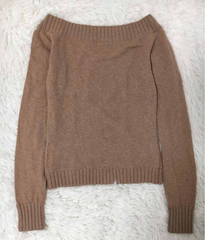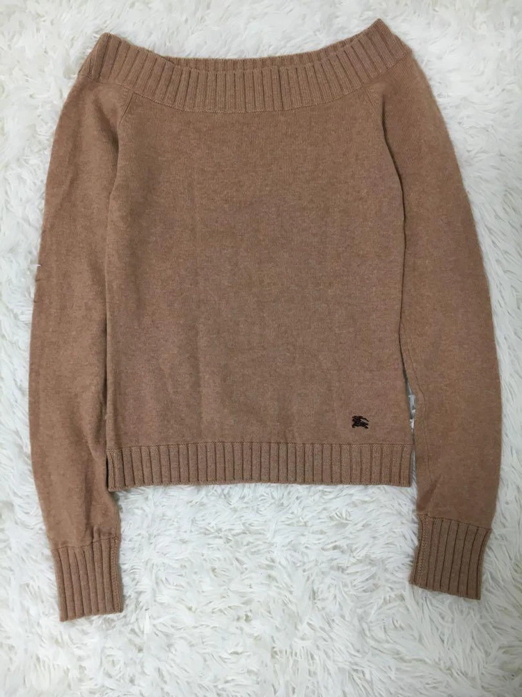 Burberry Blue Label Off Shoulder Knit Sweater Wool Cashmere Blend M Brown Key Features **Burberry Blue Label Off-Shoulder Knit Sweater** - **Brand**: Burberry Blue Label - **Product Type**: Off-Shoulder Knit Sweater - **Material**: Cashmere blend for a soft texture - **Color**: Elegant brown-beige, versatile for pairing with other outfits - **Size**: Registered as size 38 (M) - **Width**: 41 cm - **Length**: 52 cm - **Features**: - Embroidered iconic Burberry horse logo - **Condition**: - Minor stain on the right sleeve, barely noticeable - Overall, shows minimal signs of wear and is in excellent condition for continued use Please refer to the images for further details. Specifications Brand Burberry Blue Label Country Japan Product Description Item Title Burberry Blue Label Off Shoulder Knit Wool Cashmere Blend Size M Payment Supports managed payments Please pay within 5 days after auction is finished. About Us We are located in Japan. It's our pleasure to make you happy by proposing our recommend item. If you have any questions or request about items, please feel free to ask us. International Buyers - Please Note: -Import duties, taxes, and charges are not included in the item price or shipping charges. These charges are the buyer's responsibility. -Please check with your country's customs office to determine what these additional costs will be prior to bidding/buying. -These charges are normally collected by the delivering freight (shipping) company or when you pick the item up - do not confuse them for additional shipping charges. -We do not mark merchandise values below value or mark items as - gifts - The US and International government regulations prohibit such behavior. Thank you for your understanding.