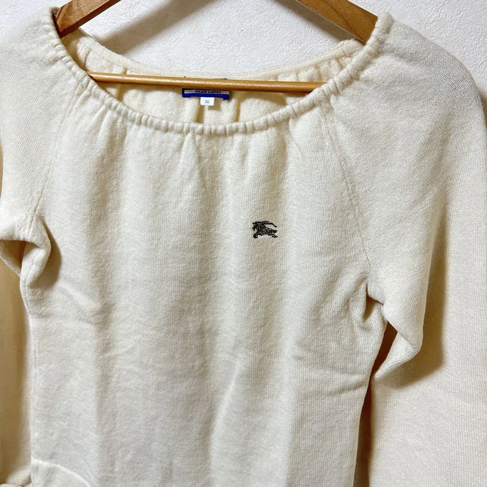 Burberry Blue Label Off White Knit Sweater Horsemark Size 38 Used Key Features **BURBERRY BLUE LABEL Knit Sweater** - **Brand:** Burberry Blue Label - **Product Type:** Knit Sweater - **Model:** Horse Mark Design - **Color:** Off-White - **Size:** Tag size 38 **Detailed Features:** - **Condition:** Gently used, worn only twice; overall good condition. - **Notable Flaw:** Small stain near the ribbon at the hem (see photo 7). - **Care:** Professionally cleaned. - **Design:** Crew neck, suitable for autumn and winter wear. - **Usage:** Minimal signs of wear, please consider this is a pre-owned item. Please review the photos for detailed design elements. Thank you for understanding the nature of used items. Specifications Brand Burberry Blue Label Country Japan Product Description Item Title Off White Burberry Blue Label Knit Payment Supports managed payments Please pay within 5 days after auction is finished. About Us We are located in Japan. It's our pleasure to make you happy by proposing our recommend item. If you have any questions or request about items, please feel free to ask us. International Buyers - Please Note: -Import duties, taxes, and charges are not included in the item price or shipping charges. These charges are the buyer's responsibility. -Please check with your country's customs office to determine what these additional costs will be prior to bidding/buying. -These charges are normally collected by the delivering freight (shipping) company or when you pick the item up - do not confuse them for additional shipping charges. -We do not mark merchandise values below value or mark items as - gifts - The US and International government regulations prohibit such behavior. Thank you for your understanding.