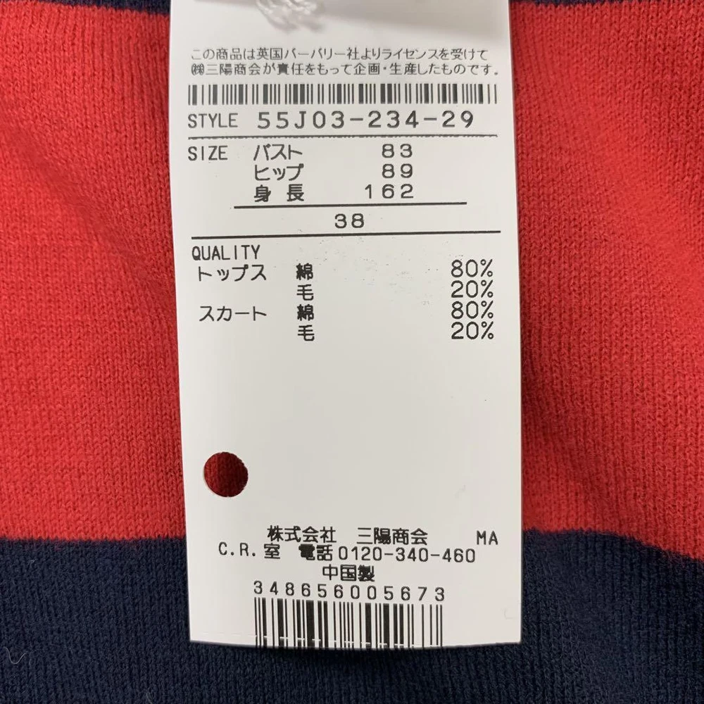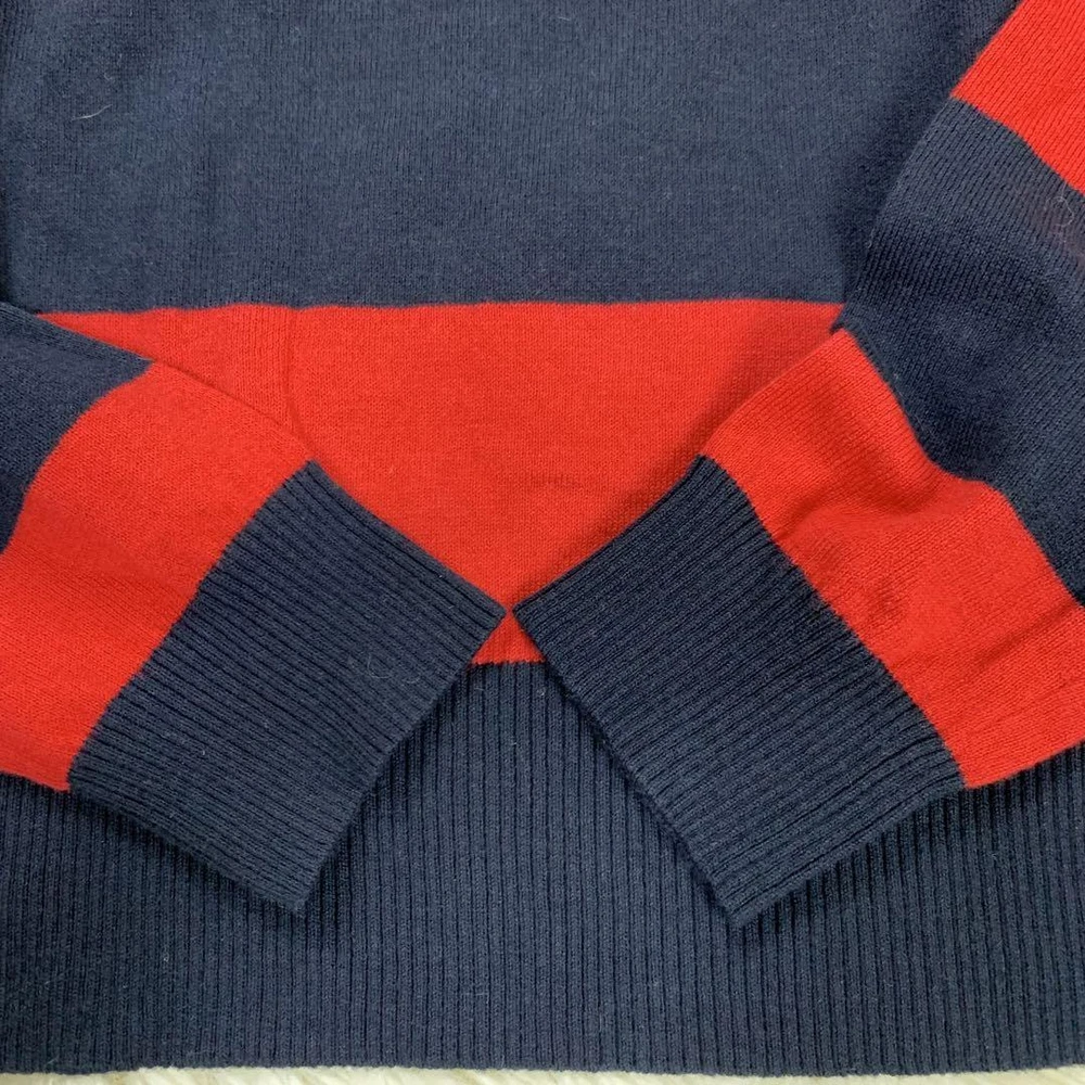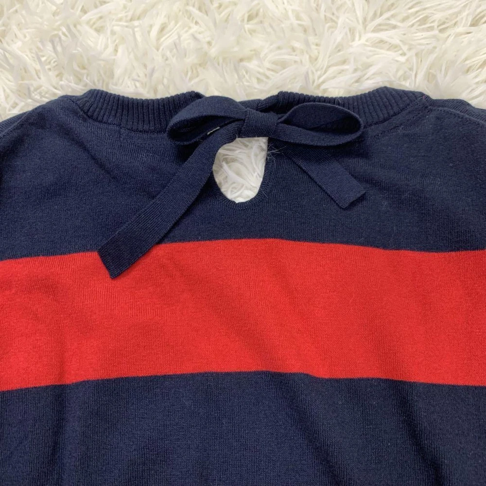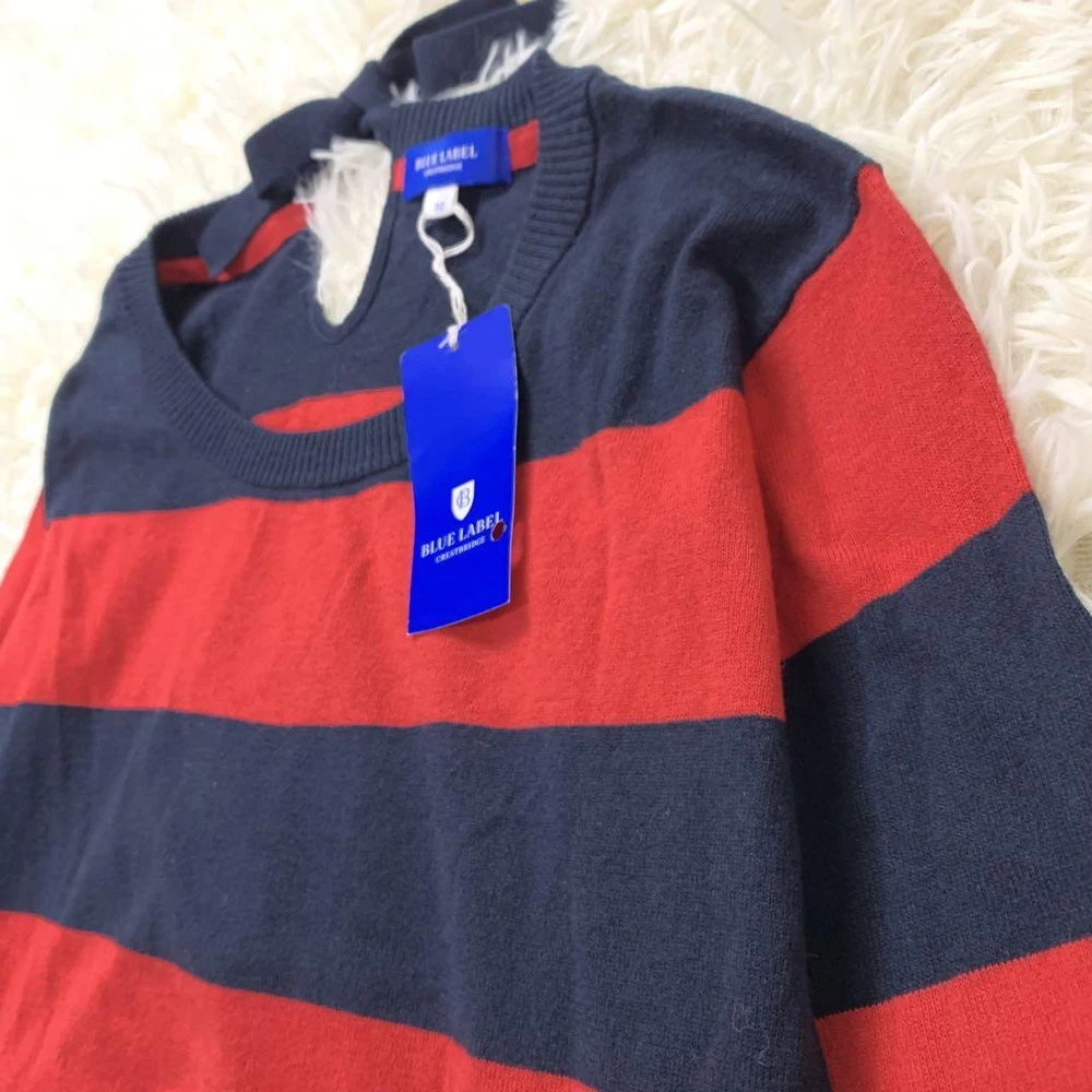Burberry Blue Label Red Navy Striped Long Sleeve Sweater Size M New Tags Key Features **BURBERRY BLUE LABEL Striped Sweater** - **Brand:** Burberry Blue Label - **Product Type:** Long Sleeve Sweater - **Model:** Striped Design - **Price:** ¥15,400 (tax included) **Features:** - **Color:** Red and Navy Stripes - **Material:** 80% Cotton, 20% Wool - **Size:** M (38) - **Measurements:** - Length: Approx. 51 cm - Width: Approx. 43 cm - Shoulder Width: Approx. 42 cm - Sleeve Length: Approx. 53 cm - **Design:** Stylish and sophisticated with a back ribbon accent that enhances femininity. - **Comfort:** Made from soft material for all-day wear. **Condition:** - Gently used with minor folding wrinkles due to home storage. Please consider this before purchasing. Perfect for autumn, winter, and spring seasons. Specifications Brand Burberry Blue Label Country Japan Product Description Item Title With Tag Burberry Blue Label Striped Long Sleeve Sweater Red And Navy M Payment Supports managed payments Please pay within 5 days after auction is finished. About Us We are located in Japan. It's our pleasure to make you happy by proposing our recommend item. If you have any questions or request about items, please feel free to ask us. International Buyers - Please Note: -Import duties, taxes, and charges are not included in the item price or shipping charges. These charges are the buyer's responsibility. -Please check with your country's customs office to determine what these additional costs will be prior to bidding/buying. -These charges are normally collected by the delivering freight (shipping) company or when you pick the item up - do not confuse them for additional shipping charges. -We do not mark merchandise values below value or mark items as - gifts - The US and International government regulations prohibit such behavior. Thank you for your understanding.