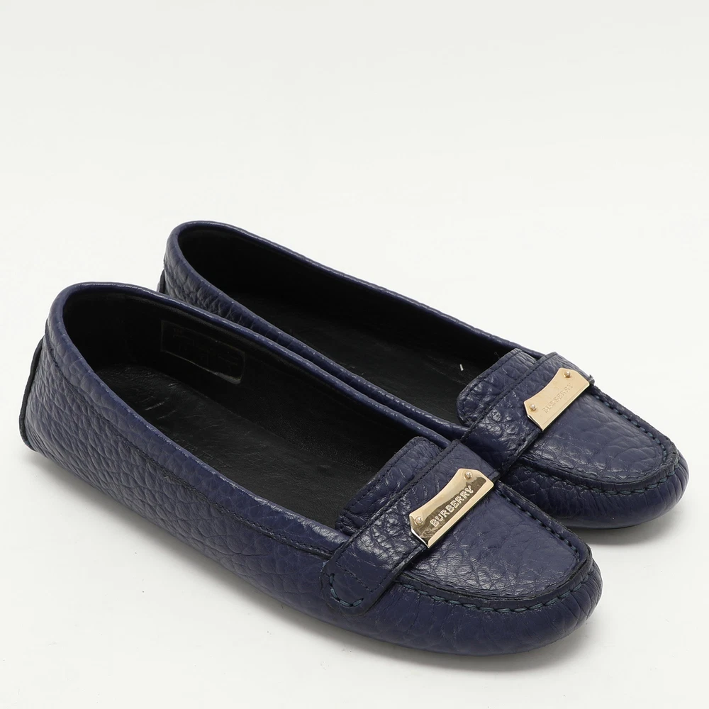 These loafers from Burberry are not only high in appeal but also very skilfully made. The leather loafers have a comfortable shape and will complement any look.Certified by The Luxury Closet - This item has gone through a detailed authentication process overseen by our experts. We offer a lifetime guarantee of authenticity on all our items. Import duties, taxes and charges are not included in the item price. These charges are the buyers responsibility. Please check with your country’s customs office to determine what these additional cost will be prior to buying. Our eBay Store About Us Contact Us Add to Favorite Sellers Burberry Blue Leather Embellished Loafers Size 37 $358.6 These loafers from Burberry are not only high in appeal but also very skilfully made. The leather loafers have a comfortable shape and will complement any look. Product Details Brand Color Blue Dimensions Material Leather Size 37 Outsole Width 8 cm Outsole Length 26 cm Heel Height Includes The Luxury Closet Packaging Certified by The Luxury Closet This item has gone through a detailed authentication process overseen by our experts. We offer a lifetime guarantee of authenticity on all our items. How We Check The in-house team of experts at The Luxury Closet is highly trained to verify the authenticity and the condition of the luxury products. They ensure that only 100% authentic items are put on sale.The evaluation process is unique with its own mix of assessment criteria and differs according to the category. Each item is evaluated based on the following combination of hallmarks, hardware, stitching, symmetry, material, craftsmanship, stamping, codes, hologram stickers, and packaging. Our authenticators also check if the items have been modified or amended (e.g., aftermarket diamonds, replaced batteries, repaired bags, etc.) International Buyers Import duties, taxes and charges are not included in the item price. These charges are the buyers responsibility. Please check with your country’s customs office to determine what these additional cost will be prior to buying.