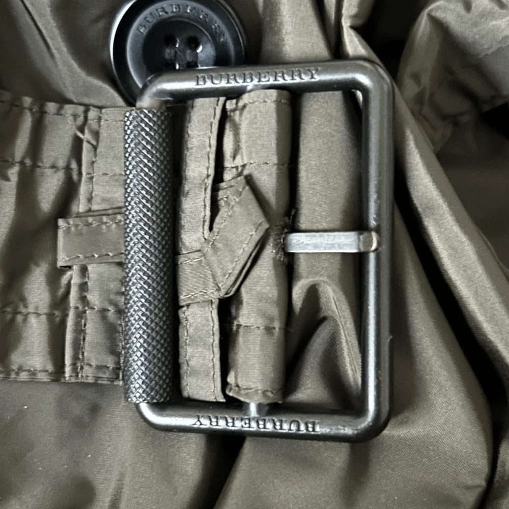 Burberry Brit Balmoral Packable Trench in Army Green. Excellent used condition with no flaws. Does not come with removable hood. Size 4 US. Chest - 18” Length - 34” Double breasted buttons Notch collar Button tab cuffs on sleeves Front button flap pockets Back flap and vent Partially lined Water Resistant SKU 111124