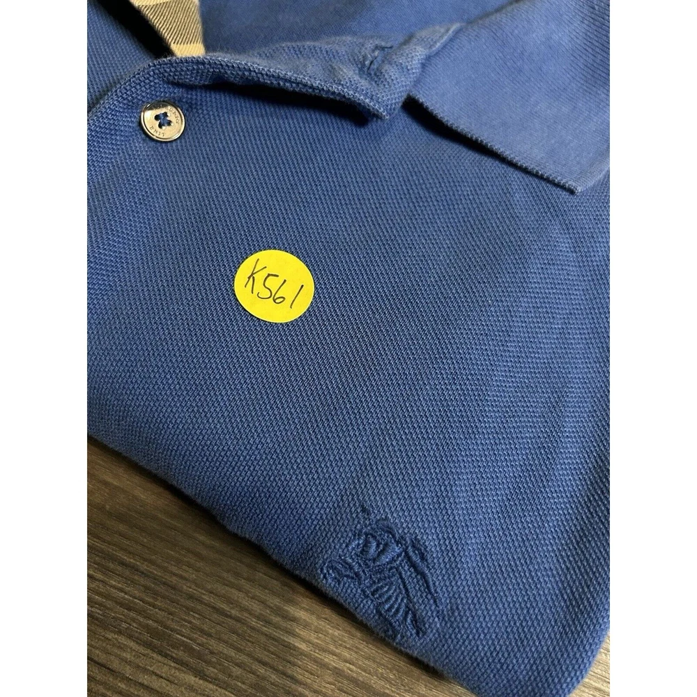 Burberry Brit Mens XL Golf Pique Polo Blue Equestrian Logo Nova Check Plaid Trim. Condition is Pre-owned. Shipped with USPS Ground Advantage.