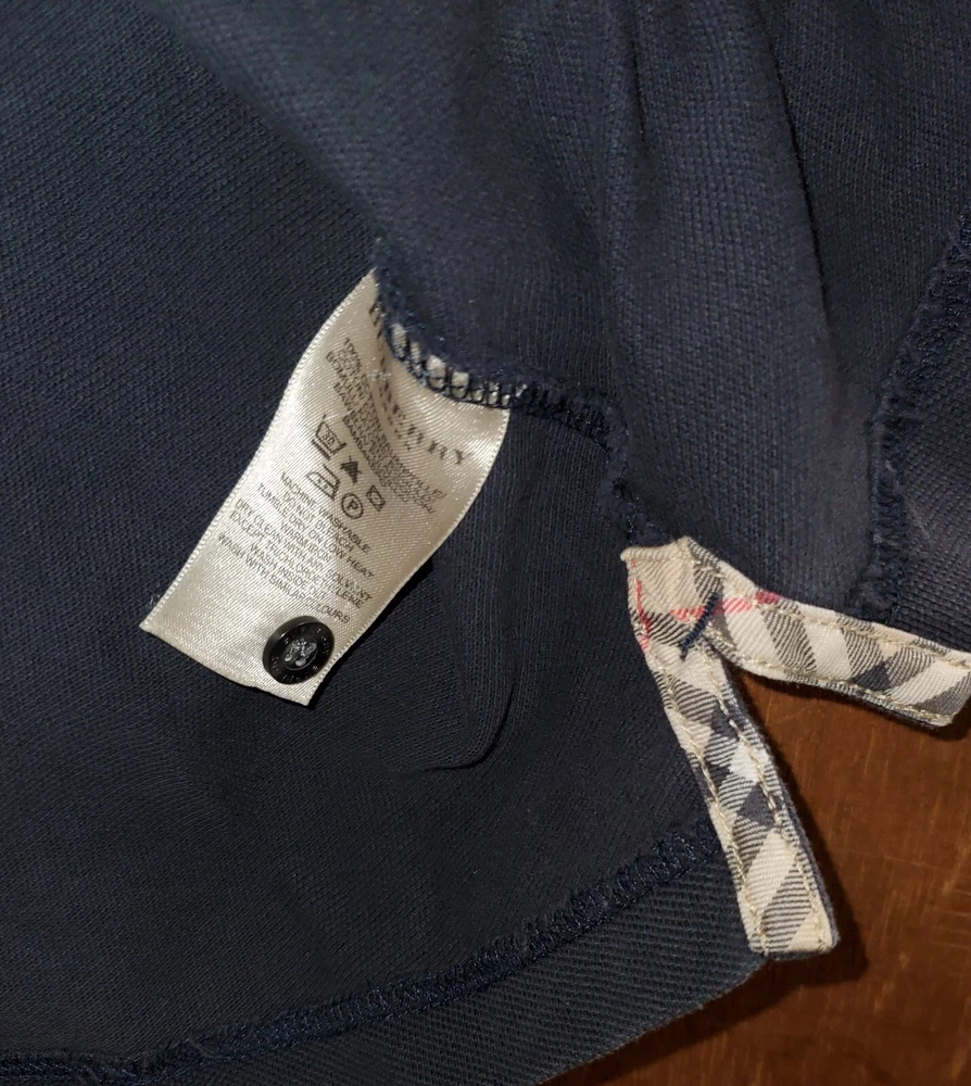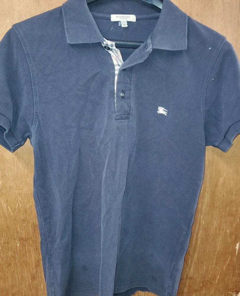 Burberry Brit Nova Check Navy Cotton Short Sleeve Polo Shirt Men's Size Small
