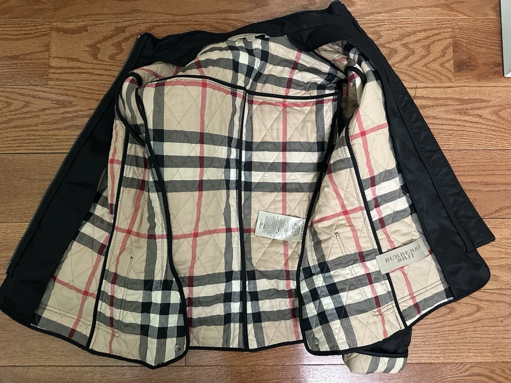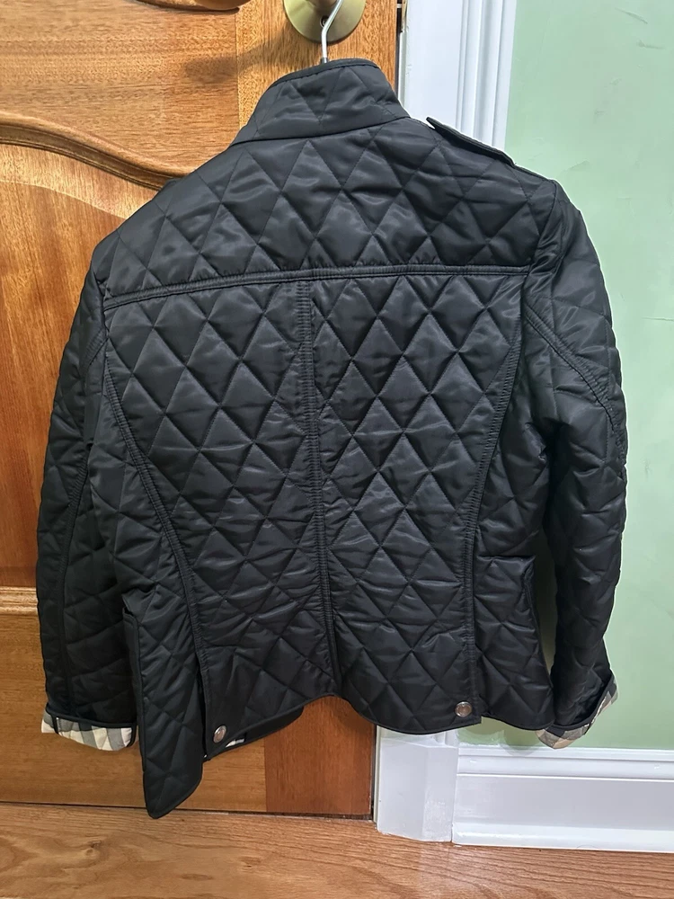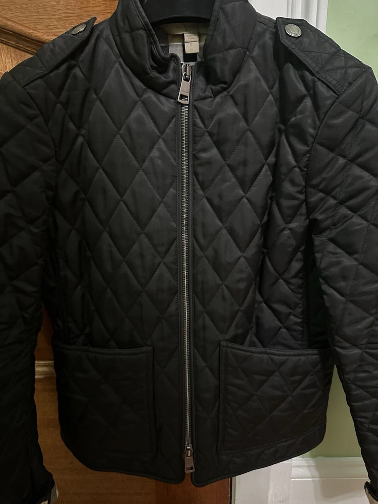 Department: Women Pattern: Solid Color: Black Season: Fall, Spring, Winter Size Type: Regular Closure: Snap Style: Quilted Occasion: Casual, Travel Size: S Sleeve Length: Long Sleeve Model: Burberry Brit Accents: Quilted Type: Jacket Outer Shell Material: Polyester Brand: Burberry Brit