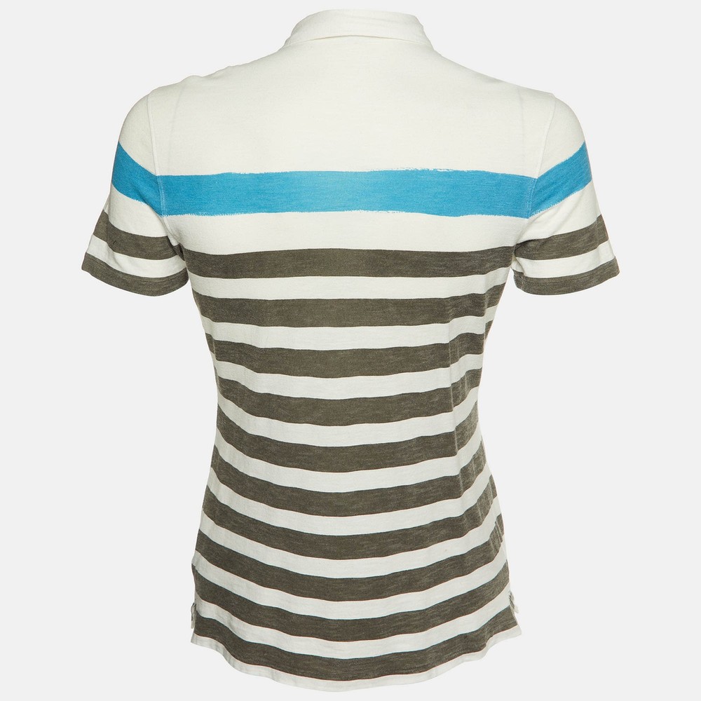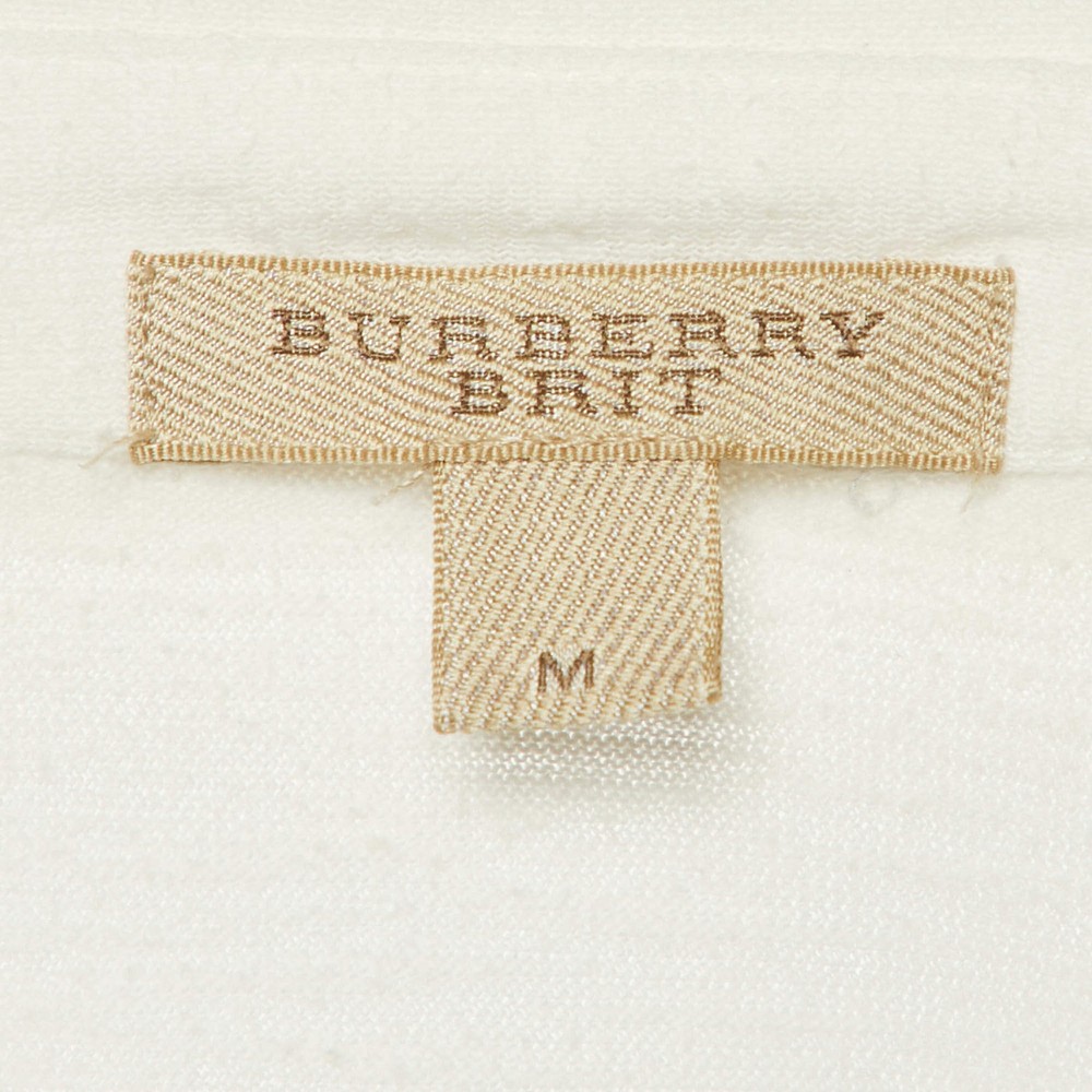 Our eBay Store About Us Contact Us Add to Favorite Sellers Burberry Brit White Striped Cotton Polo TShirt M Experience timeless elegance with this Burberry Brit polo in a crisp white hue. Crafted from pure cotton, it offers unmatched comfort and breathability, making it perfect for any casual outing. The classic striped design and buttoned closure add a touch of sophistication, effortlessly enhancing your wardrobe. Product Details Brand Burberry Brit Color White Size MEDIUM Includes The Luxury Closet Packaging Certified by The Luxury Closet This item has gone through a detailed authentication process overseen by our experts. We offer a lifetime guarantee of authenticity on all our items. How We Check The in-house team of experts at The Luxury Closet is highly trained to verify the authenticity and the condition of the luxury products. They ensure that only 100% authentic items are put on sale.The evaluation process is unique with its own mix of assessment criteria and differs according to the category. Each item is evaluated based on the following combination of hallmarks, hardware, stitching, symmetry, material, craftsmanship, stamping, codes, hologram stickers, and packaging. Our authenticators also check if the items have been modified or amended (e.g., aftermarket diamonds, replaced batteries, repaired bags, etc.) International Buyers Import duties, taxes and charges are not included in the item price. These charges are the buyers responsibility. Please check with your country’s customs office to determine what these additional cost will be prior to buying.