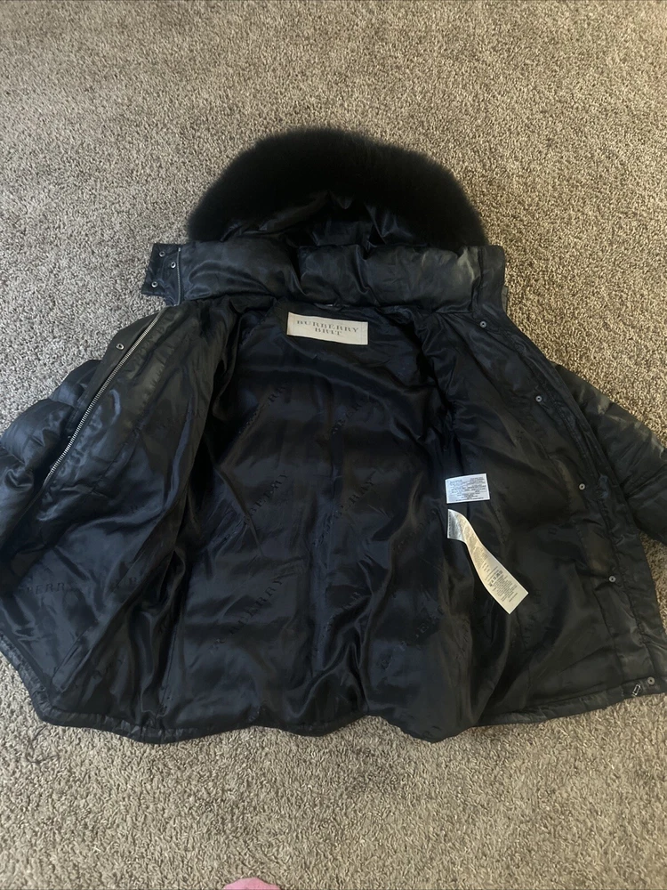 Burberry Brit puffer belted jacket with fur hood real fur