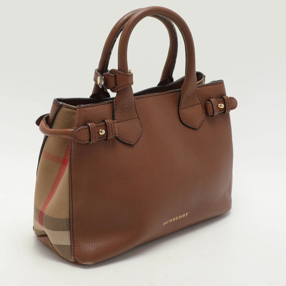 This alluring tote bag for women has been designed to assist you on any day. Convenient to carry and fashionably designed, the tote is cut with skill and sewn into a great shape. It is well equipped to be a reliable accessory.Certified by The Luxury Closet - This item has gone through a detailed authentication process overseen by our experts. We offer a lifetime guarantee of authenticity on all our items. Import duties, taxes and charges are not included in the item price. These charges are the buyers responsibility. Please check with your country’s customs office to determine what these additional cost will be prior to buying. Our eBay Store About Us Contact Us Add to Favorite Sellers Burberry Brown/Beige House Check Fabric and Leather Small Banner Tote $602.8 This alluring tote bag for women has been designed to assist you on any day. Convenient to carry and fashionably designed, the tote is cut with skill and sewn into a great shape. It is well equipped to be a reliable accessory. Product Details Brand Color Brown Dimensions Height: 19 cm, Width: 12 cm, Length: 27 cm (bottom) Material Fabric, Leather Size Medium Outsole Width Outsole Length Heel Height Includes The Luxury Closet Packaging, Detachable Strap Certified by The Luxury Closet This item has gone through a detailed authentication process overseen by our experts. We offer a lifetime guarantee of authenticity on all our items. How We Check The in-house team of experts at The Luxury Closet is highly trained to verify the authenticity and the condition of the luxury products. They ensure that only 100% authentic items are put on sale.The evaluation process is unique with its own mix of assessment criteria and differs according to the category. Each item is evaluated based on the following combination of hallmarks, hardware, stitching, symmetry, material, craftsmanship, stamping, codes, hologram stickers, and packaging. Our authenticators also check if the items have been modified or amended (e.g., aftermarket diamonds, replaced batteries, repaired bags, etc.) International Buyers Import duties, taxes and charges are not included in the item price. These charges are the buyers responsibility. Please check with your country’s customs office to determine what these additional cost will be prior to buying.