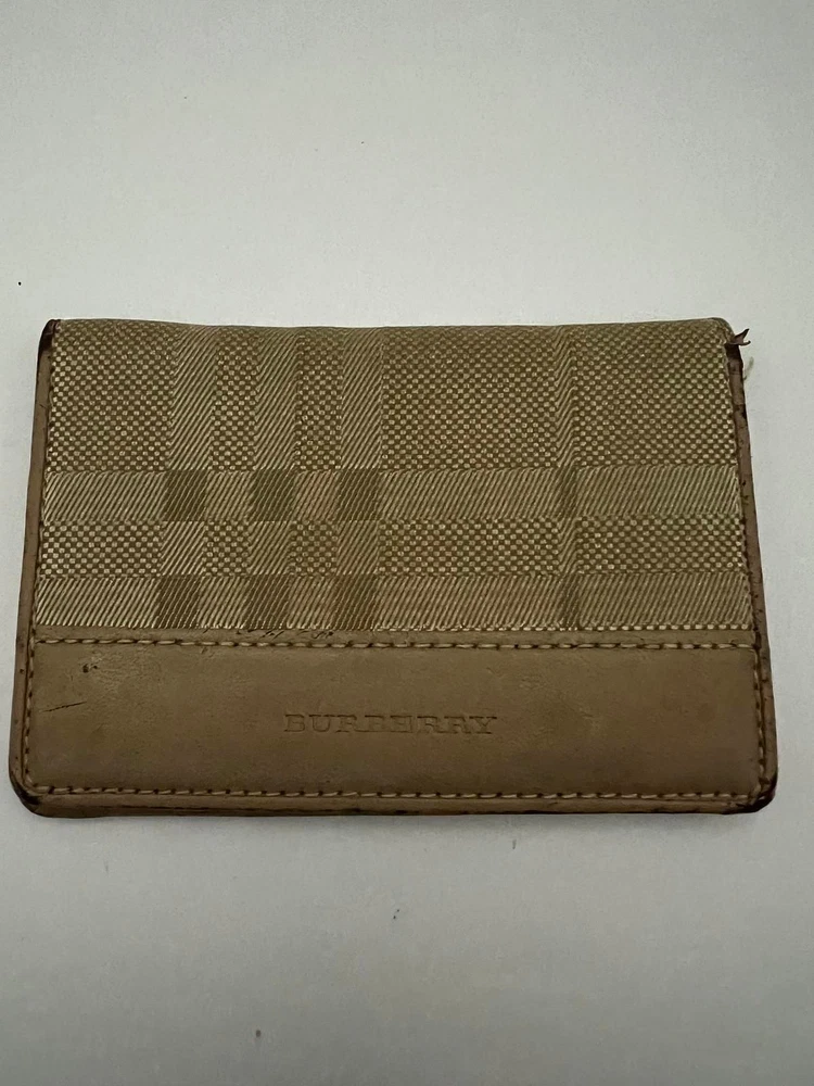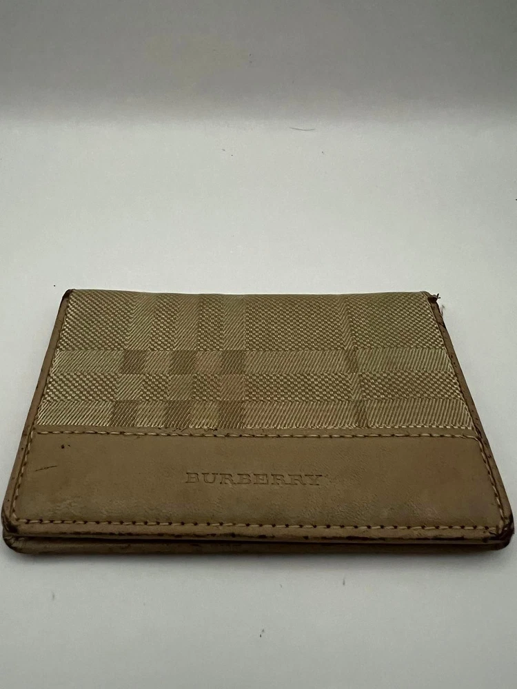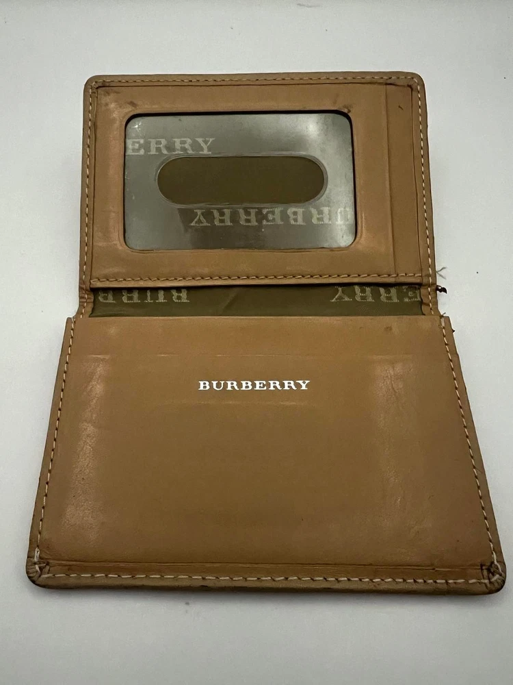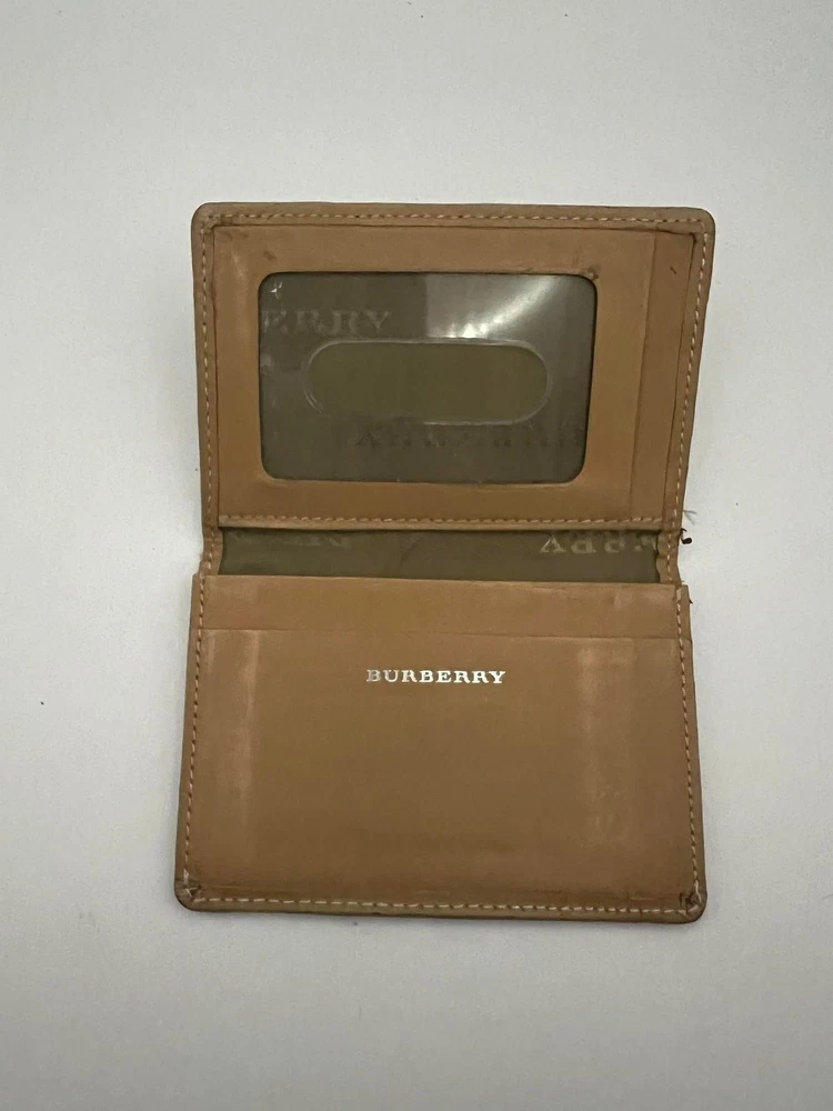 Brand: Burberry gtin13: Does not apply Fabric Type: Does not apply UPC: Does not apply Size: Does not apply Pattern: Does not apply Style: Does not apply Features: Does not apply Theme: Does not apply Type: Card Wallet Character: Does not apply Department: Women Accents: Does not apply Material: Leather Color: Beige