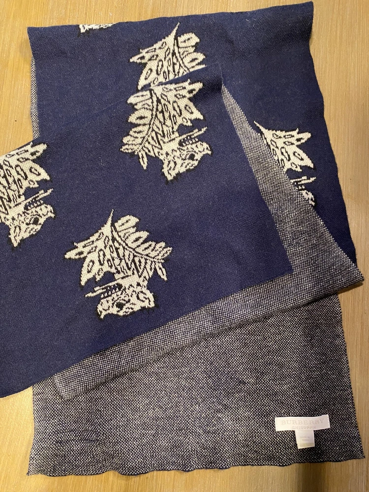 Accents: Logo Country/Region of Manufacture: China Color: Blue Garment Care: Dry Clean Only Department: Women Item Width: 12 Brand: Burberry Character: Blue Season: Winter Features: Neck Warmer Type: Scarf Vintage: Yes Style: Rectangle Scarf Theme: Logo Handmade: No Material: Cashmere, burberry Pattern: Animal Print