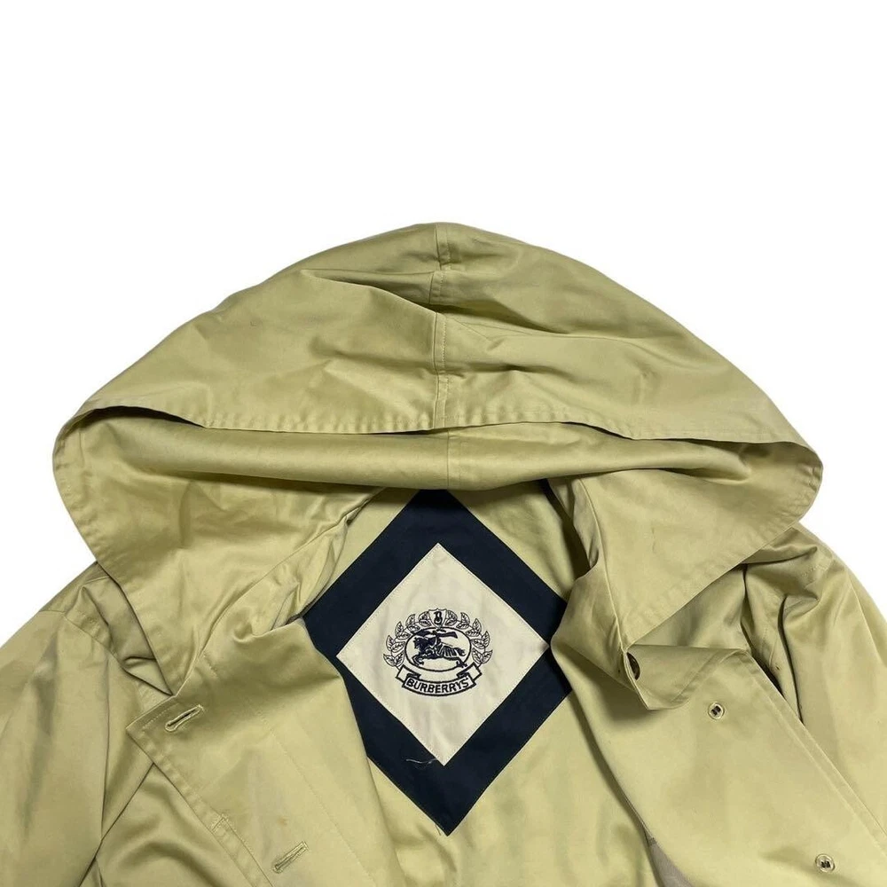 Fabric Type: NA Product Line: NA Vintage: No Pattern: Check Warmth Weight: NA Fit: Slim Model: NA Features: Collared, Hooded Lining Material: NA Outer Shell Material: Cotton UPC: Does not apply Garment Care: NA Closure: Button Type: Jacket Theme: NA Accents: Button, Logo Style: Trench Coat MPN: NA gtin13: Does not apply Department: Men Performance/Activity: Walking Size Type: Regular Insulation Material: NA Color: Khaki Occasion: Business, Casual, Travel Brand: Burberry Handmade: No Season: Fall, Spring, Winter Collar Style: NA Personalize: No Chest Size: 47.2 in Jacket/Coat Length: 33.4 in Size: 9