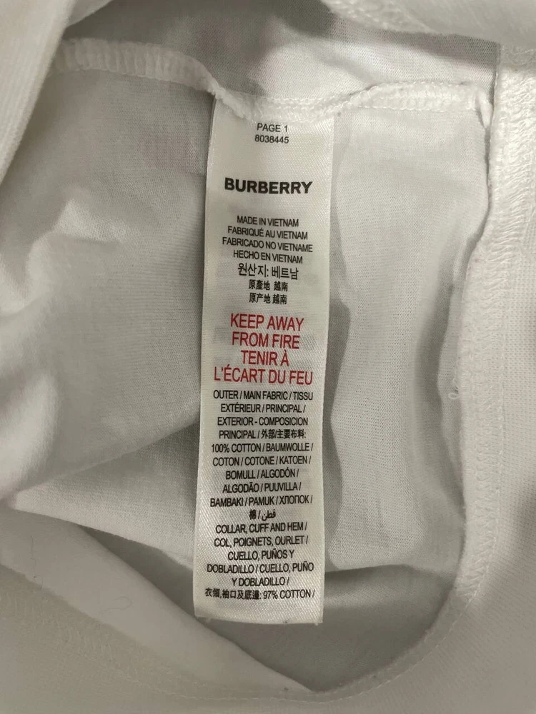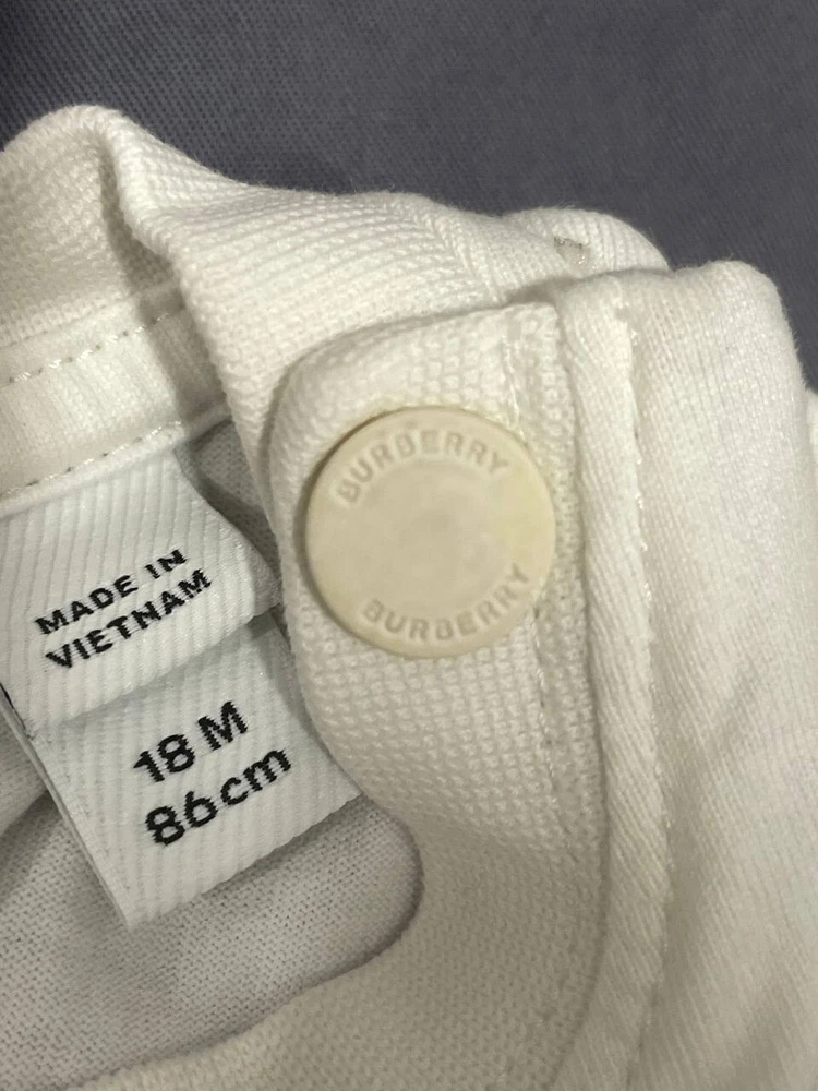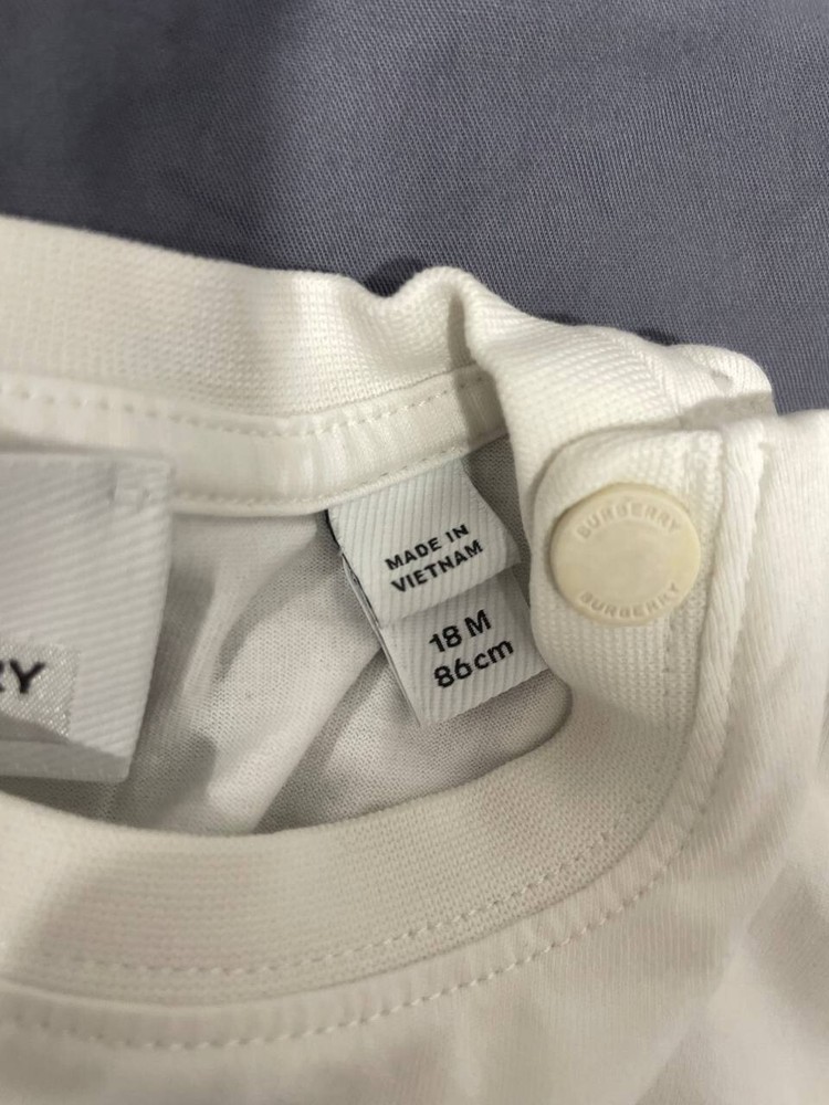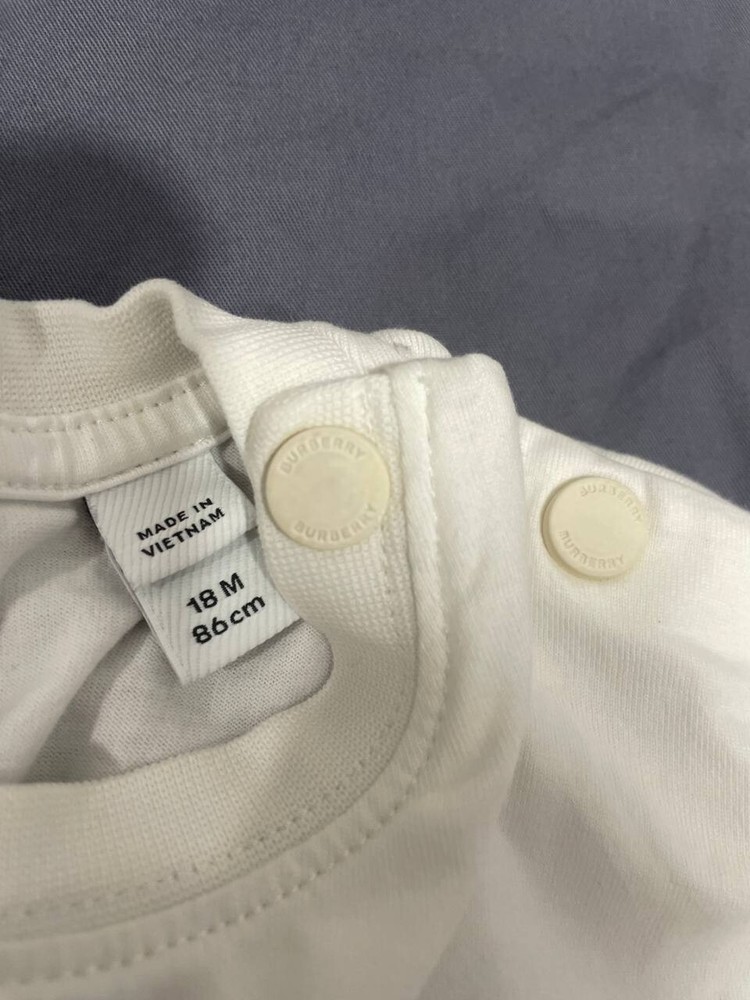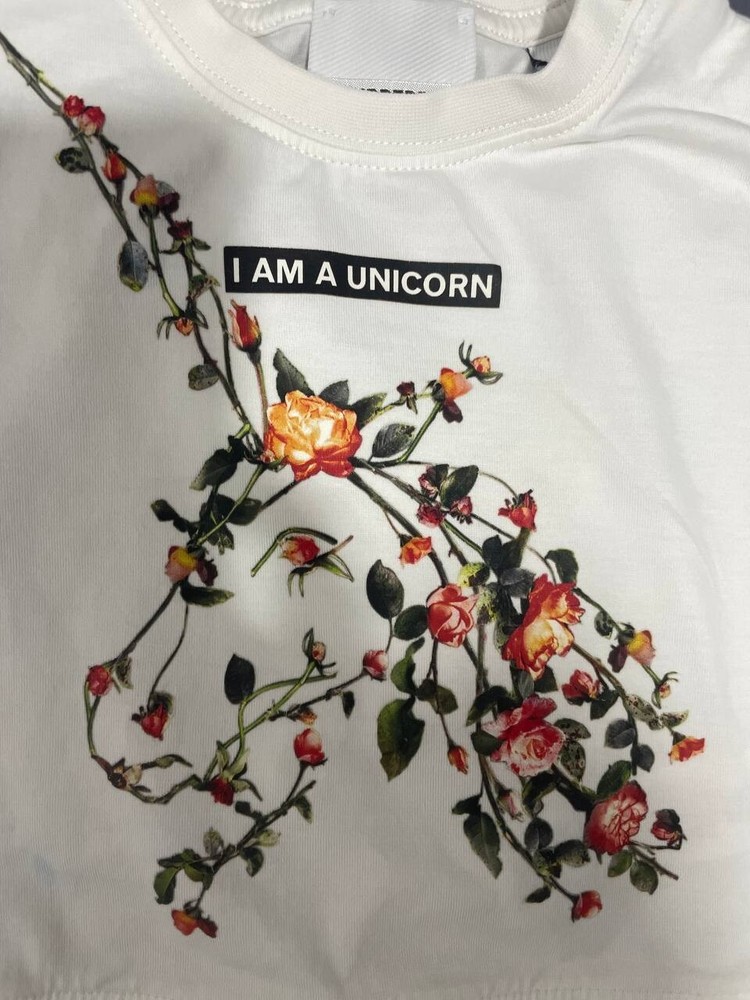 The Burberry Girls' Pia Floral Unicorn White Top in size 18M is a stylish and comfortable t-shirt made of 100% cotton. Featuring a charming floral pattern and a cute unicorn theme, this short-sleeve top with a crew neck and button closure is perfect for casual or travel occasions during the summer, fall, or spring seasons. The regular fit ensures a comfortable and easy-to-wear garment for young girls, while the renowned Burberry brand adds a touch of luxury to this basic yet trendy piece. Made in Vietnam, this machine washable top is a must-have for any fashion-forward child.