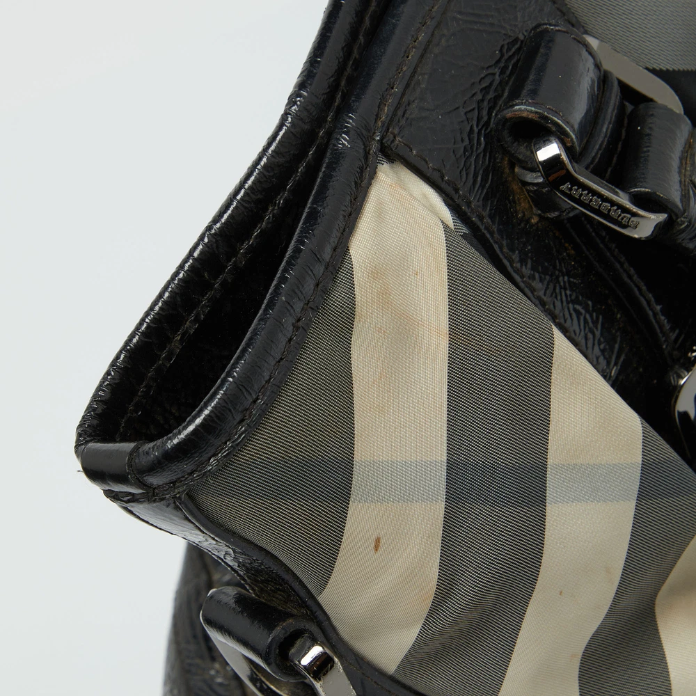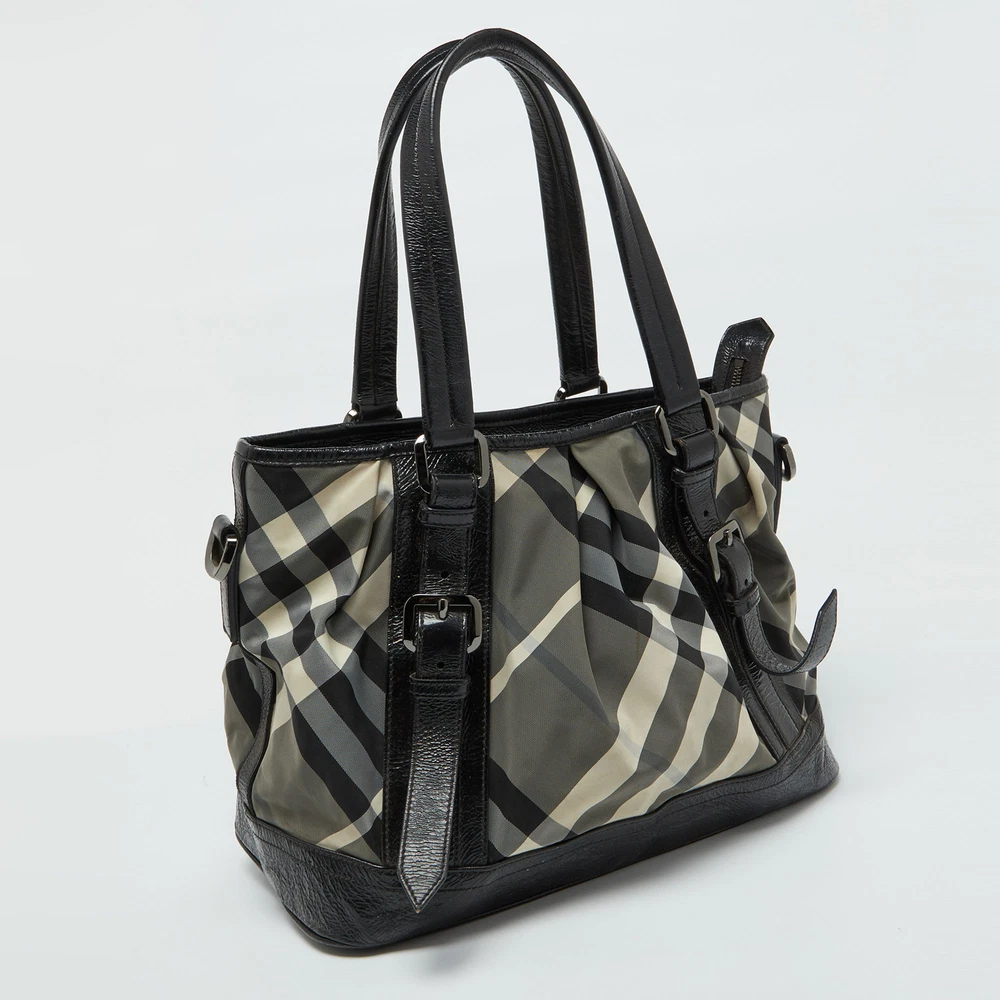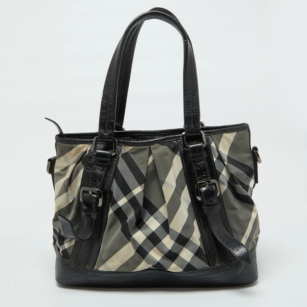 Know to create stylish, sophisticated, and timeless designs, this is a brand worth investing in. The bags that come from this labels atelier are exquisite. This tote bag is no different. It has been made from quality materials and comes with an interior that is equipped with enough space for all essentials.Certified by The Luxury Closet - This item has gone through a detailed authentication process overseen by our experts. We offer a lifetime guarantee of authenticity on all our items. Import duties, taxes and charges are not included in the item price. These charges are the buyers responsibility. Please check with your country’s customs office to determine what these additional cost will be prior to buying. Our eBay Store About Us Contact Us Add to Favorite Sellers Burberry Grey/Black Beat Check Nylon and Patent Leather Lowry Tote $320.1 Know to create stylish, sophisticated, and timeless designs, this is a brand worth investing in. The bags that come from this labels atelier are exquisite. This tote bag is no different. It has been made from quality materials and comes with an interior that is equipped with enough space for all essentials. Product Details Brand Color Grey Dimensions Height: 28 cm, Width: 18.5 cm, Length: 36 cm Material Patent Leather Size Outsole Width Outsole Length Heel Height Includes The Luxury Closet Packaging Certified by The Luxury Closet This item has gone through a detailed authentication process overseen by our experts. We offer a lifetime guarantee of authenticity on all our items. How We Check The in-house team of experts at The Luxury Closet is highly trained to verify the authenticity and the condition of the luxury products. They ensure that only 100% authentic items are put on sale.The evaluation process is unique with its own mix of assessment criteria and differs according to the category. Each item is evaluated based on the following combination of hallmarks, hardware, stitching, symmetry, material, craftsmanship, stamping, codes, hologram stickers, and packaging. Our authenticators also check if the items have been modified or amended (e.g., aftermarket diamonds, replaced batteries, repaired bags, etc.) International Buyers Import duties, taxes and charges are not included in the item price. These charges are the buyers responsibility. Please check with your country’s customs office to determine what these additional cost will be prior to buying.