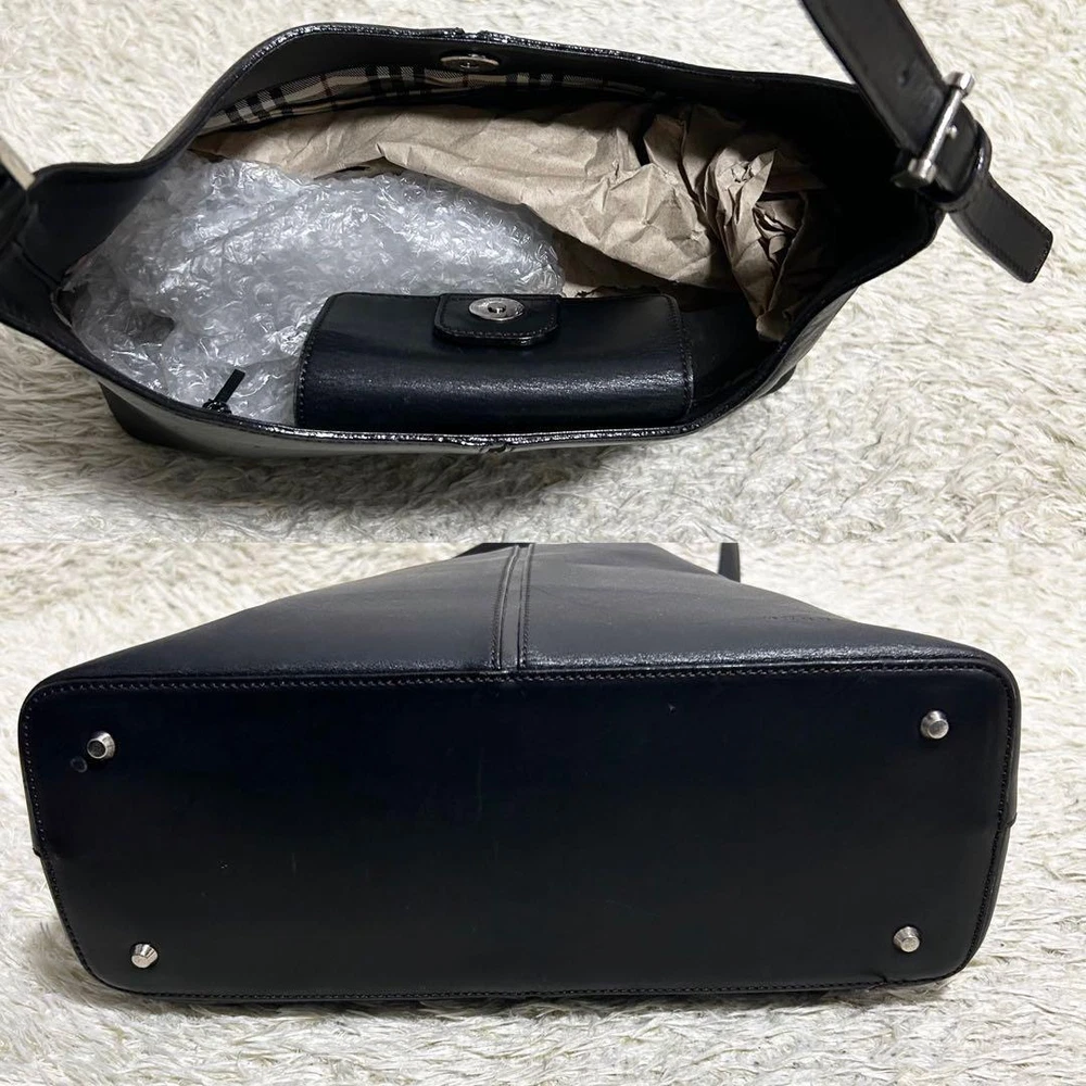Burberry Handbag One Shoulder Nova Check Black Logo Embossed