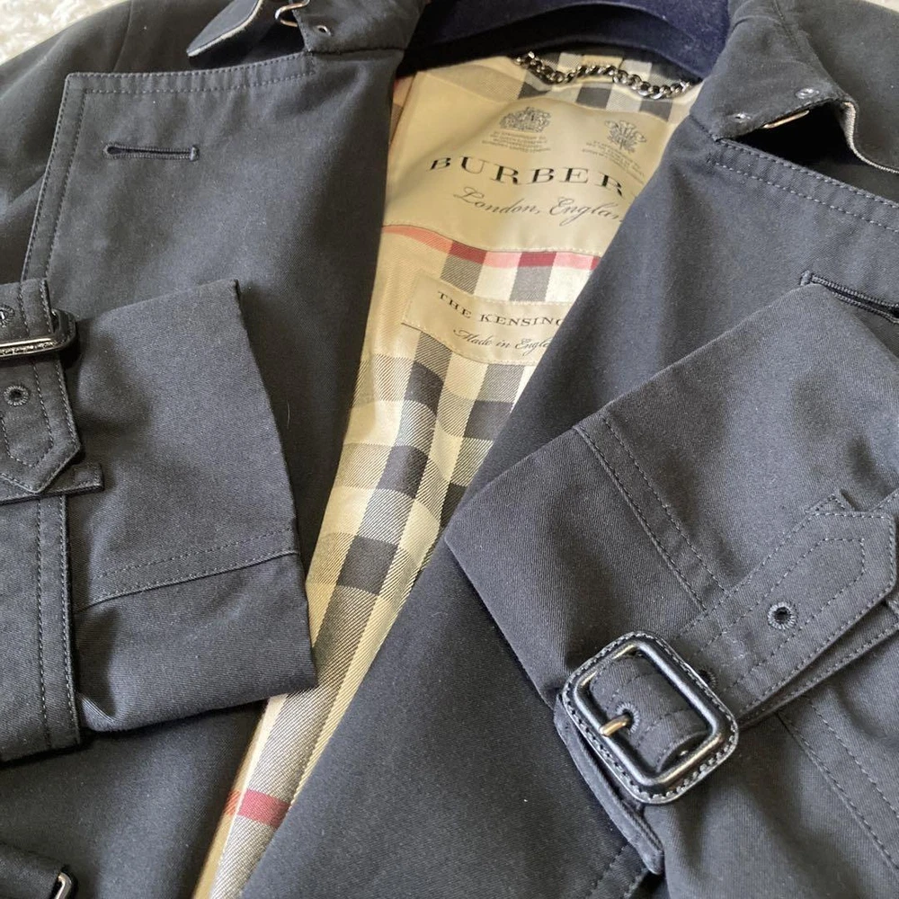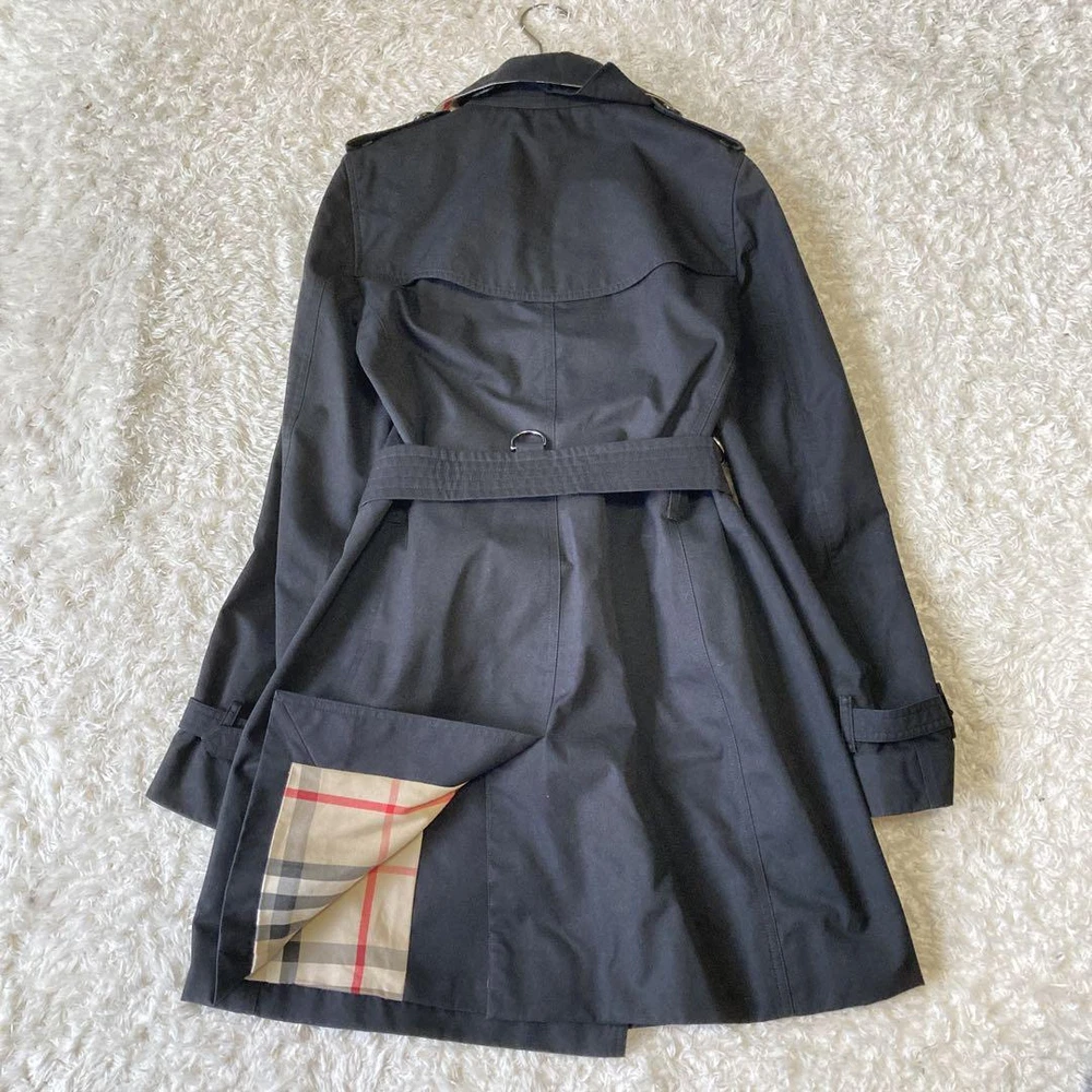 Burberry Kensington Trench Coat Black Burberry Check Size UK 6 US 4 38 Excellent Description **Product Details** - **Item Name**: Burberry London Kensington Trench Coat - **Material**: Not specified - **Color**: Black - **Size**: 38 (M Equivalent) - Shoulder Width: Approx. 39 cm (15.4 inches) - Chest Width: Approx. 45 cm (17.7 inches) - Sleeve Length: Approx. 61 cm (24 inches) - Length: Approx. 85 cm (33.5 inches) **Condition**: - Excellent with minimal signs of wear. - Slight discoloration on the collar, not very noticeable. **Features**: - Includes belt, spare buttons, and tag. - Timeless Kensington model, a slightly slim fit suitable for layering. **Accessories**: Belt, spare buttons, and tag included. **Notes**: A high-end Burberry trench coat in beautiful condition, perfect for formal or casual wear. All of Items Will be Shipped From Japan. Please check with the image. About the condition Damages such as stains, scuffs, and scratches are listed only if they are noticeable. Please understand that this is a used item, so there may be some inconspicuous scuffs or signs of use even if they are not listed. Please note that there may be unnoticeable scuffs and scratches on the item even if they are not listed. Please check the images for details of the condition. Note: This is a used item. We have tried to describe the condition of the item with detailed pictures and text as much as possible, but please understand that there may be some things that we have overlooked because it is a used item. Please note that measurements are taken by our company, so please understand that there may be some errors. If there is no special description about the accessories, only this item will be included. Colors may look different from the actual item depending on your monitor and shooting environment. Payment Please pay within 7 days of first purchase. ebay payments We can not separate invoice. Please understand. Shipping&Handling ■Speedy Shipping Shipped by DHL, FedEx, or Japan Post with tracking number. *If your location is designated as remote, additional shipping charges may apply. (Some areas such as Australia, Canada, Chile, and remote areas of the U.S.) I will pack it carefully. ■Economy Shipping (Japan Post) Economy Airmail 15-40 days without tracking Additional shipping fees may apply for countries/areas where delivery by Japan Post is not available. Handling Time Please check the categories of Shipping and payments. International Buyers - Please Note: Import duties, taxes, and charges are not included in the item price or shipping cost. These charges are the buyer's responsibility. Please check with your country's customs office to determine what these additional costs will be prior to bidding or buying. If you have any questions about products, shipping, etc., please do not hesitate to contact us by message. Thank you for your understanding.