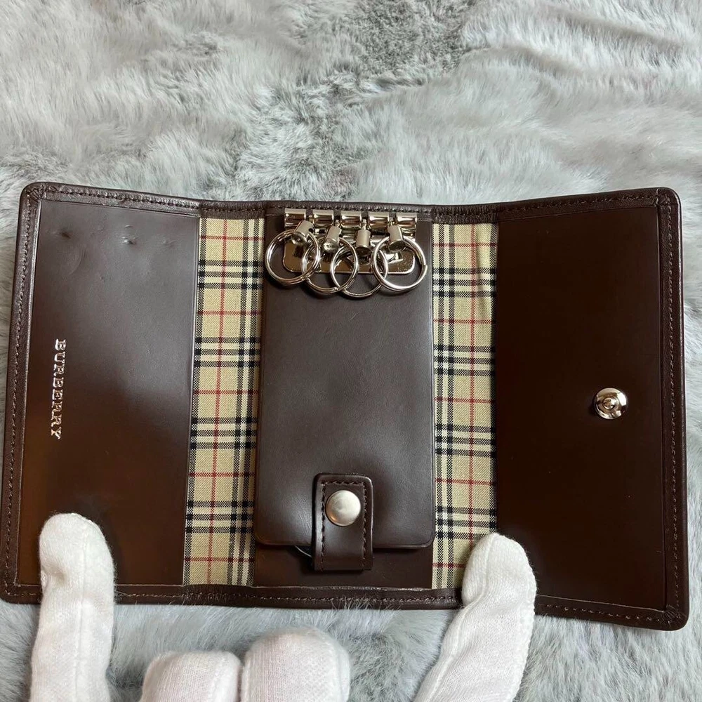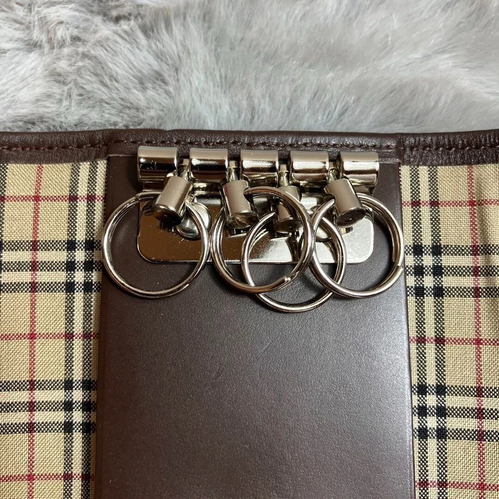 Burberry Key Case Key Ring Nova Check Leather Green Brown Accessory Used