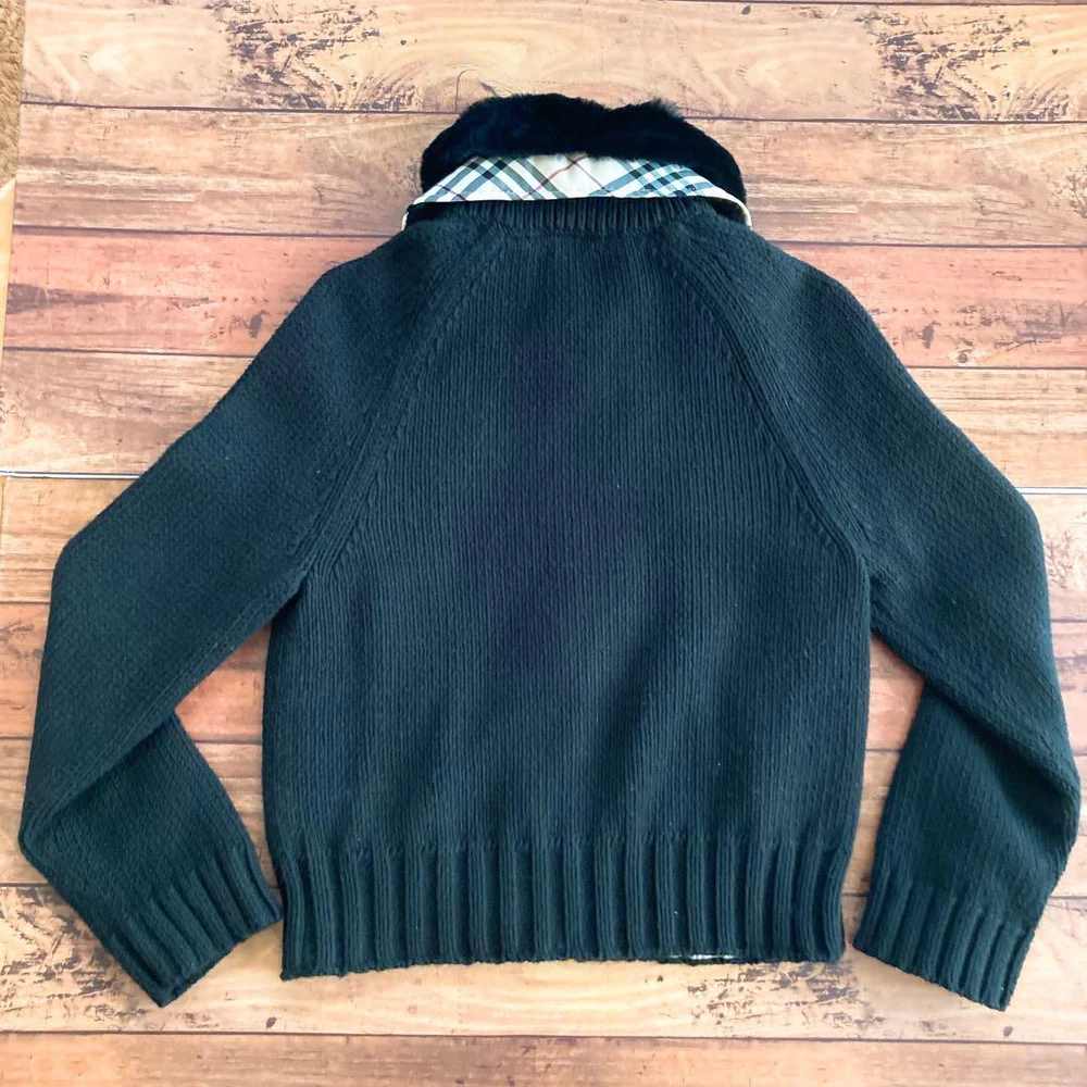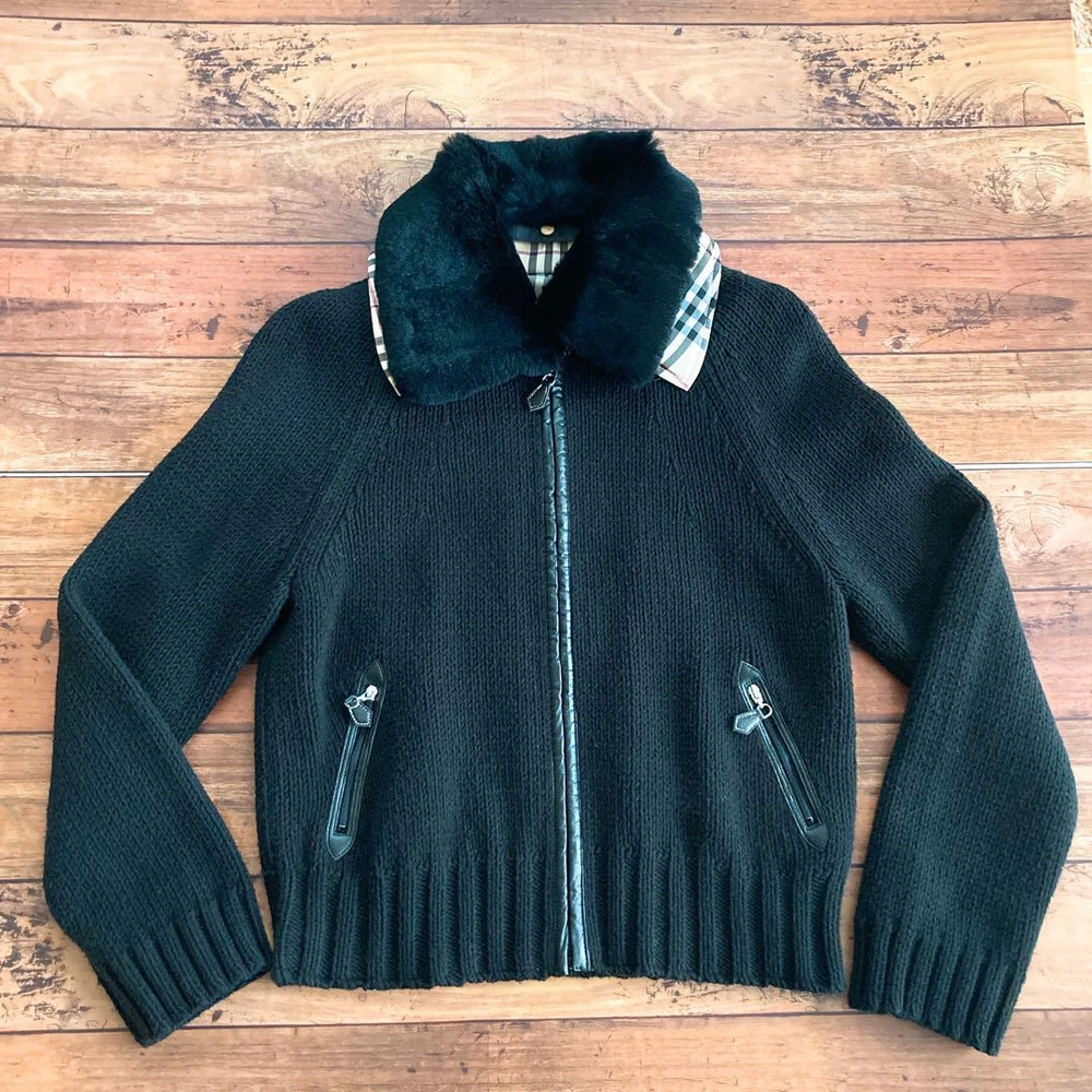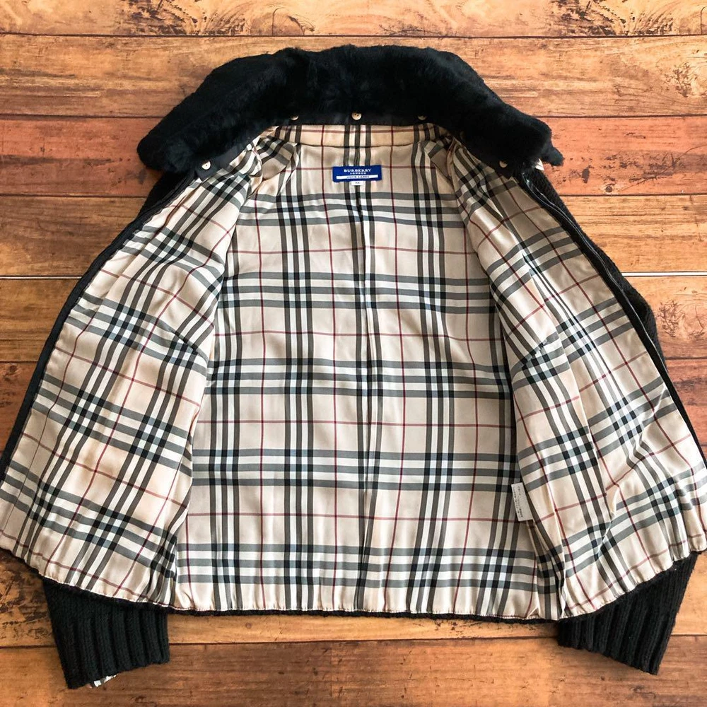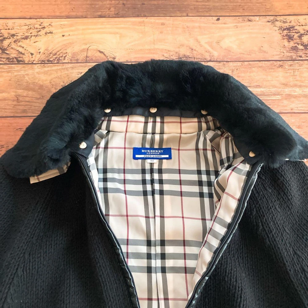 Burberry Knit Outer Black Nova Check Lining Fur Collar Size M Key Features **Burberry Knit Outerwear with Fur Collar** - **Brand:** Burberry - **Product Type:** Knit Outerwear - **Model:** M Size - **Color:** Black - **Material:** - Main: 60% Cotton, 40% Acrylic - Collar: 100% Polyester - Lining: Polyester - Front Placket: Faux Leather - **Size Details:** - Length: 49 cm - Width: 40 cm - Sleeve Length: 57 cm - **Features:** - Removable rabbit fur collar - Nova check lining - **Condition:** Gently used; please note that it has been stored by a non-professional. *Please refrain from lowball offers and holding requests.* Specifications Brand Burberry Blue Label Country Japan Product Description Item Title Burberry Knit Outer Fur Collar Black Nova Check Lining M Payment Supports managed payments Please pay within 5 days after auction is finished. About Us We are located in Japan. It's our pleasure to make you happy by proposing our recommend item. If you have any questions or request about items, please feel free to ask us. International Buyers - Please Note: -Import duties, taxes, and charges are not included in the item price or shipping charges. These charges are the buyer's responsibility. -Please check with your country's customs office to determine what these additional costs will be prior to bidding/buying. -These charges are normally collected by the delivering freight (shipping) company or when you pick the item up - do not confuse them for additional shipping charges. -We do not mark merchandise values below value or mark items as - gifts - The US and International government regulations prohibit such behavior. Thank you for your understanding.