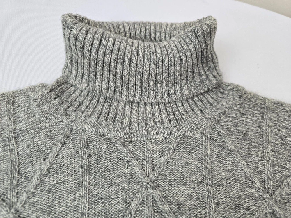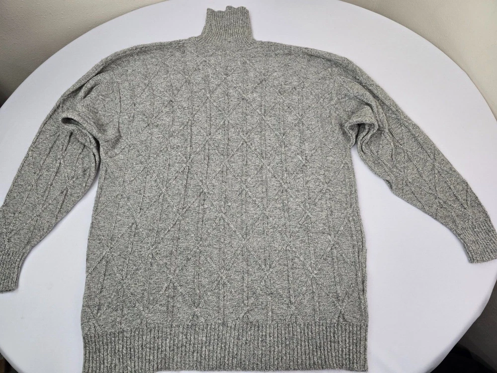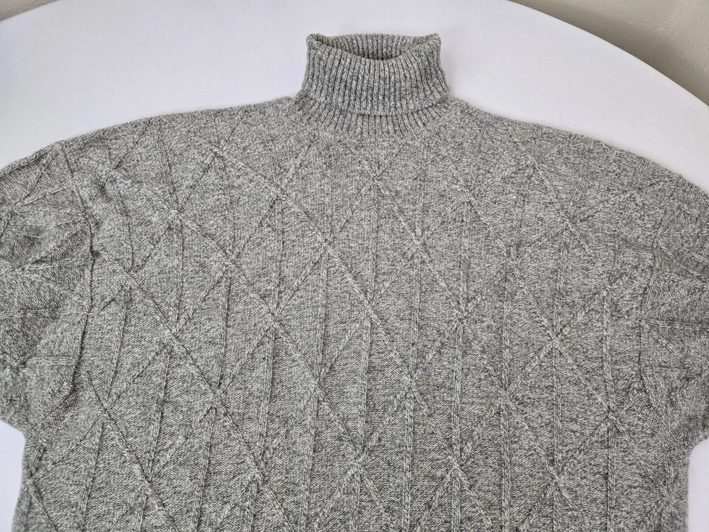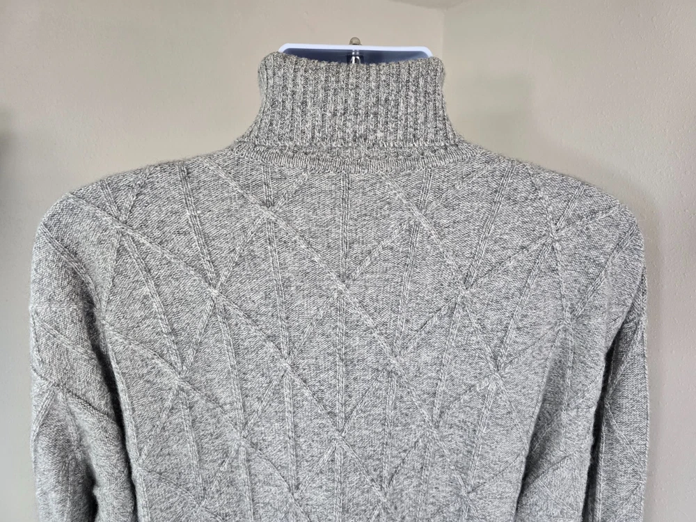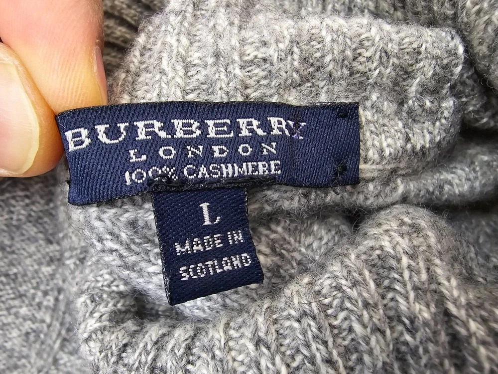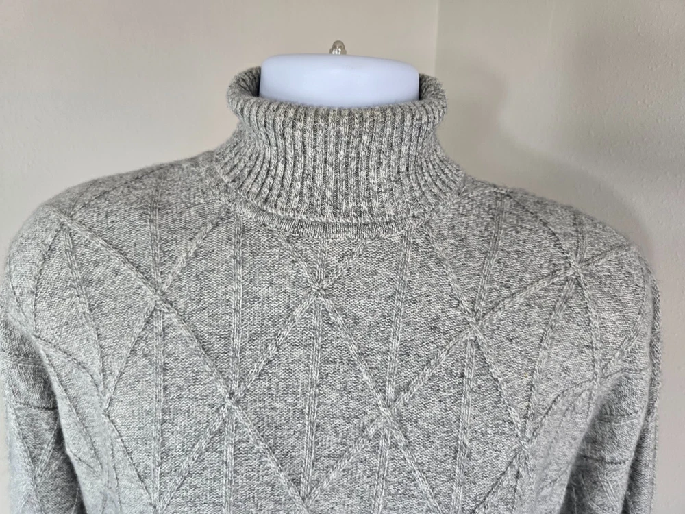 Available for sale is a beautiful pre-owned Men's BURBERRY 100% Cashmere Cable Knit Turtleneck Sweater in Size L which can also fit a slim XL (check below measurements). This luxury sweater is in a beautiful light gray melange color and features an elegant cable knit design throughout making it a versatile piece. Made in Scotland by Burberry, this sweater is made of very high quality cashmere and is very warm. Other than a tiny bit of yellowing on part of the turtleneck which isn't visible (check photos), it is in decent condition with no holes, tears, pulls, and little to no pilling. The sweater is a Mid-weight 2-3 ply knit. Please check the measurements below. Measurements: Shoulder: 23" Chest: 22" Length: 29" Sleeve: 22" from armpit to cuff Payment: We Accept PayPal, and eBay Payments which accepts most debit & credit cards and linked bank accounts. Shipping: We ship within 24-48 hours and we generally use USPS Ground Advantage or USPS Priority Mail for most of our shipments. We ship to al 50 states and we also ship Internationally as well, using eBay's International shipping service. We also offer expedited International shipping for an additional cost as well.