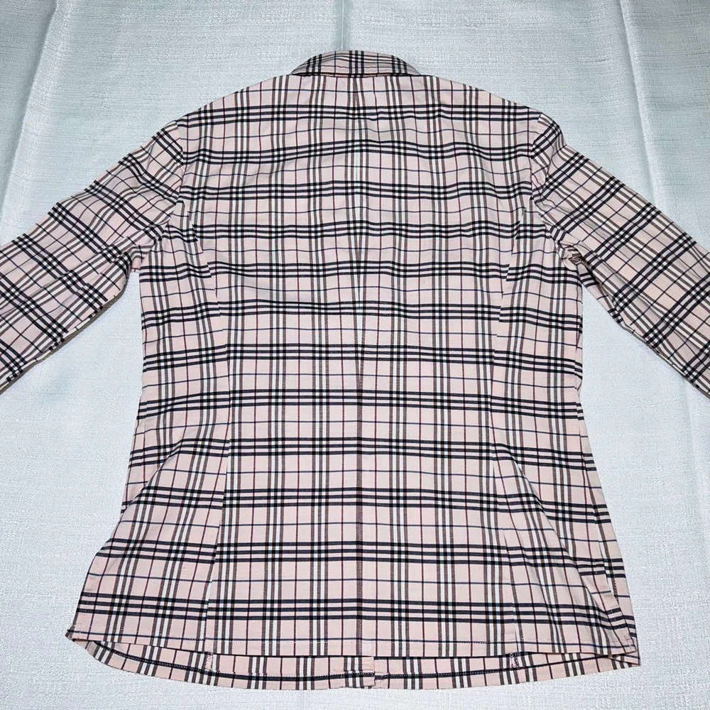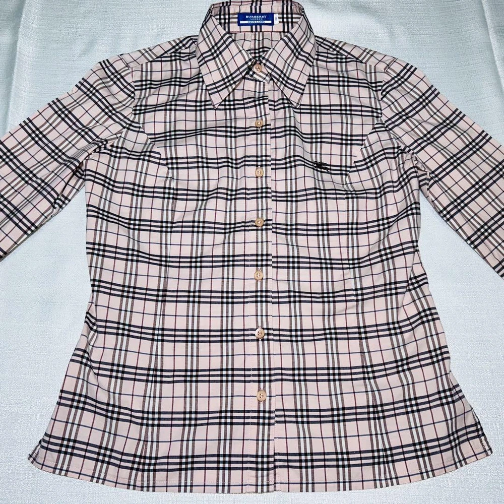 Burberry London Beige 3/4 Sleeve Shirt Size 38 New Key Features **BURBERRY LONDON Blue Label Beige Shirt** - **Brand:** BURBERRY LONDON - **Product Type:** Three-Quarter Sleeve Shirt - **Color:** Beige - **Size:** 38 (Measurements: Bust 40cm, Shoulder 36cm, Length 59cm, Sleeve 47cm, Neck 38cm; all measurements are approximate and taken flat) - **Material:** 95% Cotton, 5% Polyurethane - **Design:** Features the iconic Burberry check pattern with a slim-fit design, perfect for wearing alone or as an inner layer under cardigans or sweaters from autumn to spring. - **Condition:** Gently used with good overall condition. Please note this is a pre-owned item; those seeking perfection or who are sensitive to minor imperfections should refrain from purchasing. Please refer to the photos for condition assessment. Minor folding wrinkles may occur due to compact packaging. Specifications Brand Burberry Blue Label Country Japan Product Description Item Title Burberry London Three-Quarter Length Shirt Payment Supports managed payments Please pay within 5 days after auction is finished. About Us We are located in Japan. It's our pleasure to make you happy by proposing our recommend item. If you have any questions or request about items, please feel free to ask us. International Buyers - Please Note: -Import duties, taxes, and charges are not included in the item price or shipping charges. These charges are the buyer's responsibility. -Please check with your country's customs office to determine what these additional costs will be prior to bidding/buying. -These charges are normally collected by the delivering freight (shipping) company or when you pick the item up - do not confuse them for additional shipping charges. -We do not mark merchandise values below value or mark items as - gifts - The US and International government regulations prohibit such behavior. Thank you for your understanding.