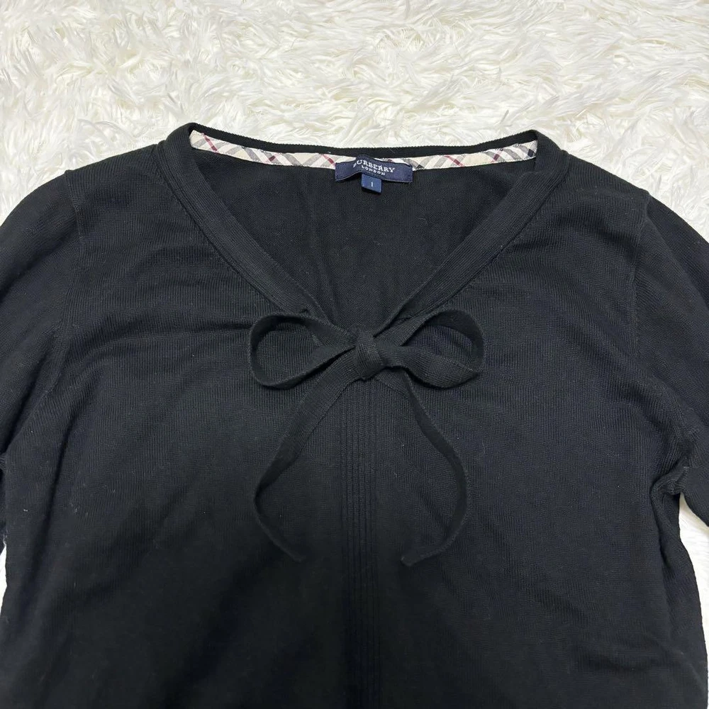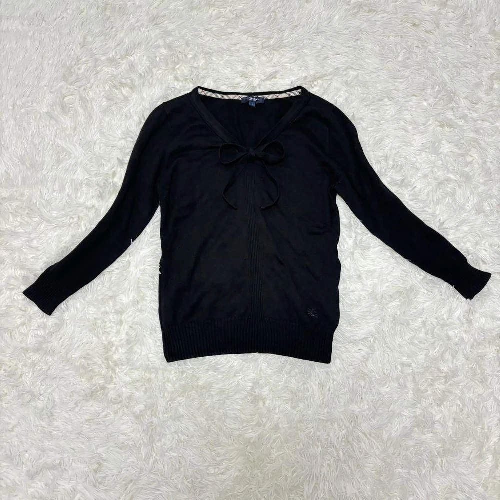 Burberry London Black V-Neck Knit Sweater with Adjustable Ribbon, Stylish, Used Key Features **Burberry London Black Sweater** - **Brand:** Burberry - **Product Type:** Sweater - **Model:** Burberry London **Features:** - **Color:** Black - **Design:** V-neck with ribbon detail; the ribbon can be adjusted to your preferred knot - **Sleeve Length:** Long sleeves - **Material:** Soft knit fabric for a comfortable feel - **Size:** - Shoulder Width: 35 cm - Bust Width: 40 cm - Length: 52 cm - Sleeve Length: 47 cm - **Logo:** Embroidered logo **Condition:** - Very good condition with minimal signs of wear This stylish sweater combines casual elegance with feminine charm, making it perfect for various occasions, from office wear to casual outings. Specifications Brand Burberry London Country Japan Product Description Item Title Burberry London Knit Sweater With Ribbon Payment Supports managed payments Please pay within 5 days after auction is finished. About Us We are located in Japan. It's our pleasure to make you happy by proposing our recommend item. If you have any questions or request about items, please feel free to ask us. International Buyers - Please Note: -Import duties, taxes, and charges are not included in the item price or shipping charges. These charges are the buyer's responsibility. -Please check with your country's customs office to determine what these additional costs will be prior to bidding/buying. -These charges are normally collected by the delivering freight (shipping) company or when you pick the item up - do not confuse them for additional shipping charges. -We do not mark merchandise values below value or mark items as - gifts - The US and International government regulations prohibit such behavior. Thank you for your understanding.