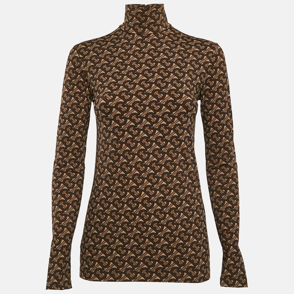 Find great style and comfort while wearing this designer top. Tailored using the best fabrics, the creation has been given immense detail. Style it with a pair of jeans and flats.Certified by The Luxury Closet - This item has gone through a detailed authentication process overseen by our experts. We offer a lifetime guarantee of authenticity on all our items. Import duties, taxes and charges are not included in the item price. These charges are the buyers responsibility. Please check with your country’s customs office to determine what these additional cost will be prior to buying. Our eBay Store About Us Contact Us Add to Favorite Sellers Burberry London Brown Bridle IP Pattern Jersey Top S $268.4 Find great style and comfort while wearing this designer top. Tailored using the best fabrics, the creation has been given immense detail. Style it with a pair of jeans and flats. Product Details Brand Color Brown Dimensions Material Jersey, Jersey Size S Outsole Width Outsole Length Heel Height Includes Brand Tag, The Luxury Closet Packaging Certified by The Luxury Closet This item has gone through a detailed authentication process overseen by our experts. We offer a lifetime guarantee of authenticity on all our items. How We Check The in-house team of experts at The Luxury Closet is highly trained to verify the authenticity and the condition of the luxury products. They ensure that only 100% authentic items are put on sale.The evaluation process is unique with its own mix of assessment criteria and differs according to the category. Each item is evaluated based on the following combination of hallmarks, hardware, stitching, symmetry, material, craftsmanship, stamping, codes, hologram stickers, and packaging. Our authenticators also check if the items have been modified or amended (e.g., aftermarket diamonds, replaced batteries, repaired bags, etc.) International Buyers Import duties, taxes and charges are not included in the item price. These charges are the buyers responsibility. Please check with your country’s customs office to determine what these additional cost will be prior to buying.