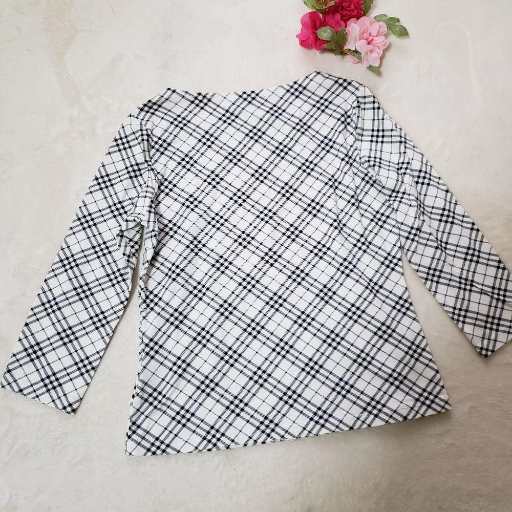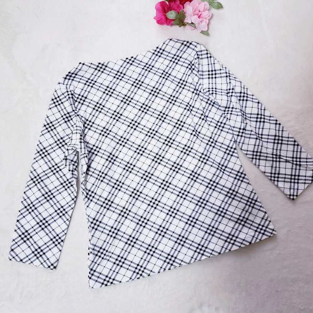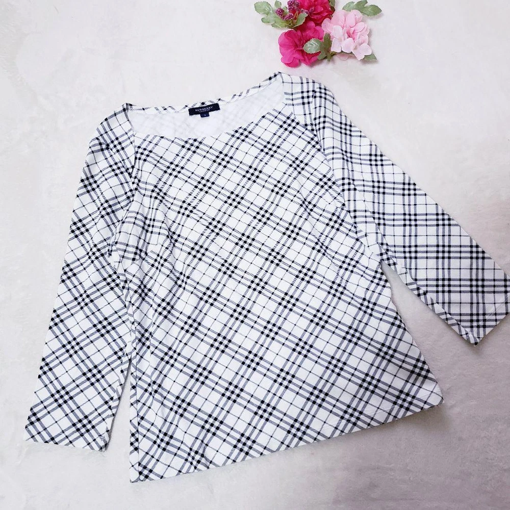 Burberry London Check Micro Nova Square Cut T-Shirt Size M - Excellent Condition Key Features **BURBERRY LONDON Square Cut Long Sleeve T-Shirt** - **Brand:** Burberry London - **Model:** Size 2 - **Type:** Long Sleeve T-Shirt - **Color:** White with Black and Gray Check - **Size Measurements:** - Width: 42 cm - Shoulder Width: 37.5 cm - Sleeve Length: 44 cm - Length: 54 cm - **Condition:** - Gently used, in excellent condition with no noticeable scratches or stains. - Well cared for, but please note it is a pre-owned item. - Minor measurement discrepancies may exist due to amateur measuring. Please be aware that returns are not accepted for color or size discrepancies. If you have any questions, feel free to ask before purchasing. Specifications Brand Burberry London Country Japan Product Description Item Title Burberry London Check Micro Nova Cut And Sew Payment Supports managed payments Please pay within 5 days after auction is finished. About Us We are located in Japan. It's our pleasure to make you happy by proposing our recommend item. If you have any questions or request about items, please feel free to ask us. International Buyers - Please Note: -Import duties, taxes, and charges are not included in the item price or shipping charges. These charges are the buyer's responsibility. -Please check with your country's customs office to determine what these additional costs will be prior to bidding/buying. -These charges are normally collected by the delivering freight (shipping) company or when you pick the item up - do not confuse them for additional shipping charges. -We do not mark merchandise values below value or mark items as - gifts - The US and International government regulations prohibit such behavior. Thank you for your understanding.