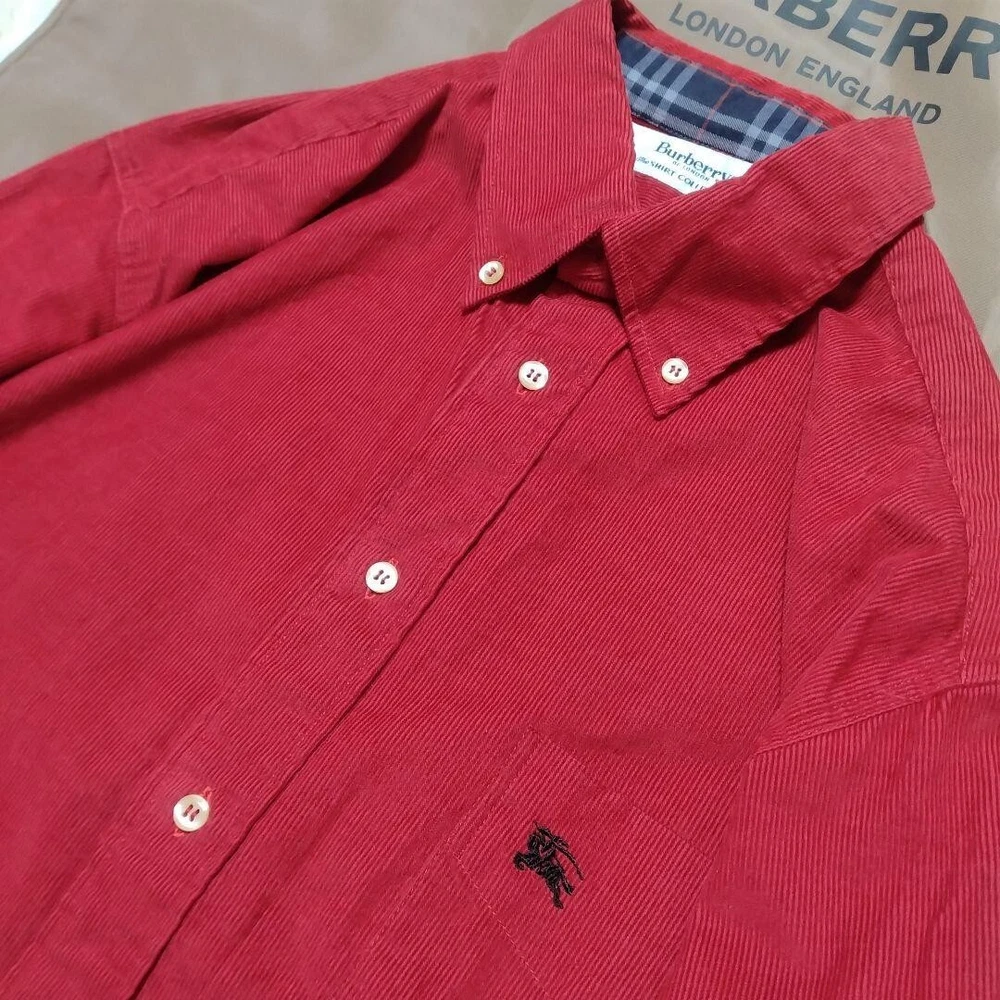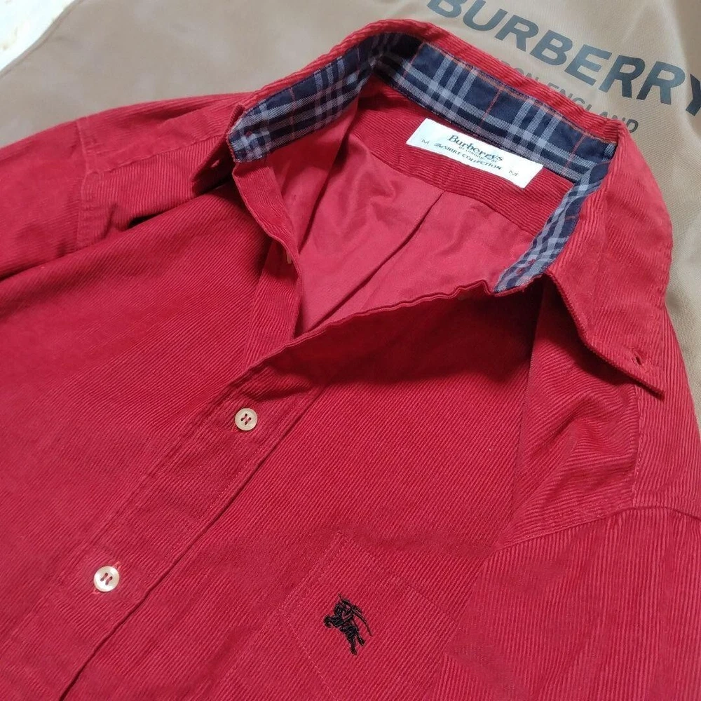 Burberry London Corduroy Shirt Long sleeve Red Nova check Men Size M Used